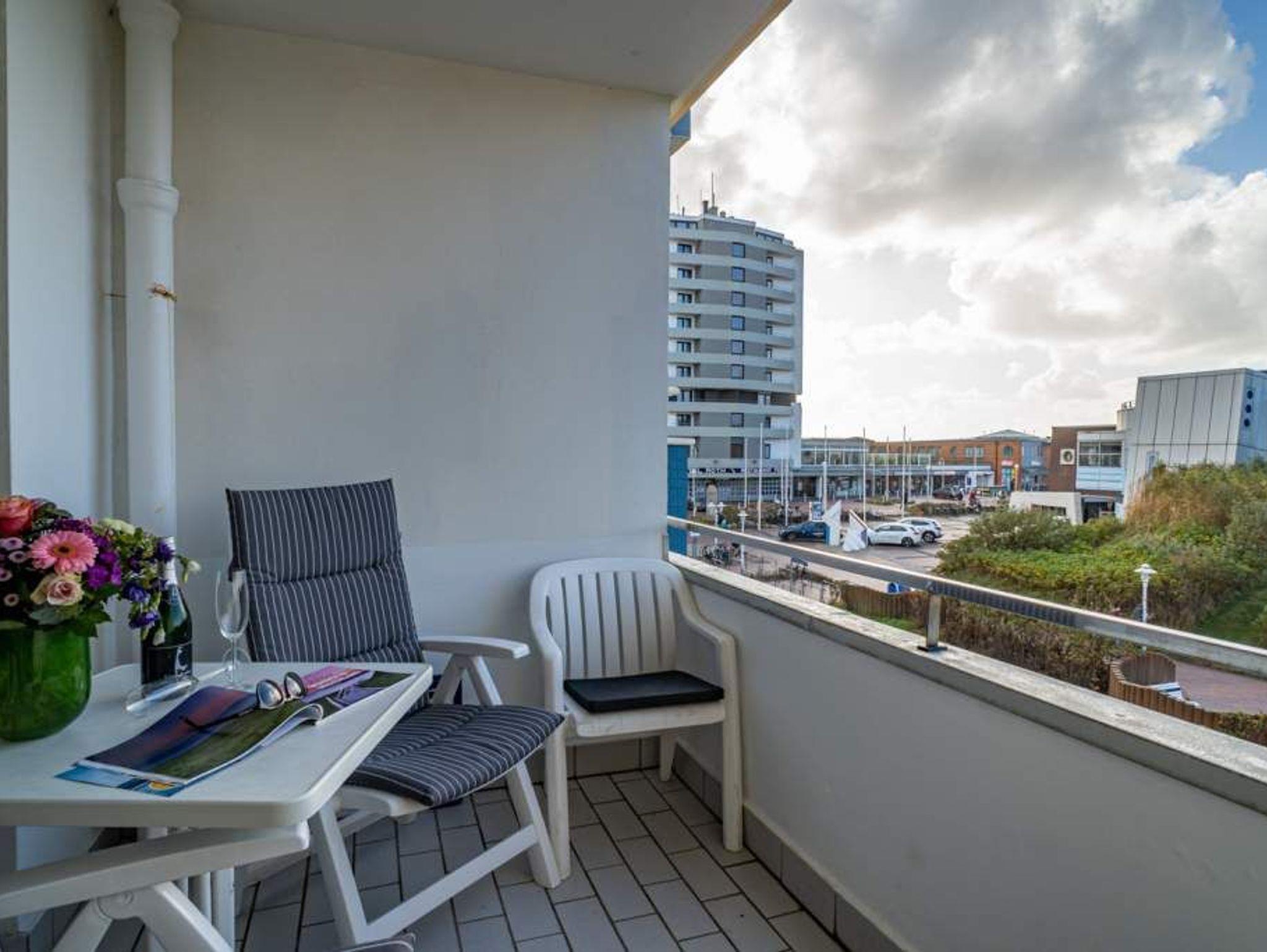 Komfortable 2-Zimmer-Nichtraucher-Ferienwohnung (ca. 54 qm) in der 2. Etage zur Seeseite mit Westloggia (Nachmittagssonne, mit Balkonmöbeln und Auflagen) für max. 2 Personen.