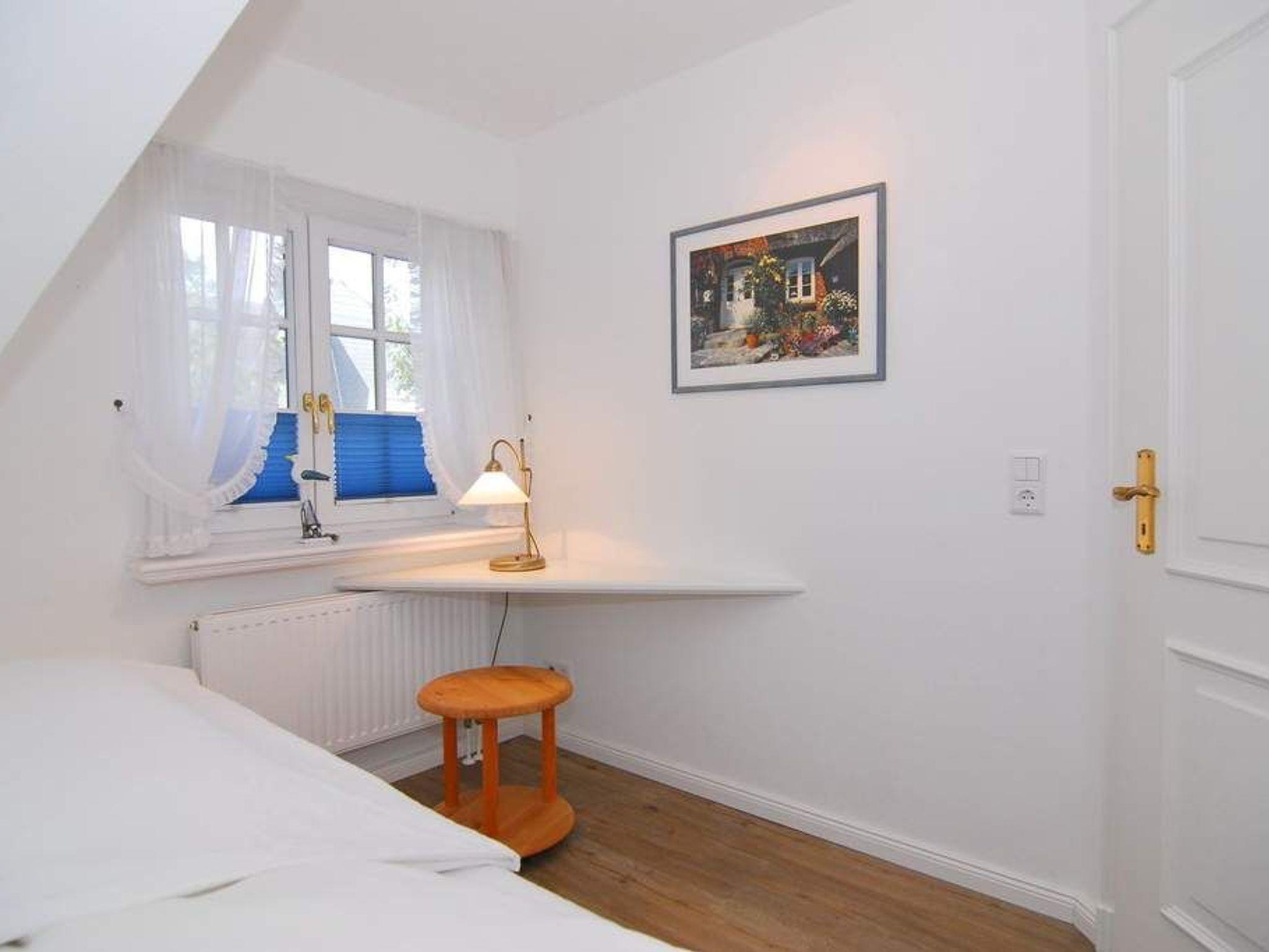 Exclusives Ferienhaus (Mittelhaus), ca.105qm, ruhige Lage. Mindestbuchung 7 Tage! Nichtraucher-Whg.! EG: Wohnzimmer mit Couch, 2 Sessel, Eßecke, Kabel-TV,Radio, W-Lan (ohne Gewähr), Südterrasse m. Gartenmöbel, Strandkorb (Apr.-Okt.), offene Küche mit Geschirrspüler und Microwelle/Backofen, Dusche/WC, EG ist gefliest. OG: Schlafzimmer mit Doppelbett (160x200) und Südbalkon, kleines Schlafzimmer mit Einzelbett, Duschbad/ WC, Einbauschränke. DG: Schlafraum mit 2 Einzelbetten, TV, Schreibtisch. OG und DG mit Laminat. Kinder-Reisebett ist vorhanden. Bettwäsche und Handtücher sind zur Anreise aufgezogen. Tierhaltung nicht gestattet. Wasch-Trockner vorhanden.