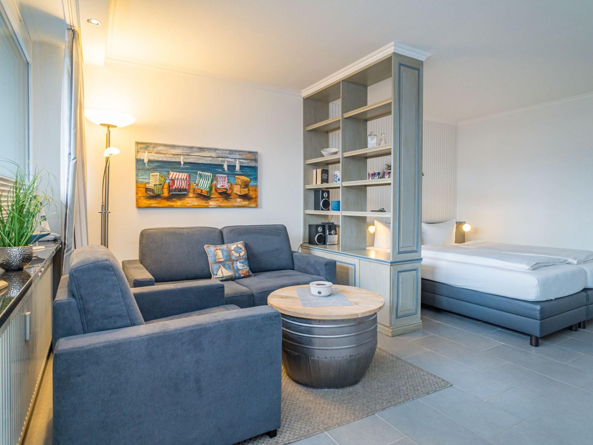 Komfortable 1-Zimmer-Ferienwohnung mit Balkon und Meerblick in Westerland auf Sylt.