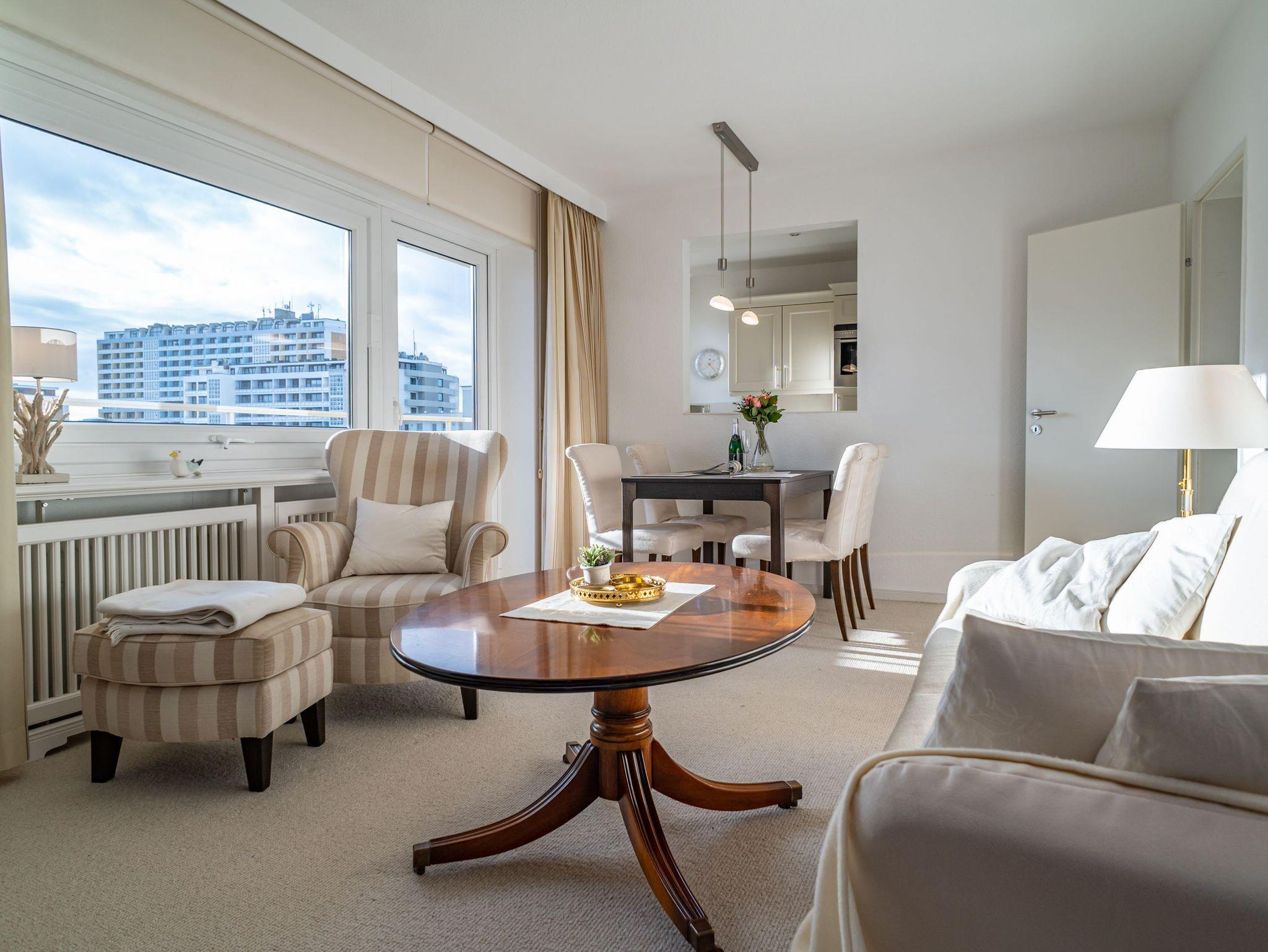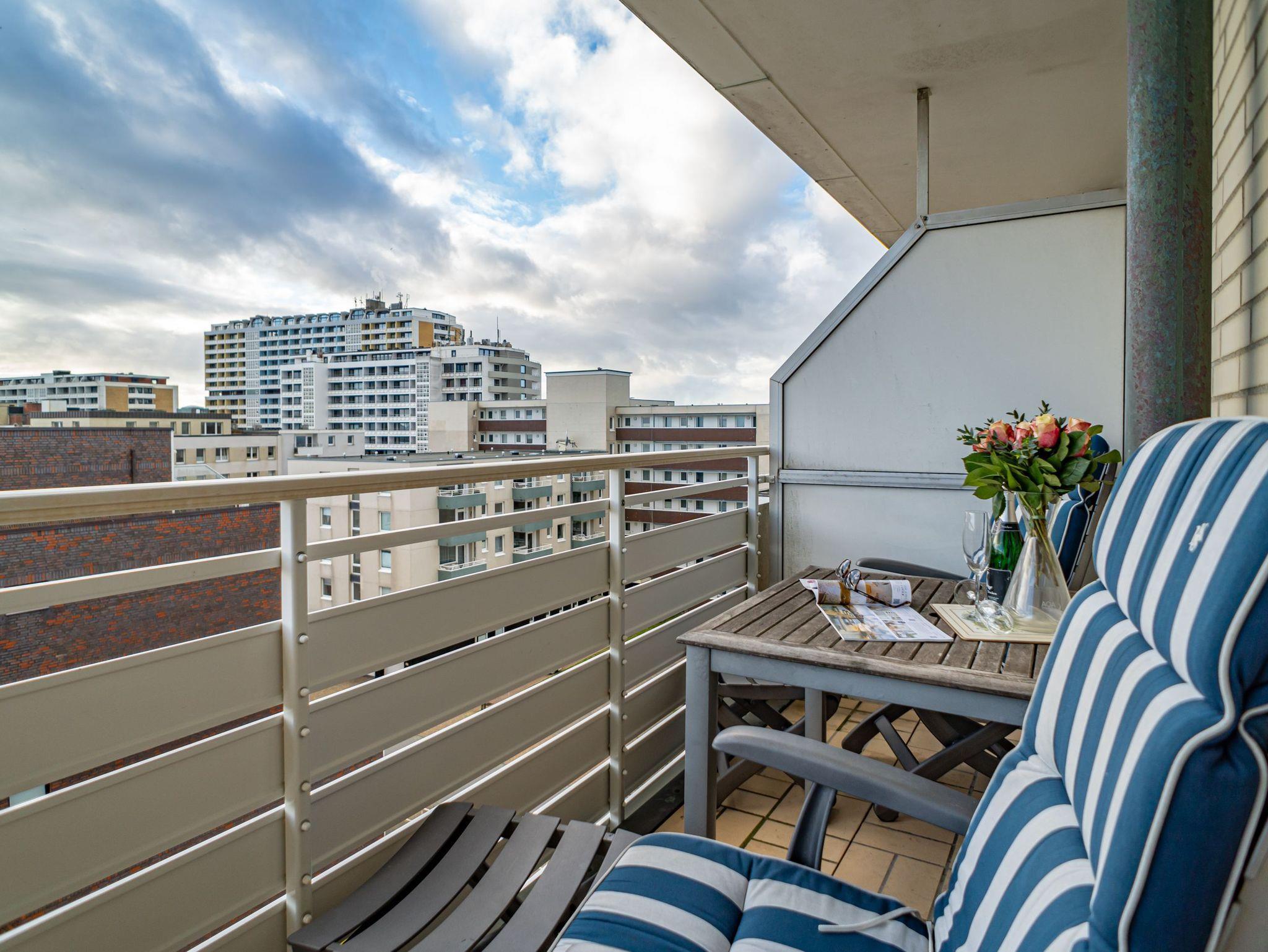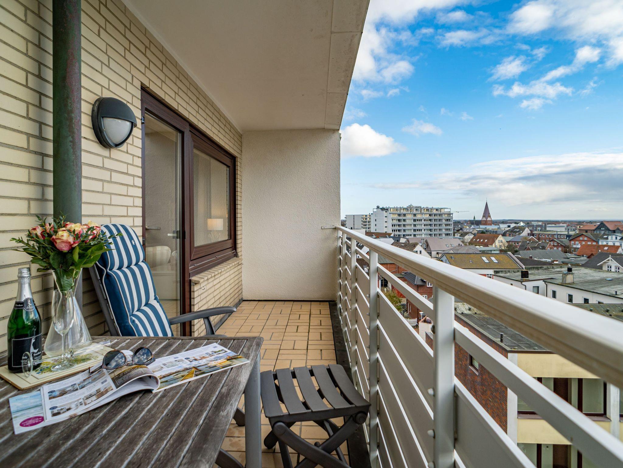 2-Zimmer-Nichtraucher-Ferienwohnung, ca. 48 qm, in der 6. Etage mit Südloggia (mit Balkonmöbeln und Auflagen)