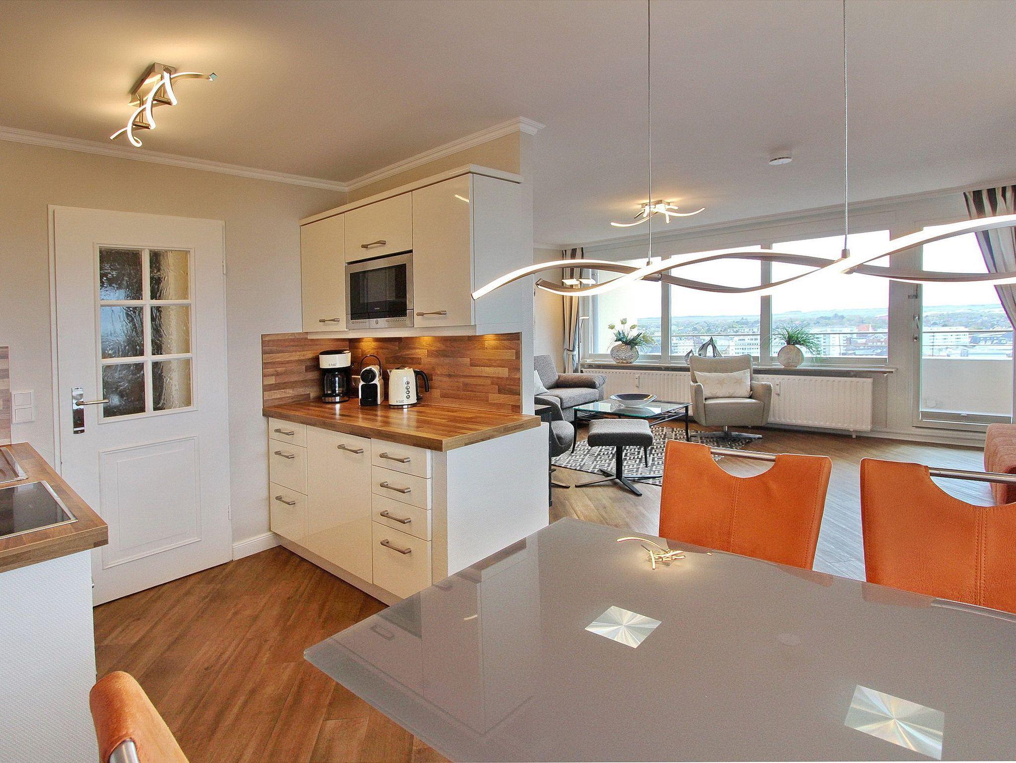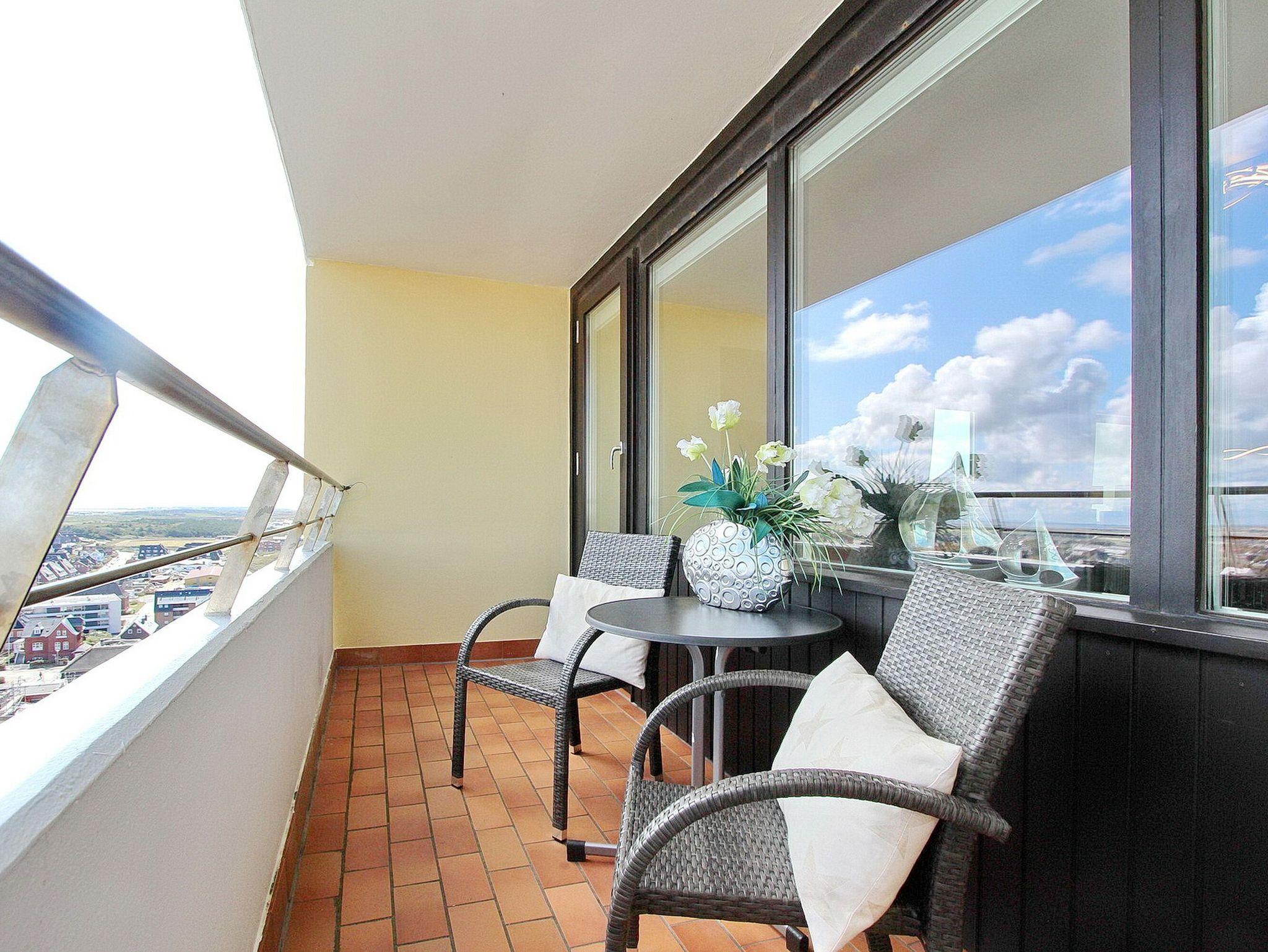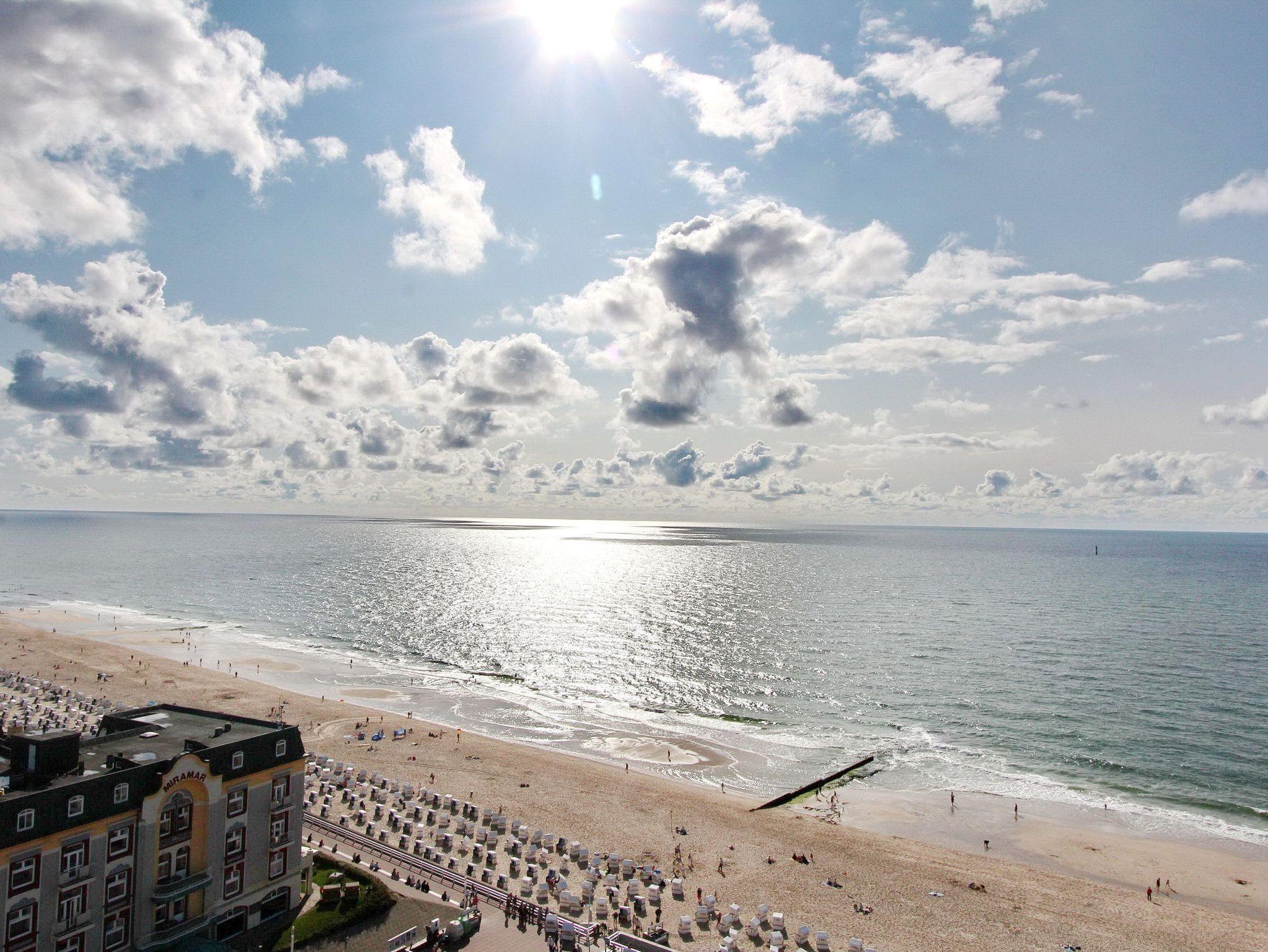 Genießen Sie von der 13. Etage des Haus Metropol in Westerland auf Sylt einen herrlichen Panoramablick und modernen Komfort.