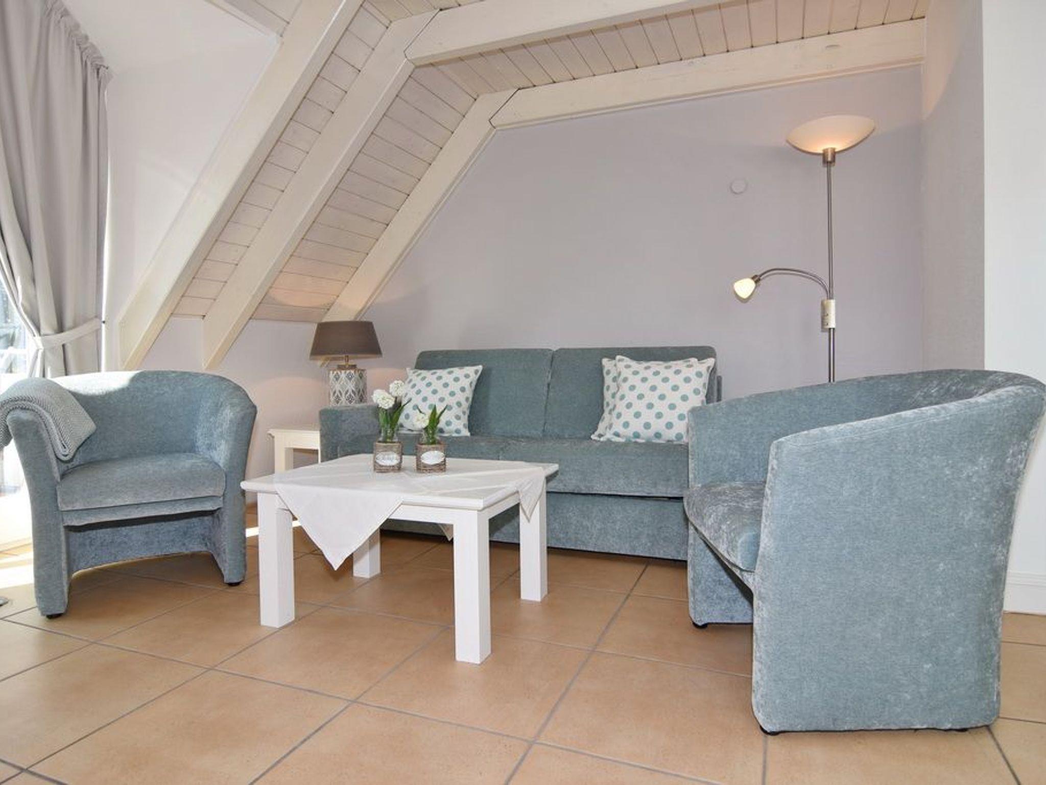 Schicke 2-Zimmer-Ferienwohnung mit Westbalkon im Haus Eva. Ca. 60m². Nichtraucher! OG: Wohnzimmer mit Doppelschlafcouch und Sessel, Essplatz für 4 Personen, Flat-TV, Stereo / CD / DVD. Separate Küche mit Geschirrspüler. Duschbad/WC. DG: Schlafzimmer mit Doppelbett. Tierhaltung gestattet, bitte anmelden (keine Kampfhunde). Pkw-Stellplatz Nr. 10 kostenlos (bitte anmelden). Im Haus: Kostenlose Nutzung des Schwimmbades und der Sauna. Waschküche gegen Gebühr. W-Lan (ohne Gewähr). Bettwäsche und Handtücher sind zur Anreise aufgezogen!