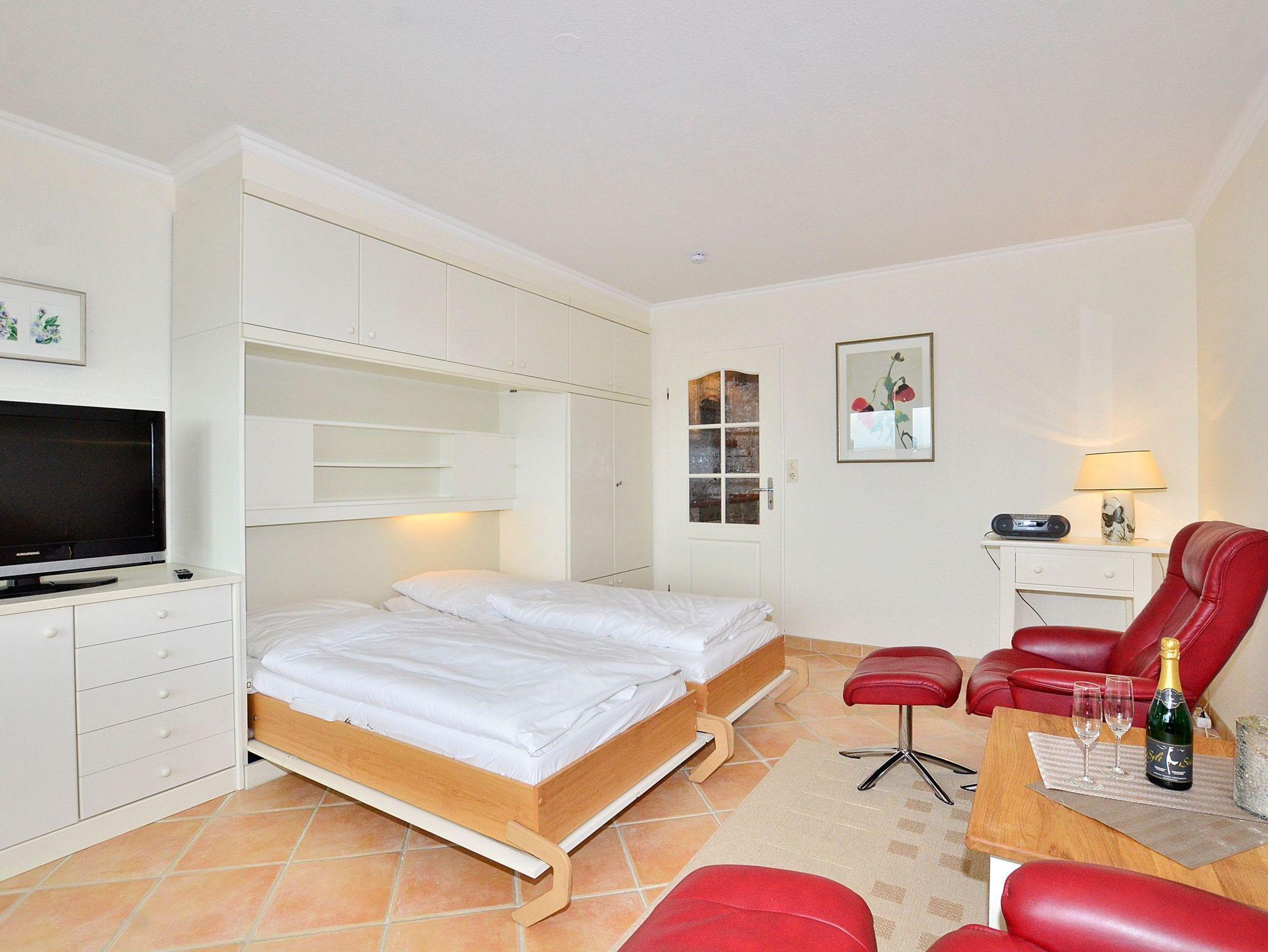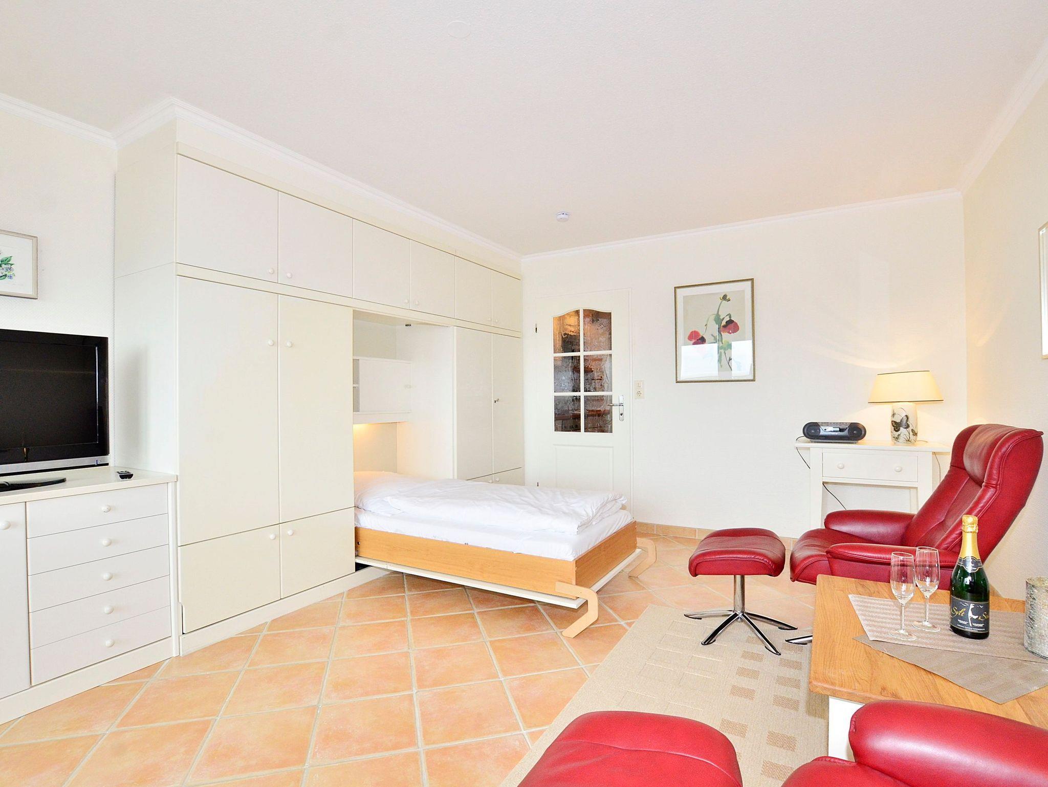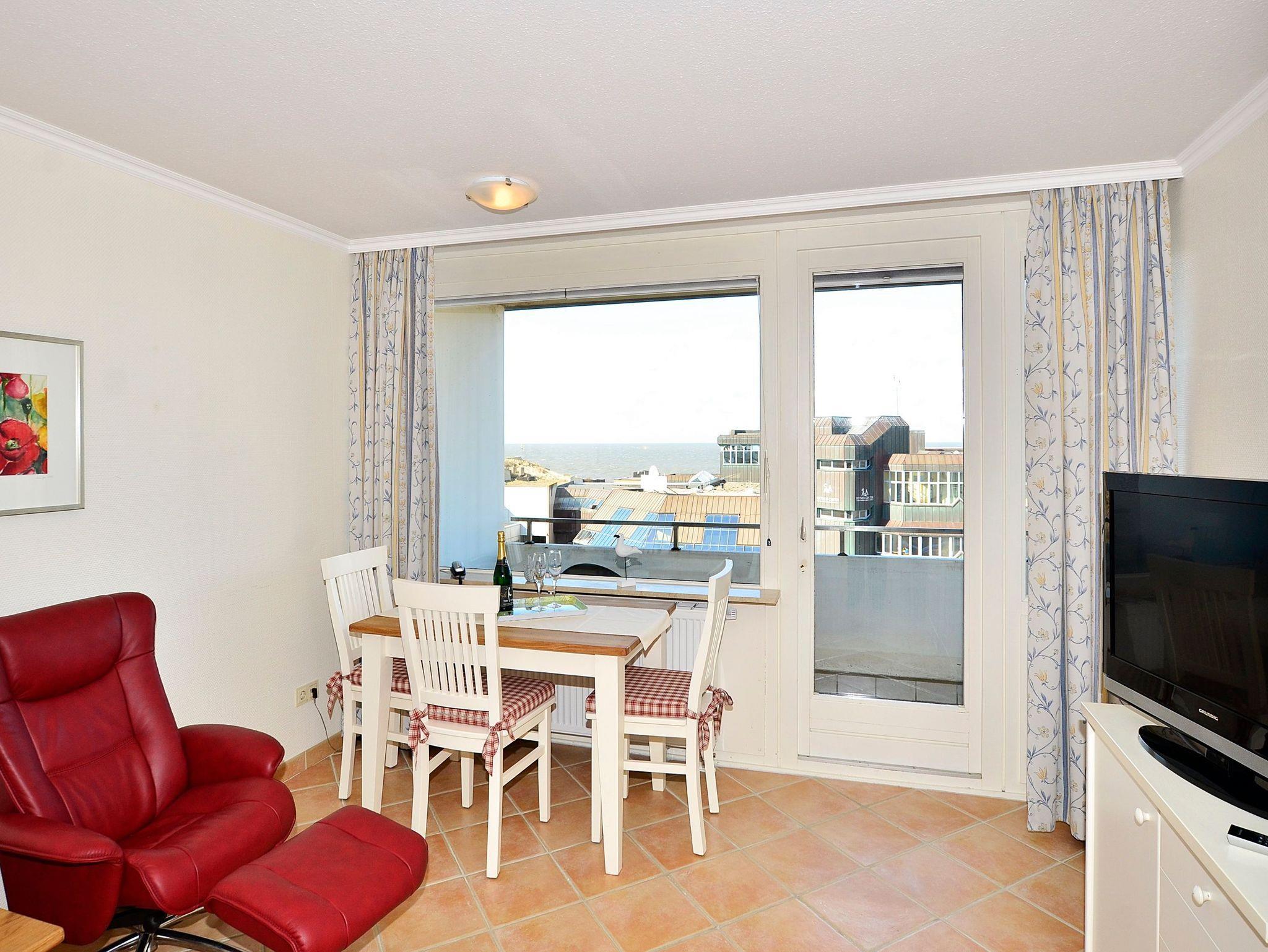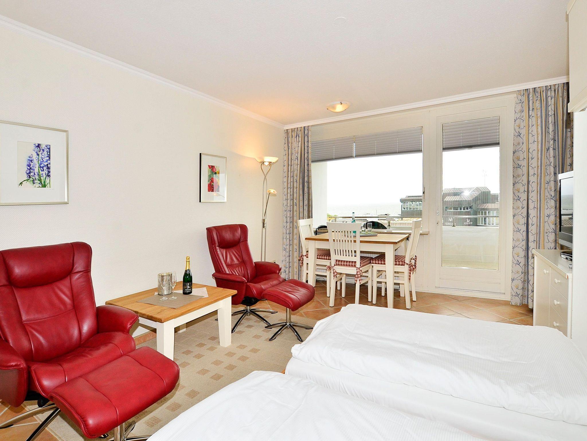 Komfortable 1-Zimmer-Ferienwohnung mit Meerblick und Westloggia in Westerland auf Sylt.