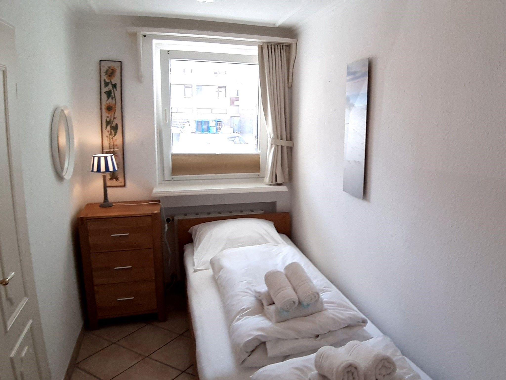 Die zentral gelegene Ferienwohnung für 1-2 Personen (ca. 49 m²) befindet sich im Hochparterre eines 6-geschossigen Appartementhauses im Kurviertel Westerlands.