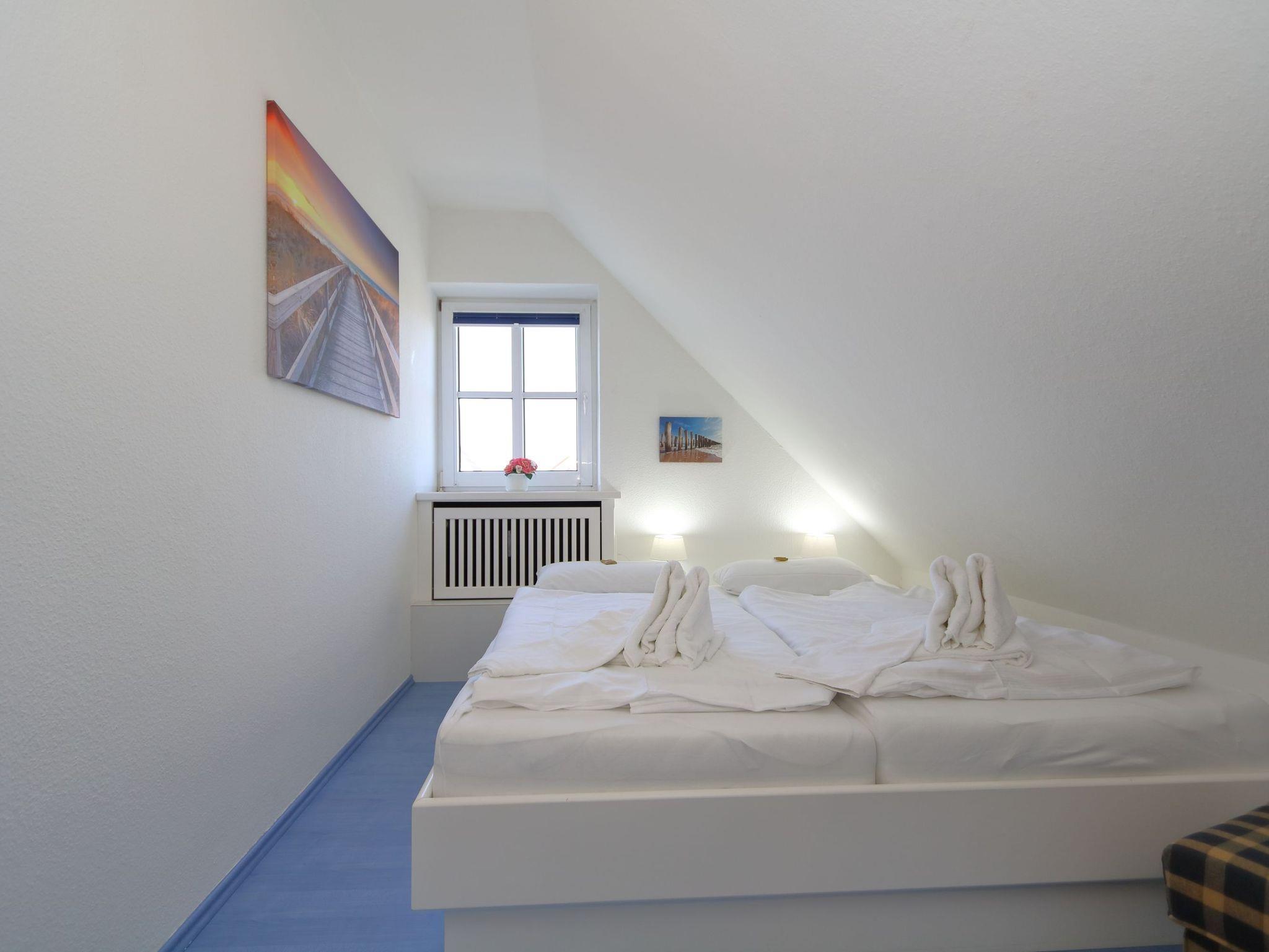 Das Appartementhaus, in dem sich diese Ferienwohnung befindet, steht an der Fußgängerzone, die in die Friedrichstr. übergeht. Das Appartement ist in der 2. Etage und ist ohne Stufen mit Fahrstuhl zu erreichen. Der Strandübergang Friedrichstraße ist fußläufig in 5 Minuten erreichbar und ca 600 Meter entfernt. Es ist ein 2-Zimmer Appartement für bis zu 4 Personen auf ca.46qm Wohnfläche.