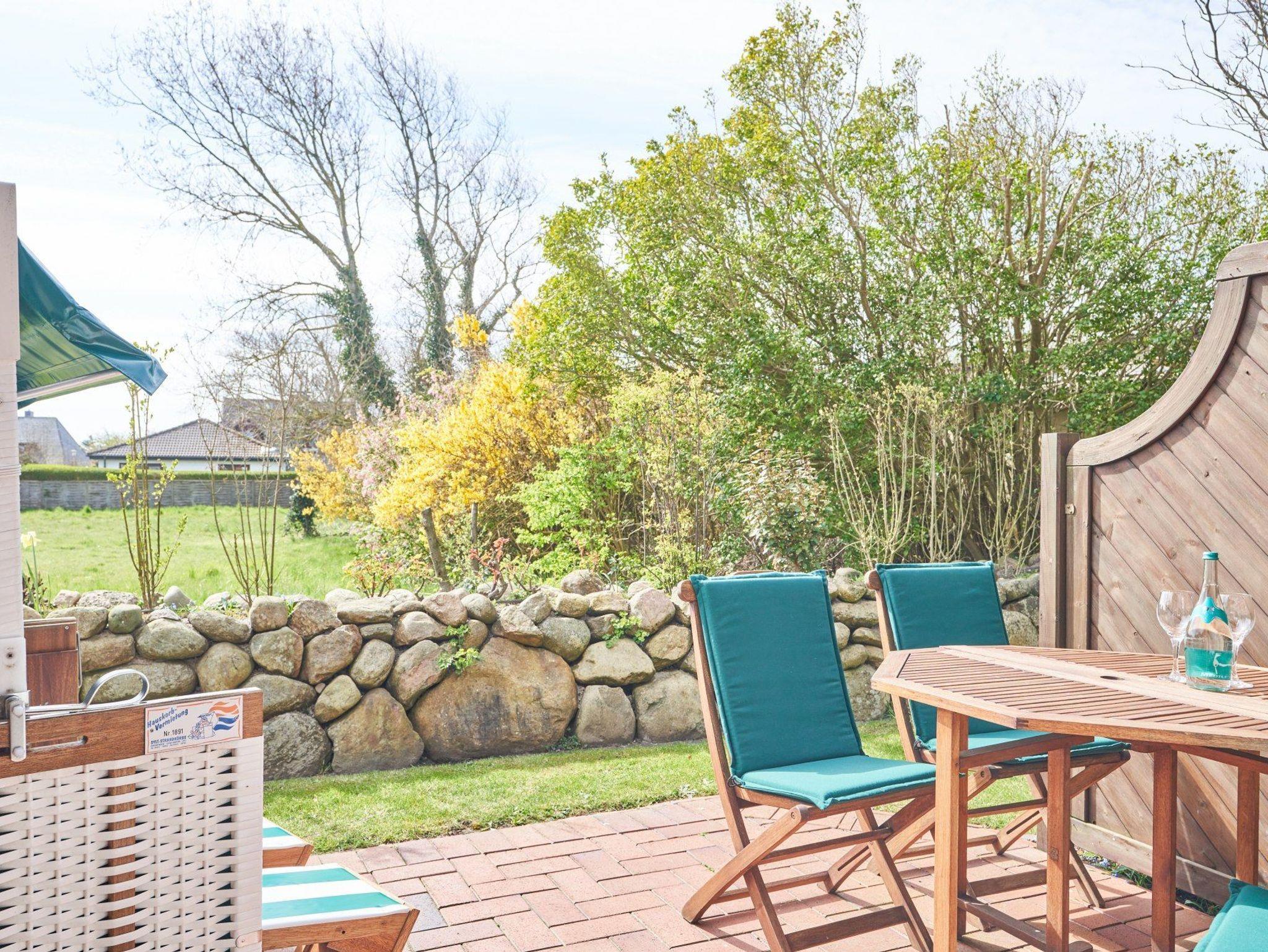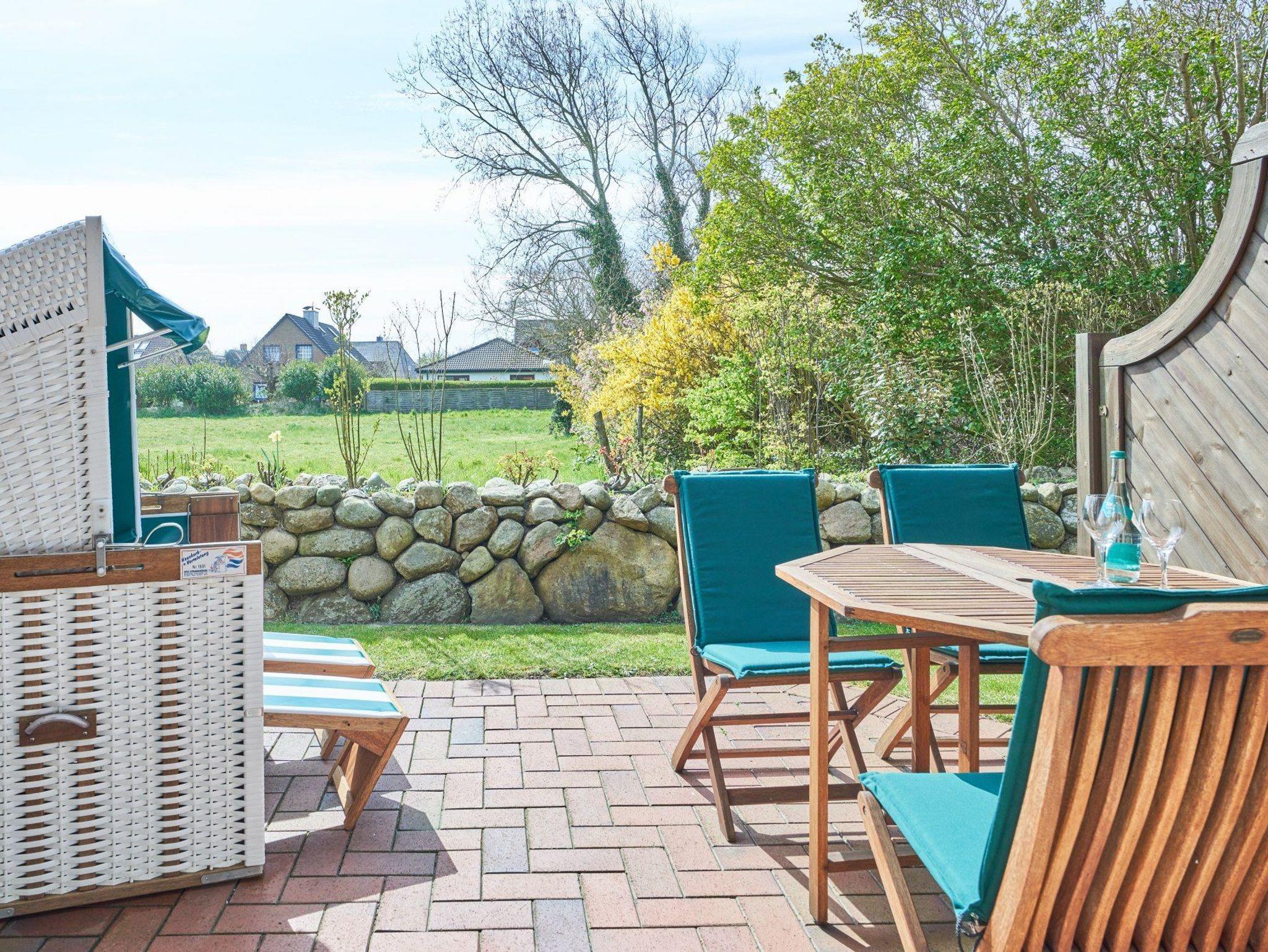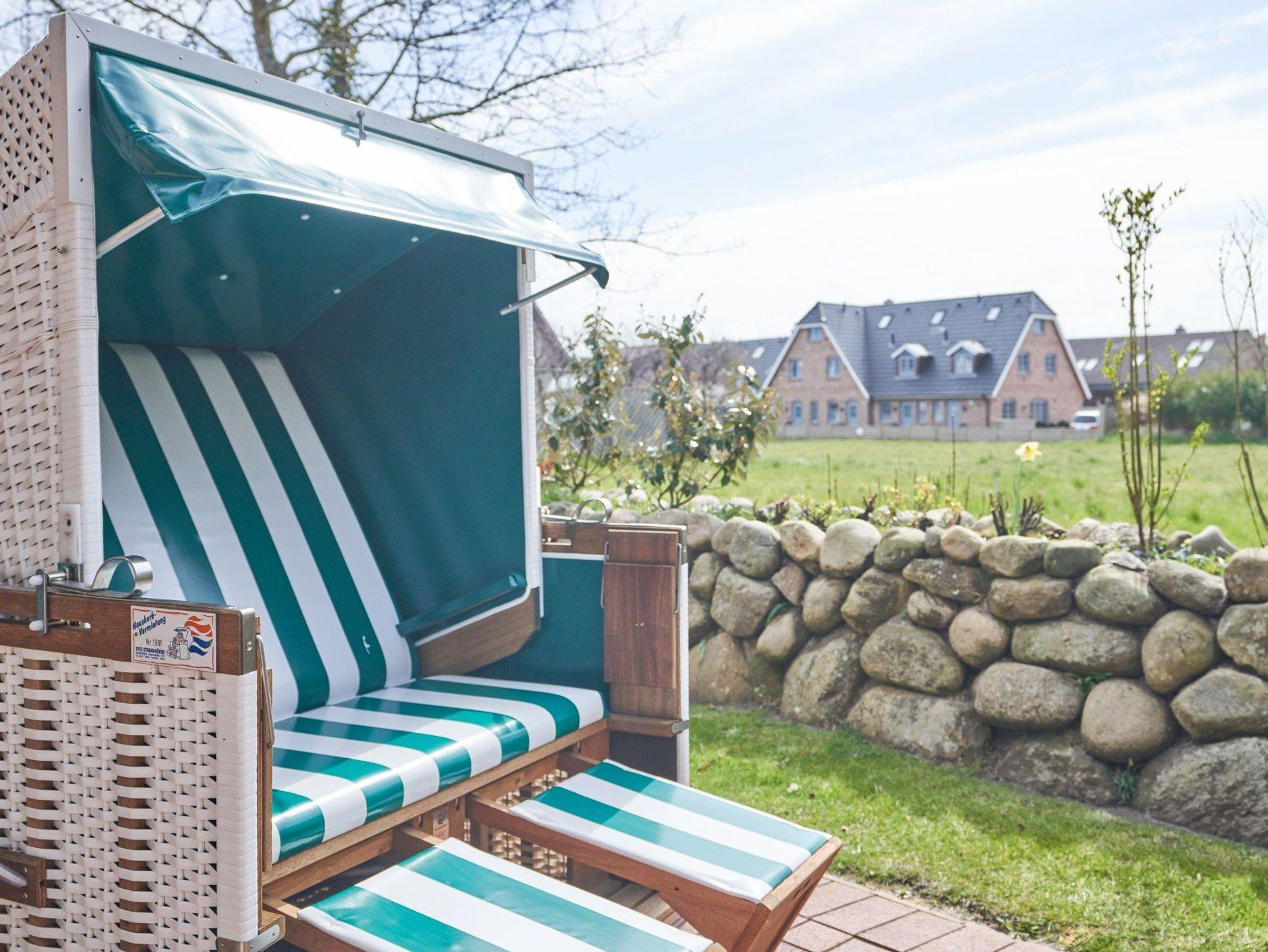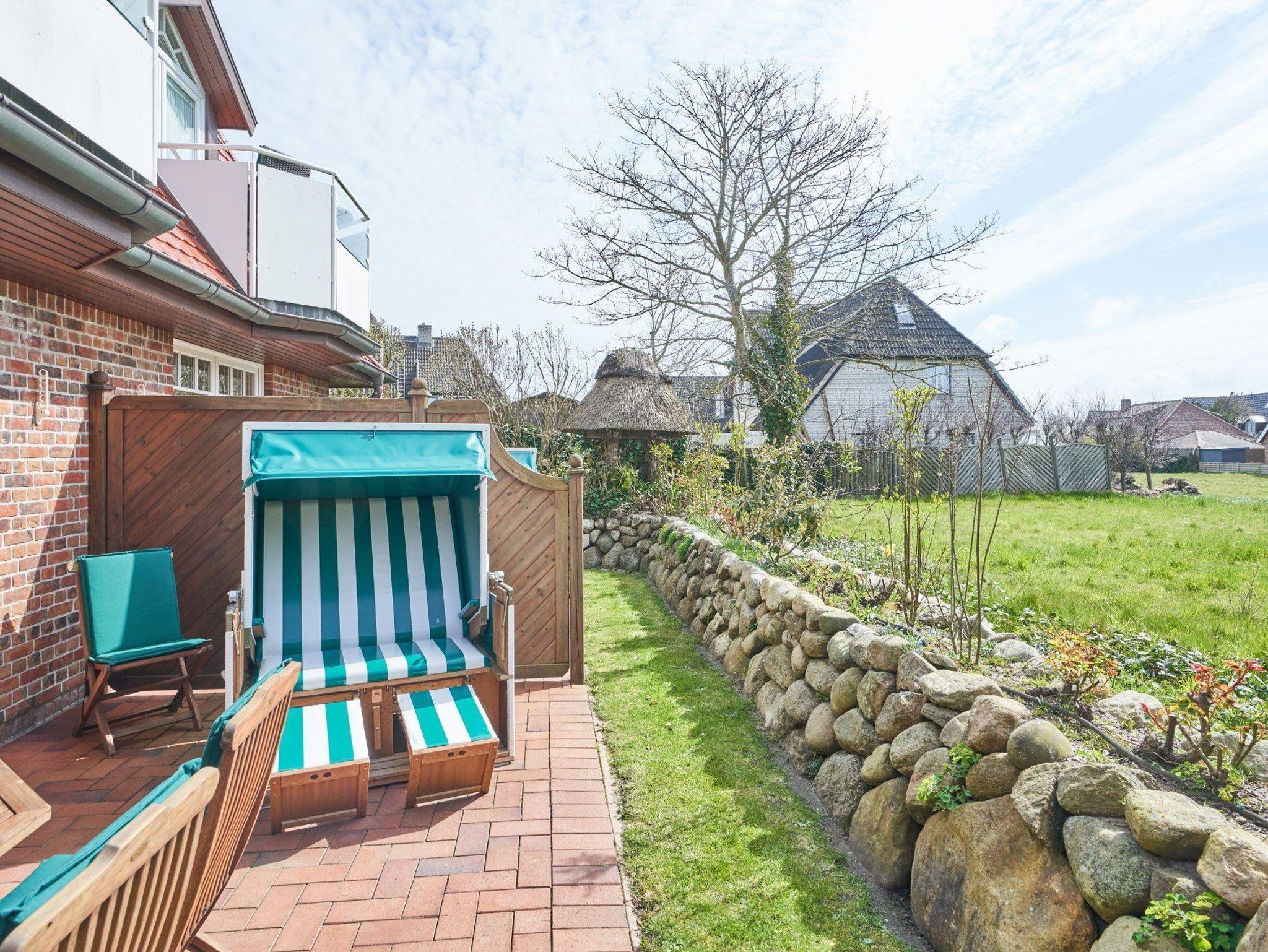 Auch eine Terrasse mit Strandkorb und Gartenmöbeln steht Ihnen zur Verfügung.