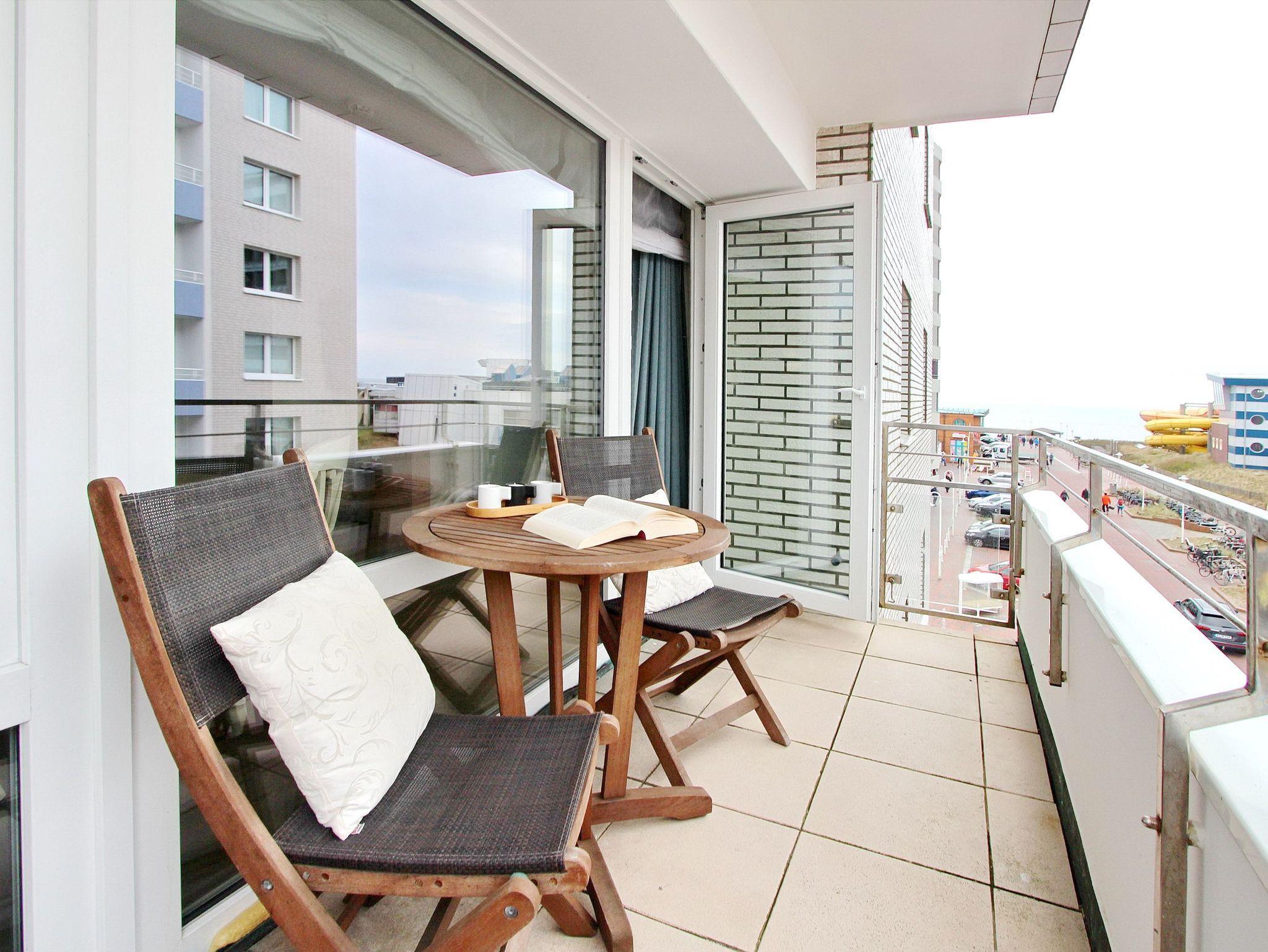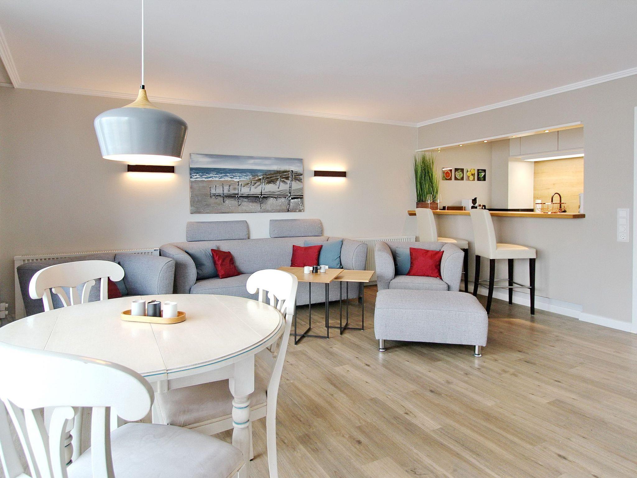 Sehr gemütlich eingerichtete 2-Zimmer-Wohnung im Herzen der Inselmetropole Westerland mit Blick auf die Nordsee - direkt an der Fußgängerzone Strandstraße gelegen und in unmittelbarer Nähe des Strandübergangs Strandstraße zur Promenade. Das Appartement im Haus Westerhörn befindet sich in der 3. Etage mit Balkon zur Nordseite - von hier genießen Sie den Blick die Strandstraße hoch auf die Nordsee. Der Wohnraum ist mit einer großen Couchgarnitur mit 2 Sesseln und einem Fußhocker und einem Essplatz mit 3 Stühlen am Fenster und einem Einzelschrankbett ausgestattet. Die Küchenzeile ist im Wohnraum integriert und durch einem offenen Tresen etwas abgeteilt. - hier finden Sie ein Cerankochfeld, eine Mikrowelle und ein Geschirrspüler. Das, vom Wohnraum abgehende, Schlafzimmer verfügt über ein gemütliches Boxspringbett (1,6 m x 2,00 m). Duschbad/WC mit Halbrunddusche. Zur technischen Ausstattung gehört ein Smart-TV und ein Radio. Den kostenfreien WLAN Zugang des Eigentümers können Sie nutzen (die Zugangsdaten finden Sie im App.). Wohnungsgröße 54 m². Nichtraucherwohnung.