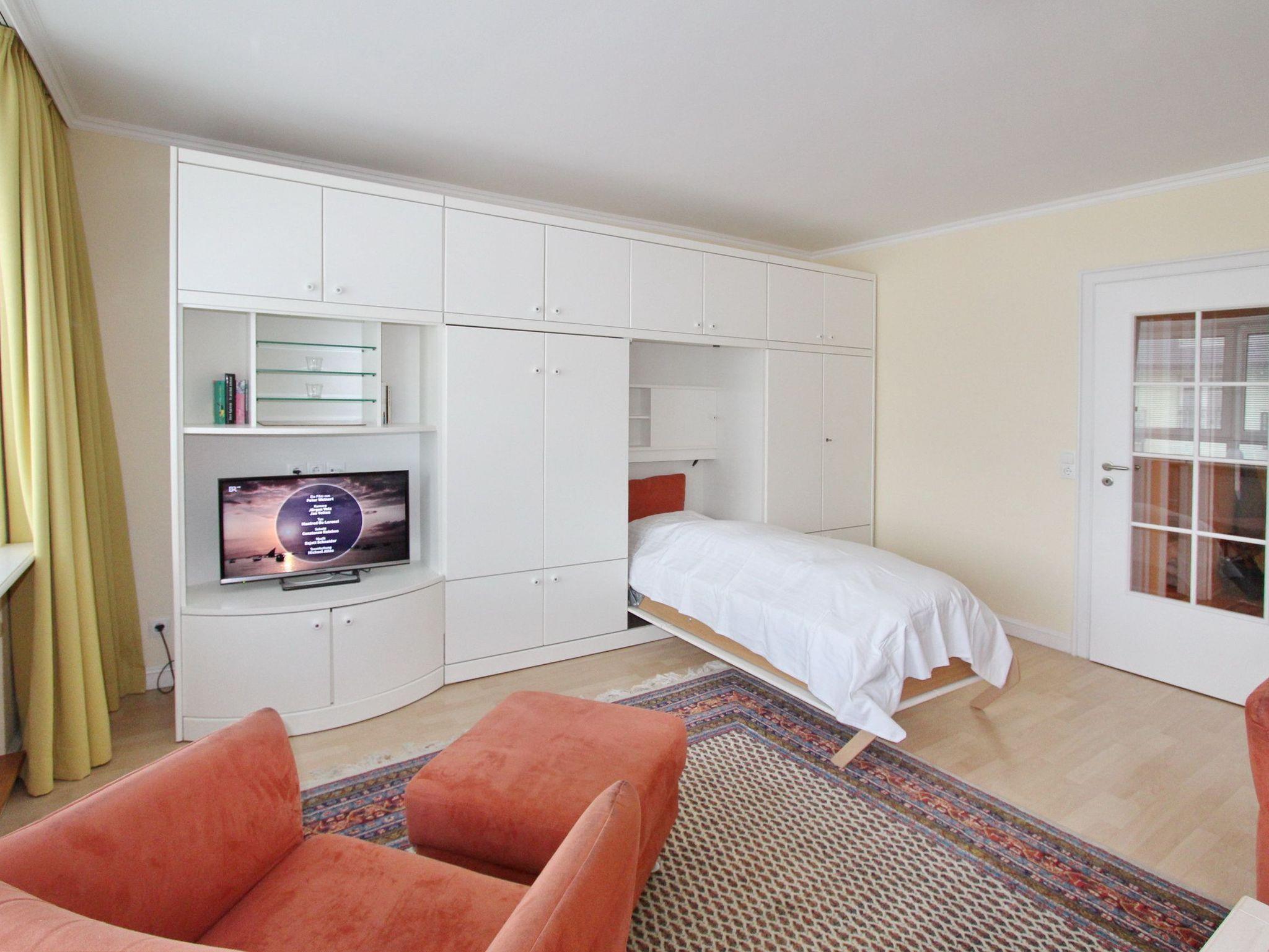 Hell und freundlich eingerichtete 1 Zimmer Wohnung in der 1. Etage zur Ostseite. Diese Nichtraucherwohnung befindet sich in direkter Strandlage und nur wenige Schritte von der Westerländer Innenstadt entfernt. Der kombinierte Wohn-Schlafraum ist mit Einzelschrankbetten, einem Essplatz für 2 Personen sowie einer komfortablen, ansprechende Sitzgruppe ausgestattet ist. In der separaten Küche mit Mikrowelle, Geschirrspüler, 2 Platten Herd und zusätzlicher Nespressomaschine können sie einfach und schnell kleine Mahlzeiten oder ein köstliches Frühstück zubereiten. Im hellen Badezimmer gibt es eine Dusche und einen Handtuchtrockner. Den verglasten Ostbalkon (Wintergarten) mit modernen Loungemöbeln können sie auch bei schlechtem Wetter nutzen. Diese ca. 40 m² große Wohnung verfügt über einen Flachbildfernseher von Panasonic und ein Radio mit CD Spieler.