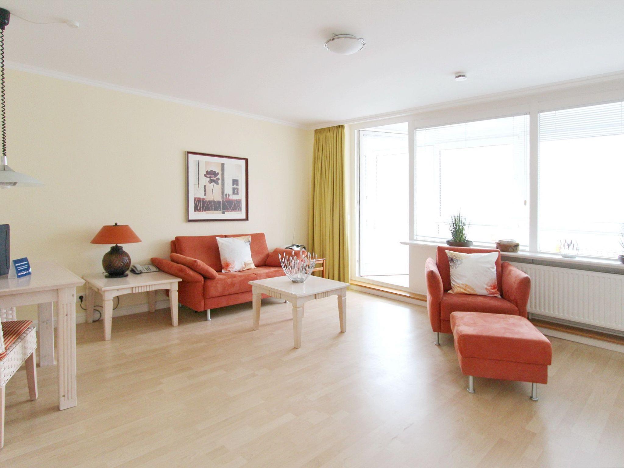 Helle 1-Zimmer-Wohnung in Westerland auf Sylt mit direkter Strandlage und verglastem Balkon.