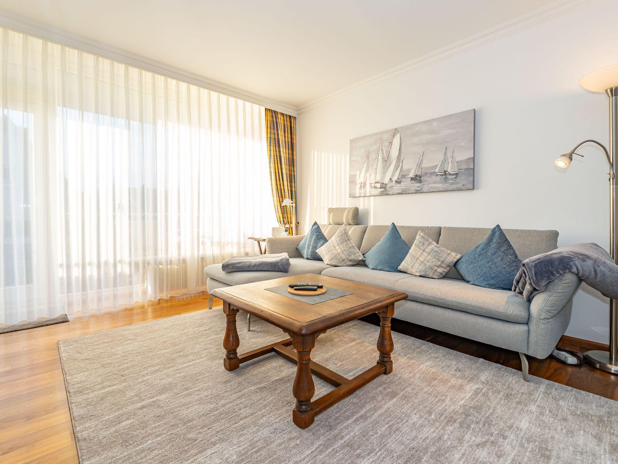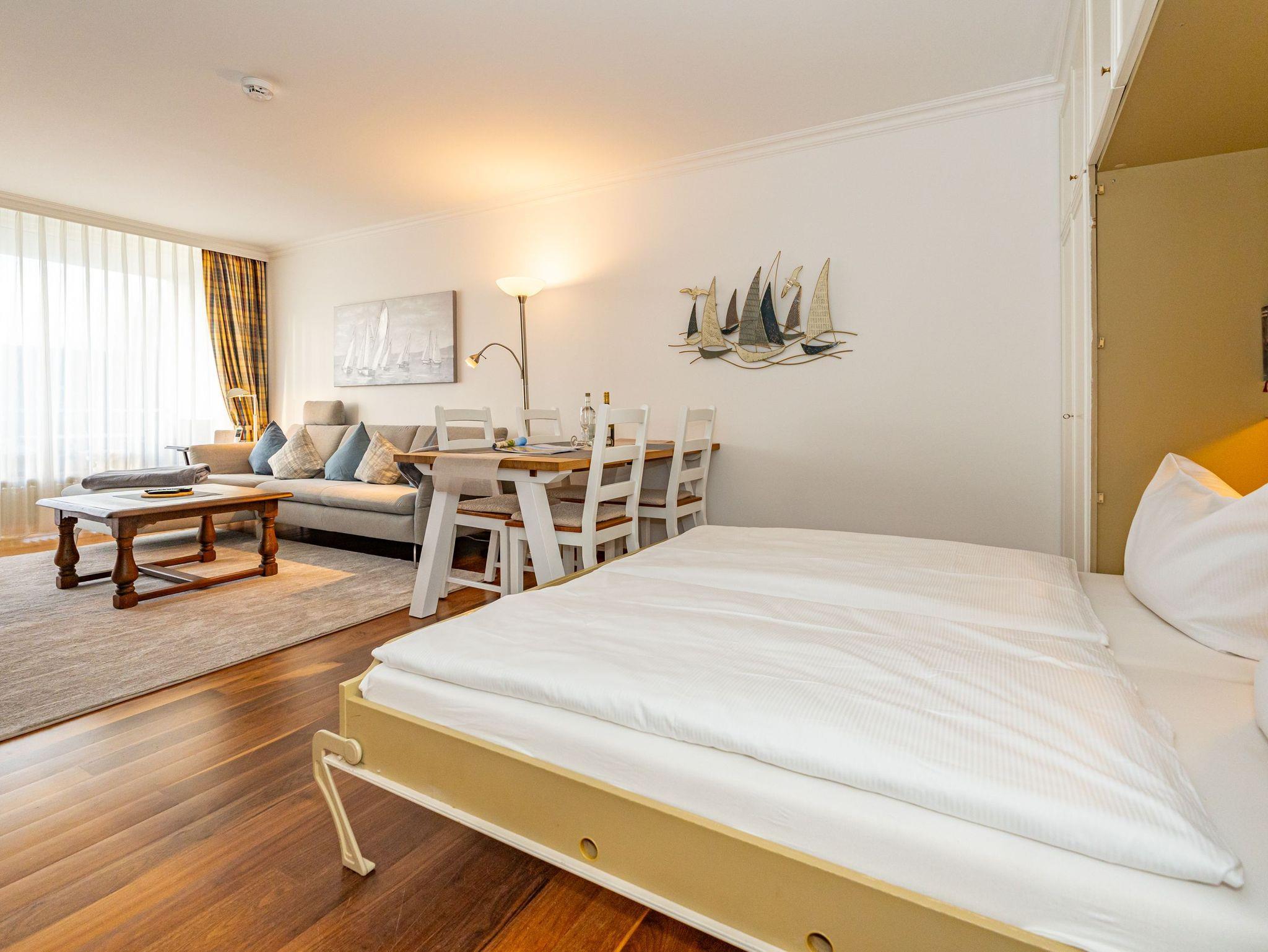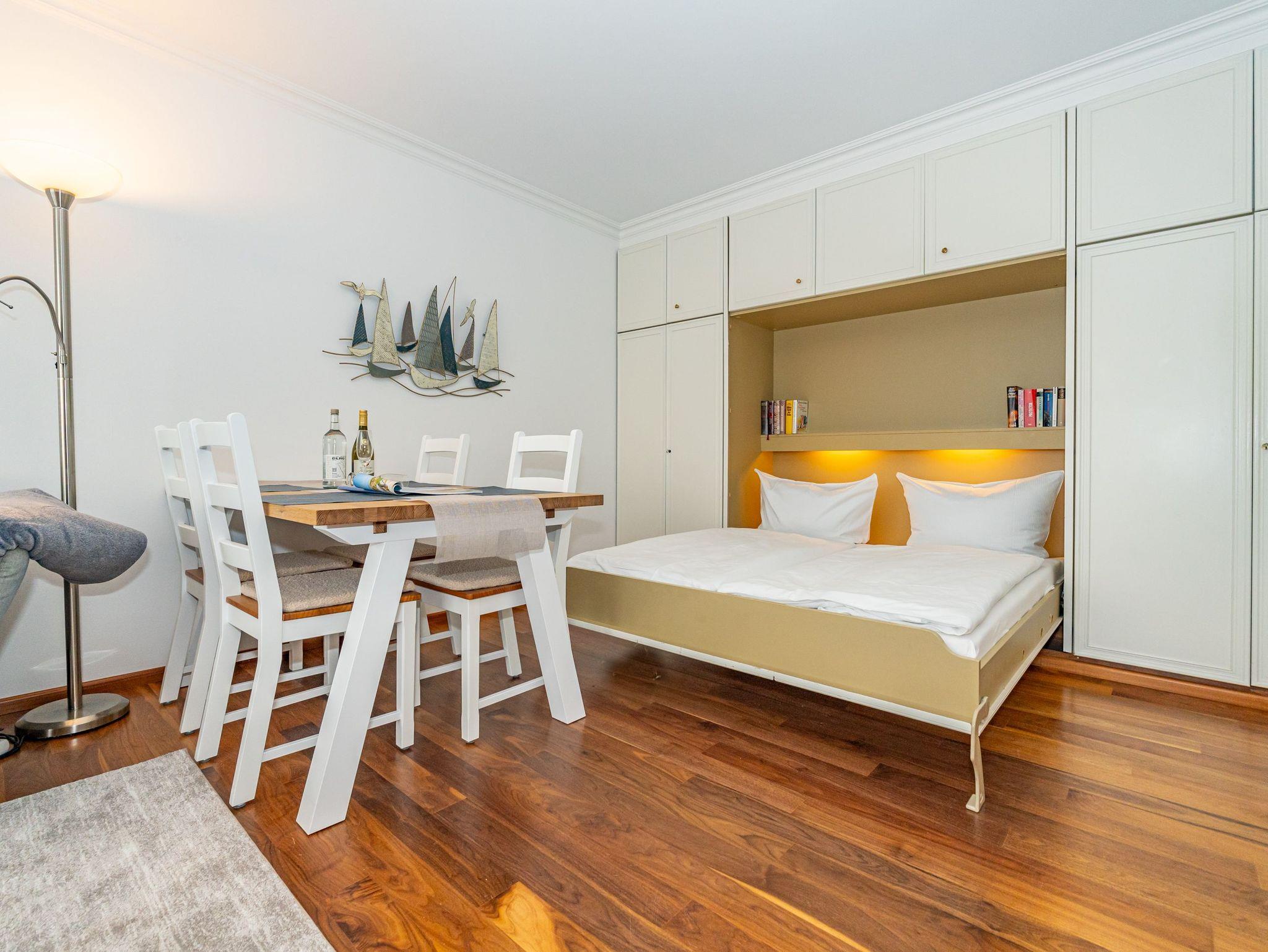 Der Wohnraum besteht aus einer gemütlichen Sitzgarnitur (Sofaecke), einer Essecke, Doppelwandschrankbett (2 Einzelmatratzen), Kabel-Flachbild-TV, HiFi-Anlage, Telefon inklusive Flatrate für Gespräche ins deutsche Festnetz (Handynummern gesperrt) und[nbsp][nbsp]kostenloser Internetzugang per W-Lan (ohne Gewähr).