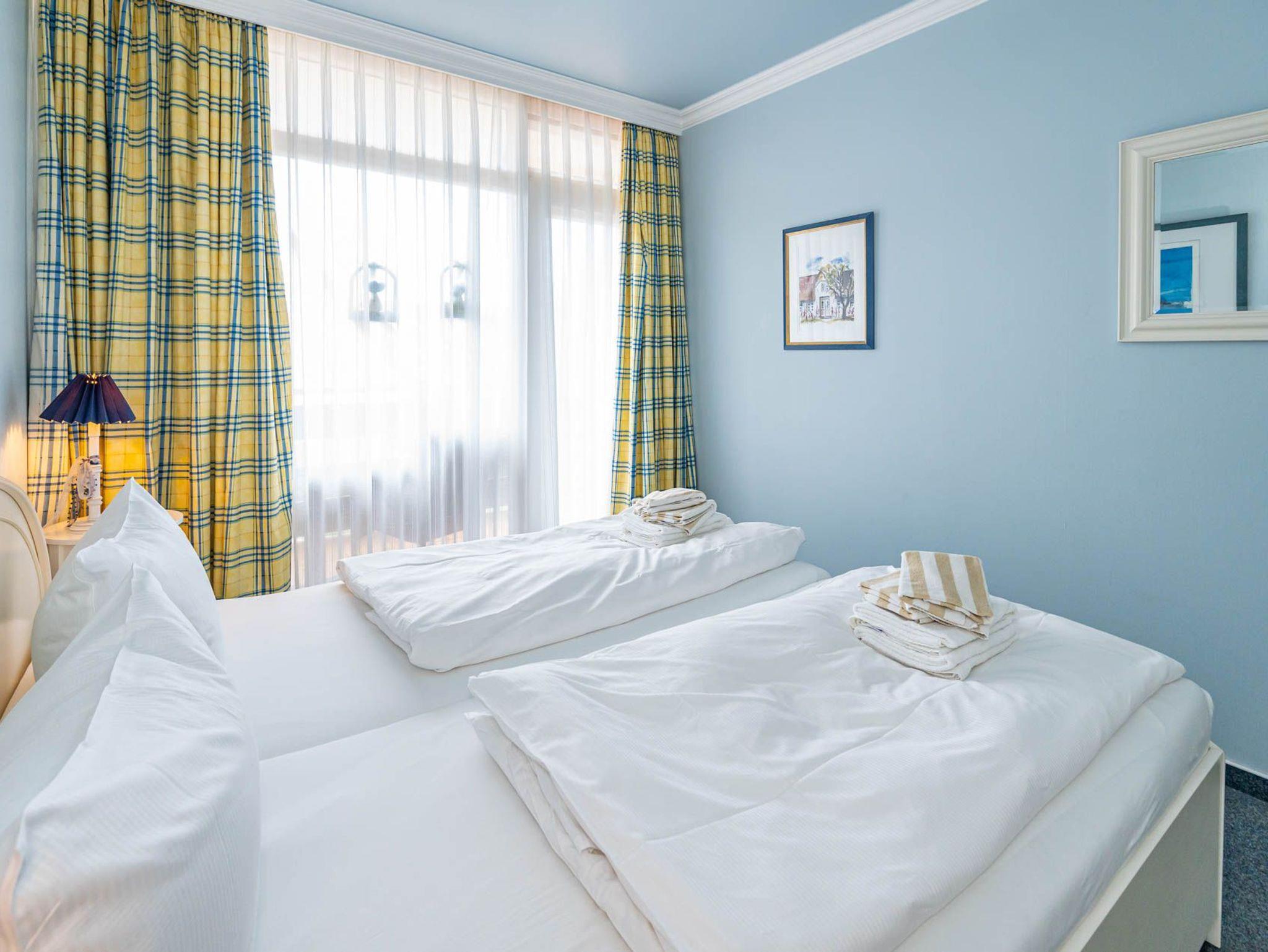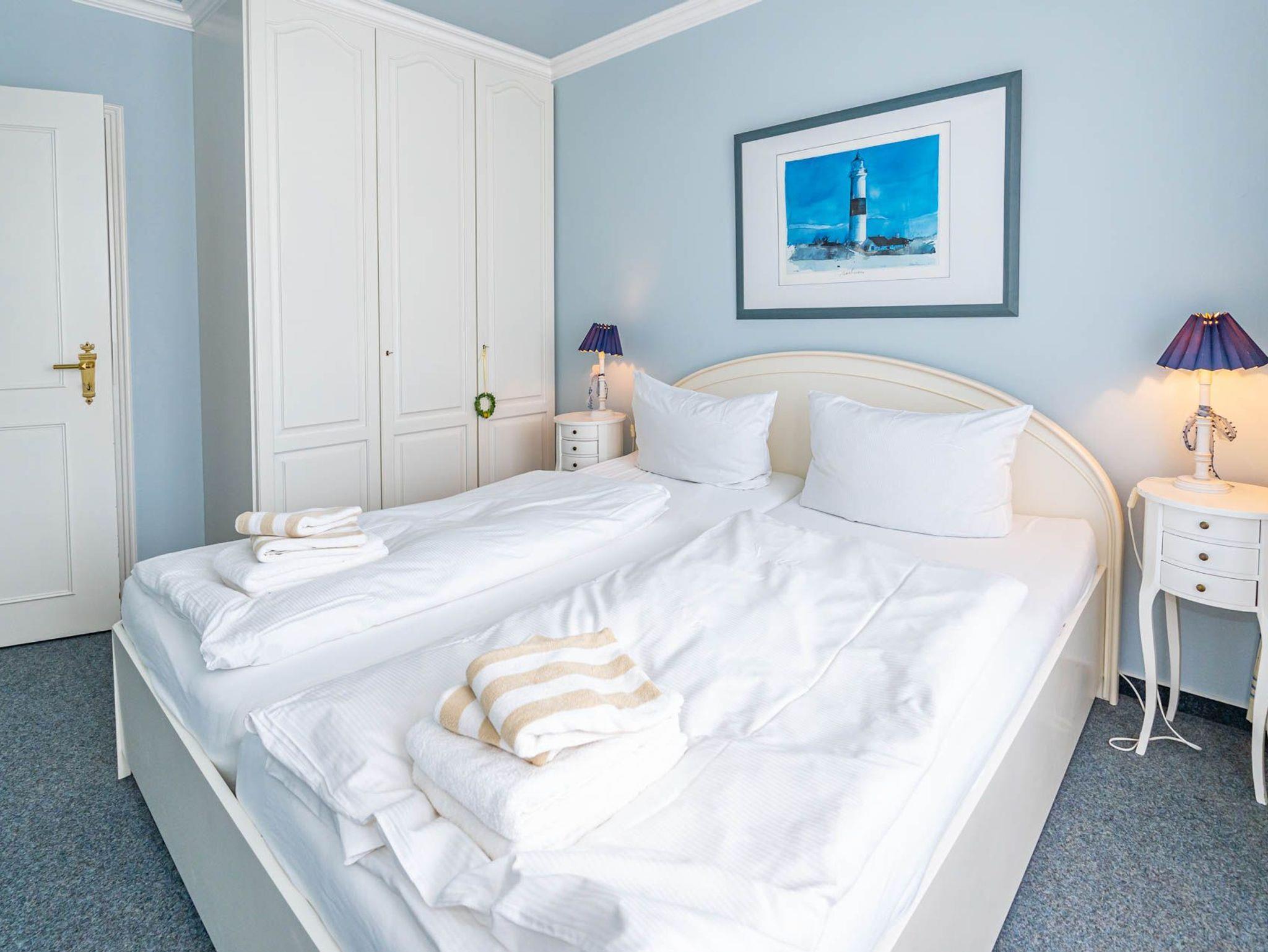 Das Schlafzimmer hat ein bequemes Doppelbett (1,80 x 2,00m) mit zwei Einzelmatratzen.