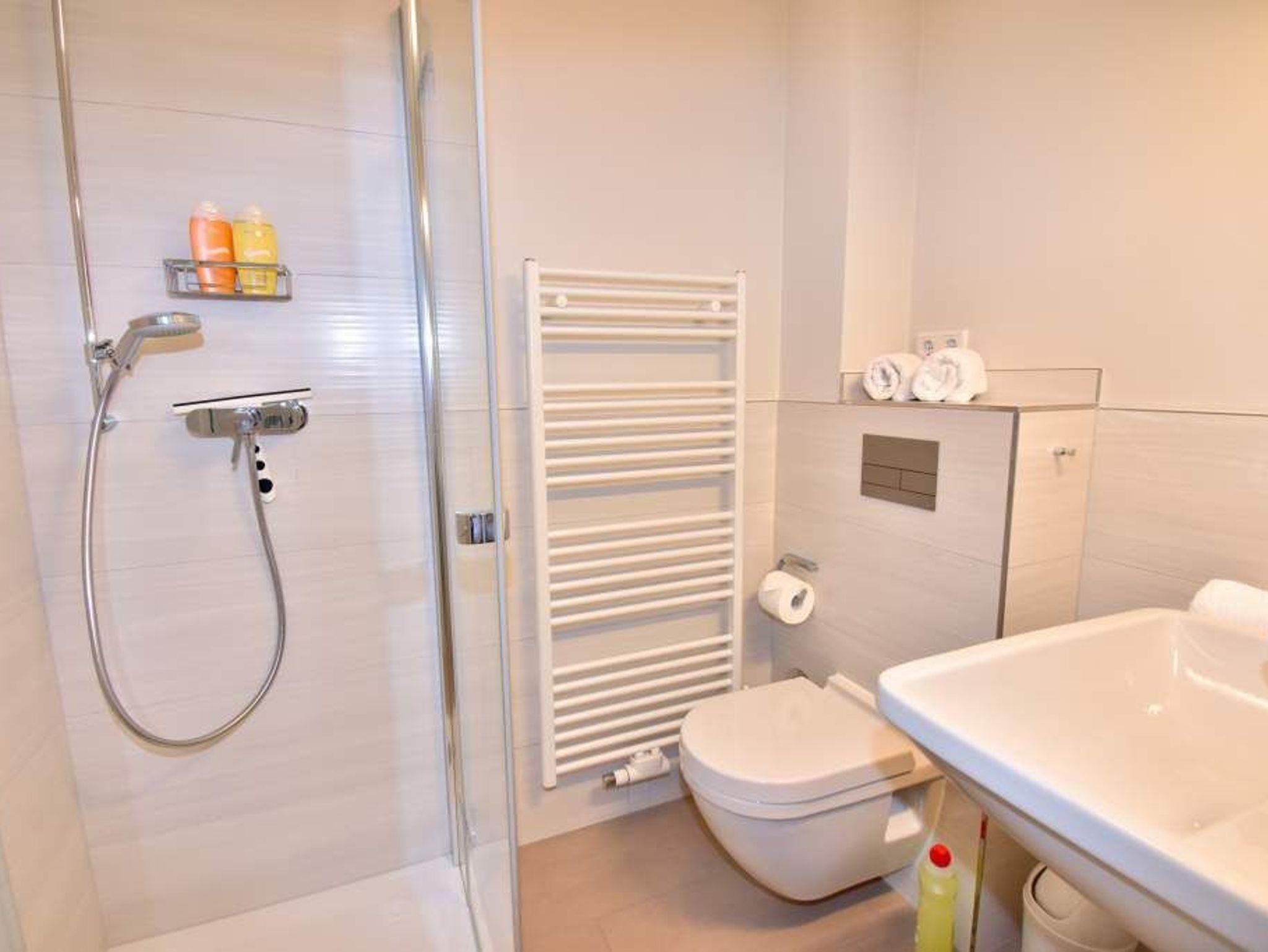Im 2. Badezimmer stehen Ihnen Dusche, Handtuchtrockner, Waschtisch, WC und Fön zur Verfügung.