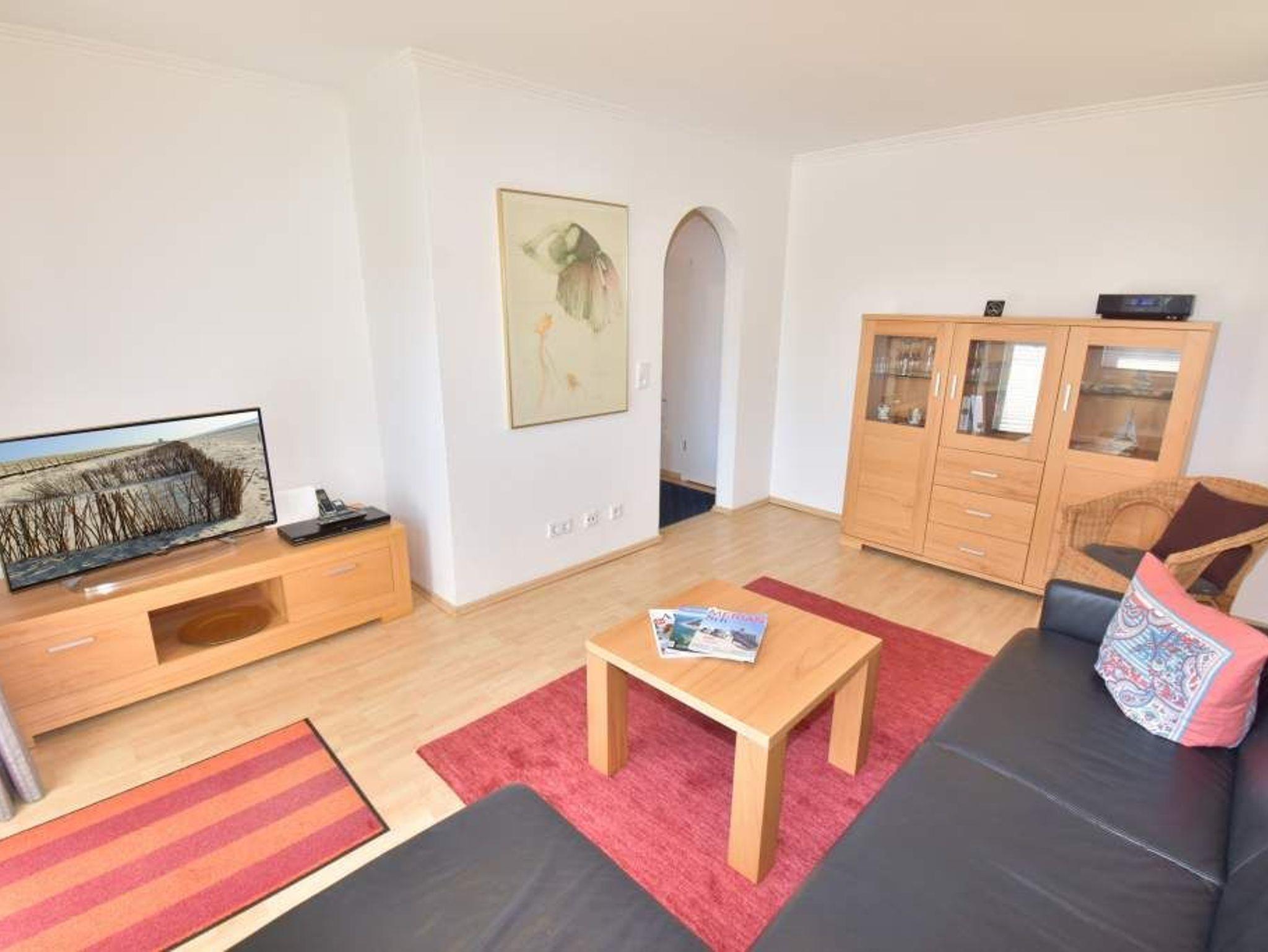 Das Wohnzimmer ist ausgestattet mit einer Leder-Schlafcouch (Liegefläche 1,40 x 2,00 m), Flachbild-TV, Blu-Ray-Player, HiFi-Anlage mit CD-Player, WLAN, kostenfreie Telefonie ins dt. Festnetz.