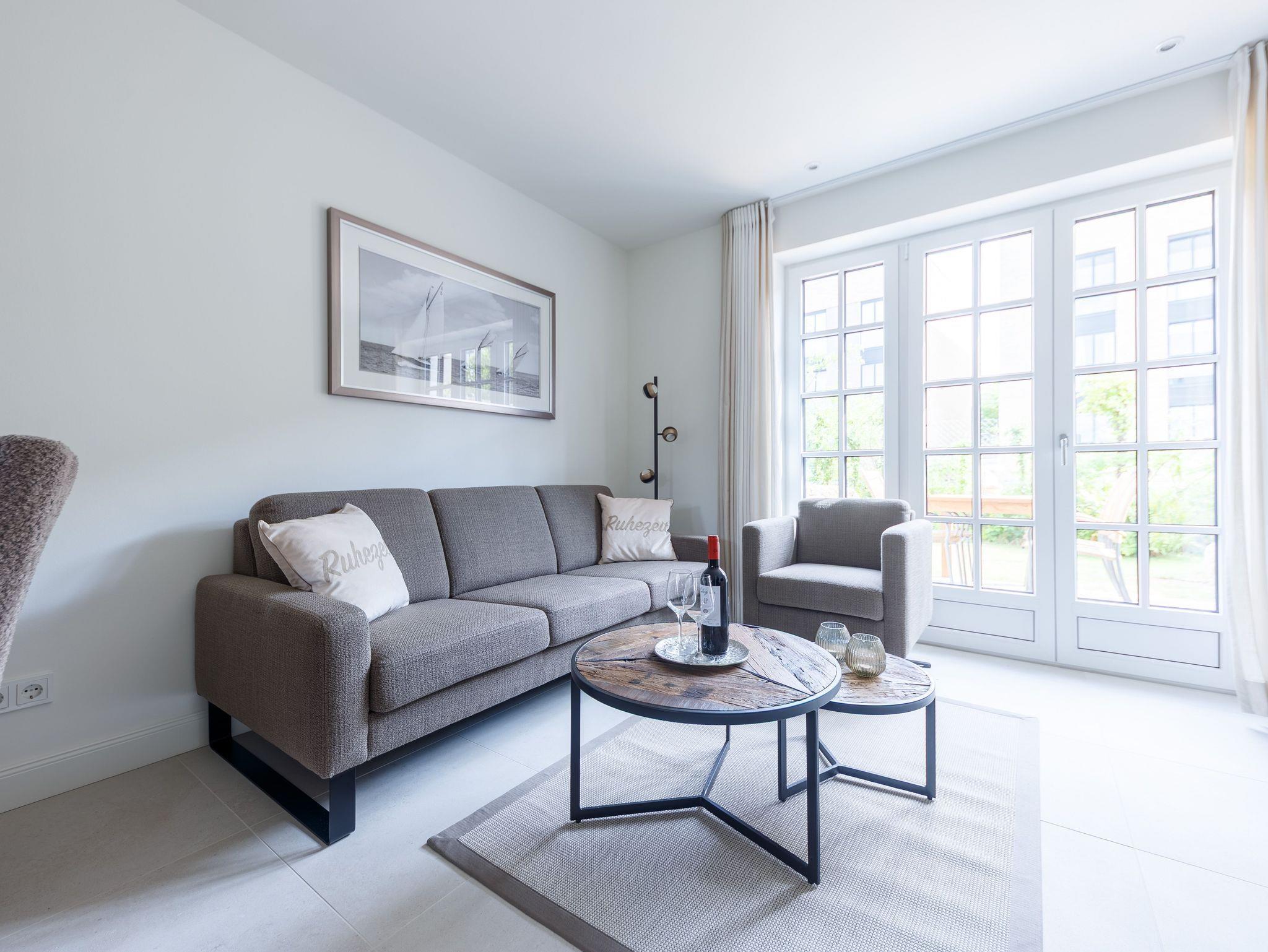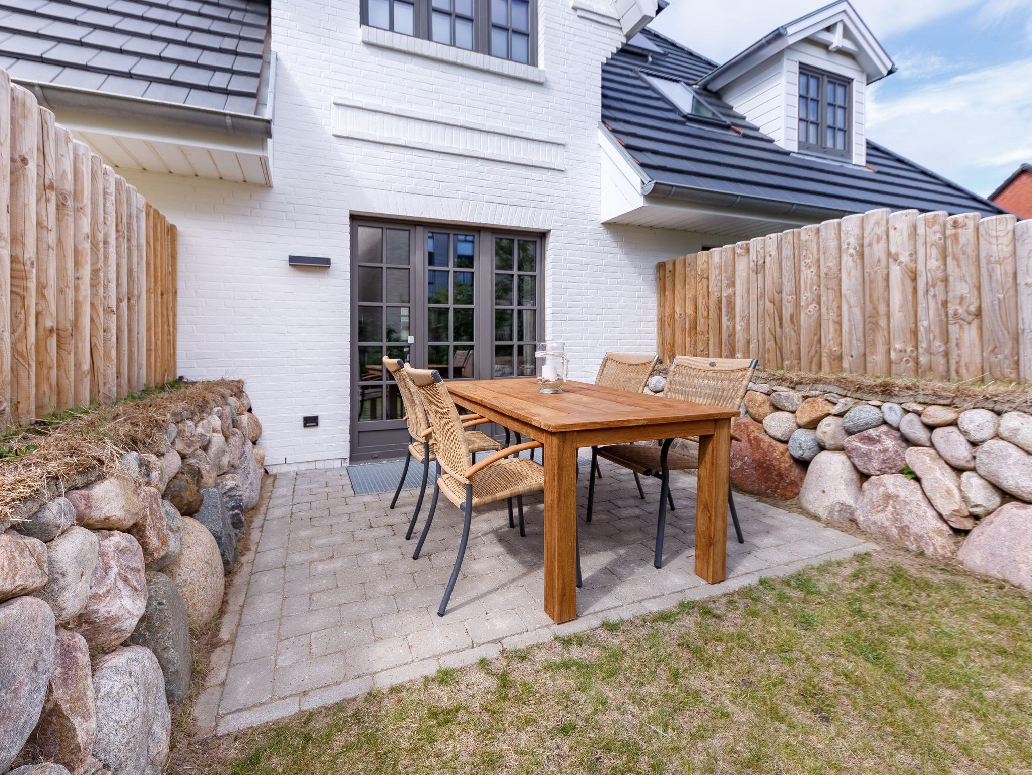 Modernes Reihenhaus in Westerland mit Kaminofen und möblierter Terrasse nach Süden.