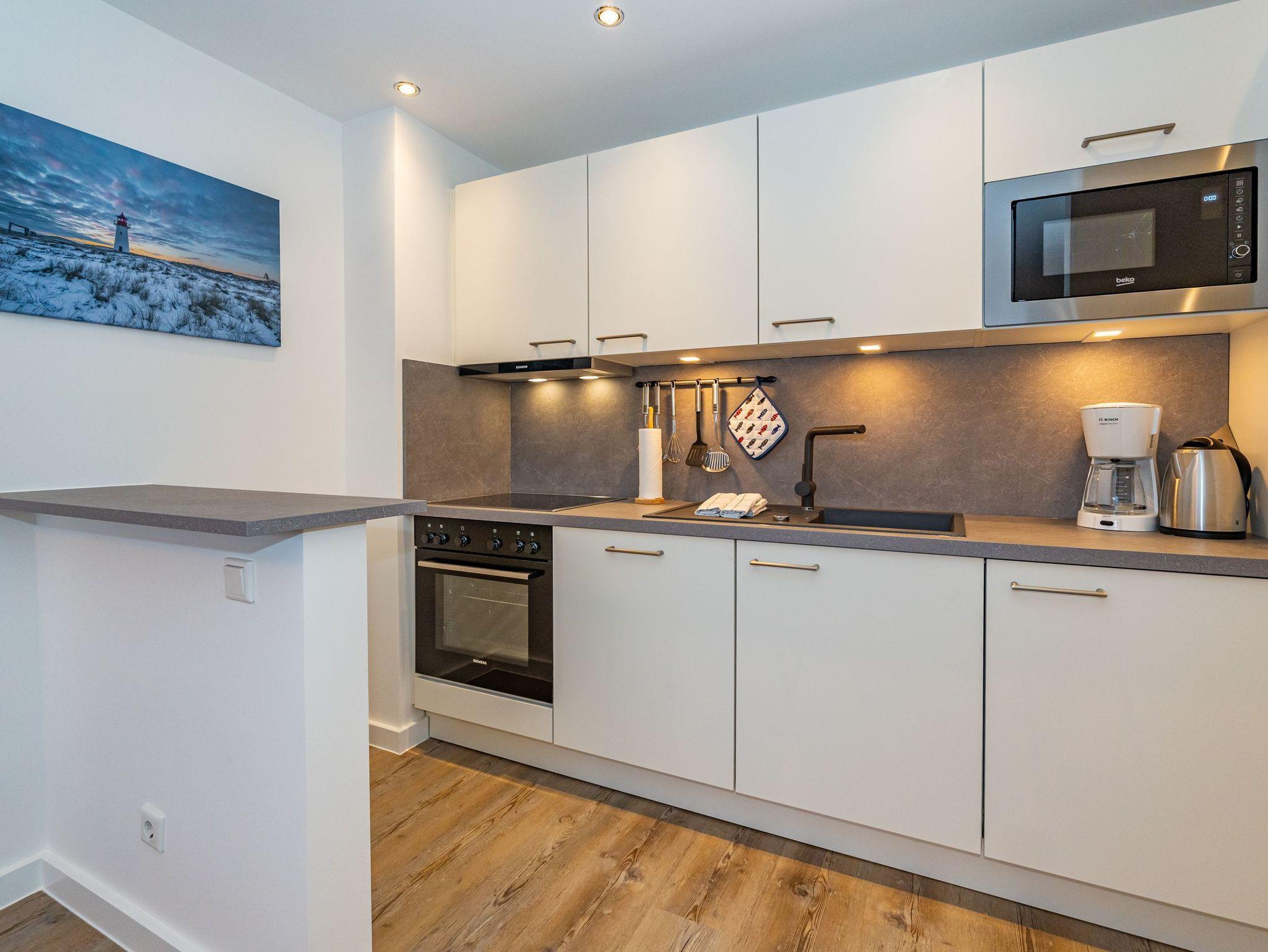 Moderne 2-Zimmer-Ferienwohnung in Westerland mit Westbalkon und Parkplatz, direkt an der Düne und nah am Strand.