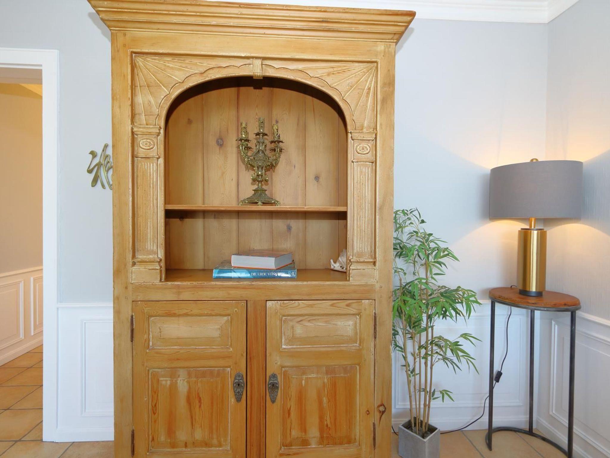 Ein schicker Einrichtungsstiel in modernen Farben erwartet Sie. Moderne Ledersitzgarnitur, großer 55 Zoll Flachbildfernseher und Radio sowie Eßtisch.