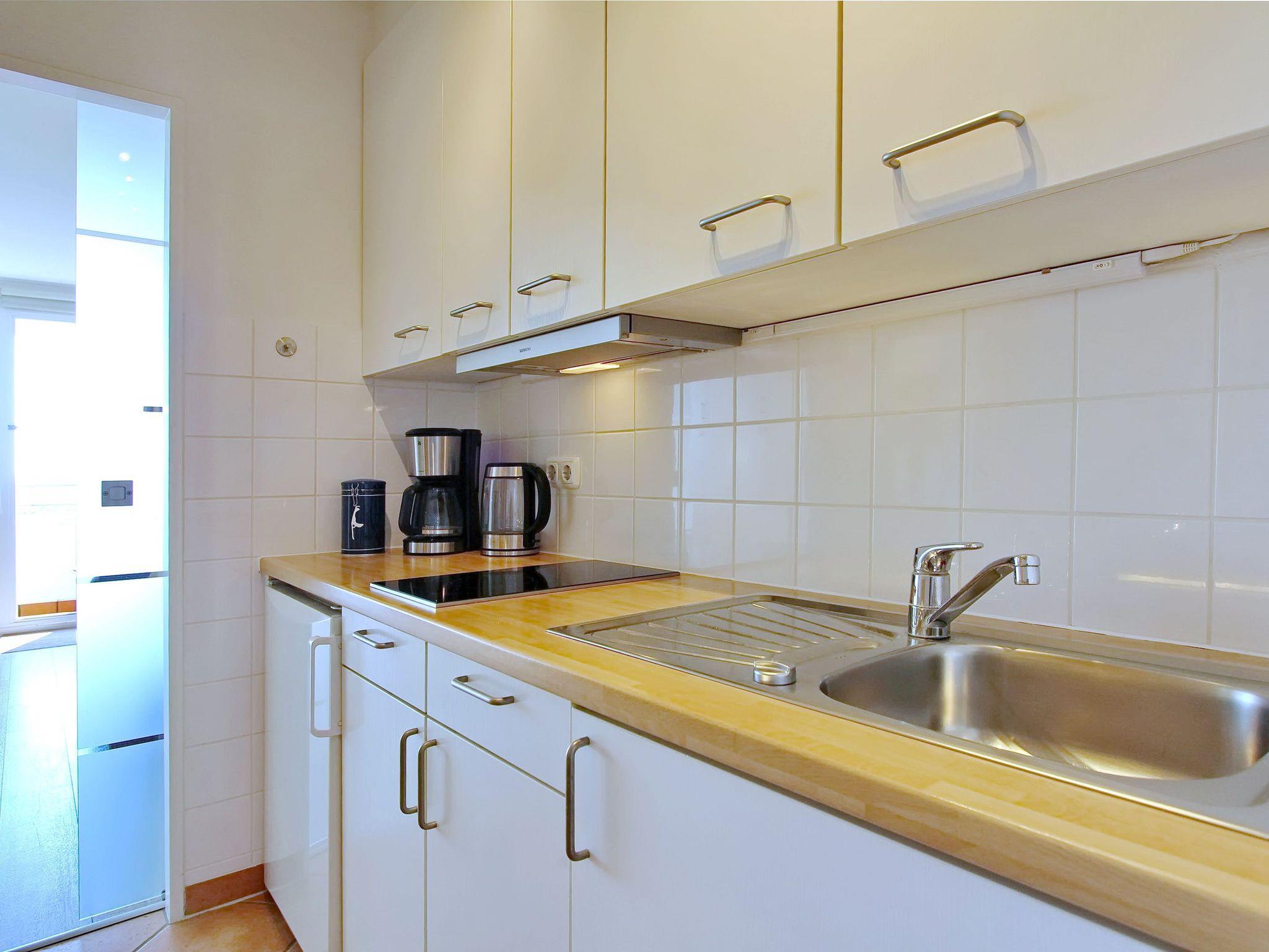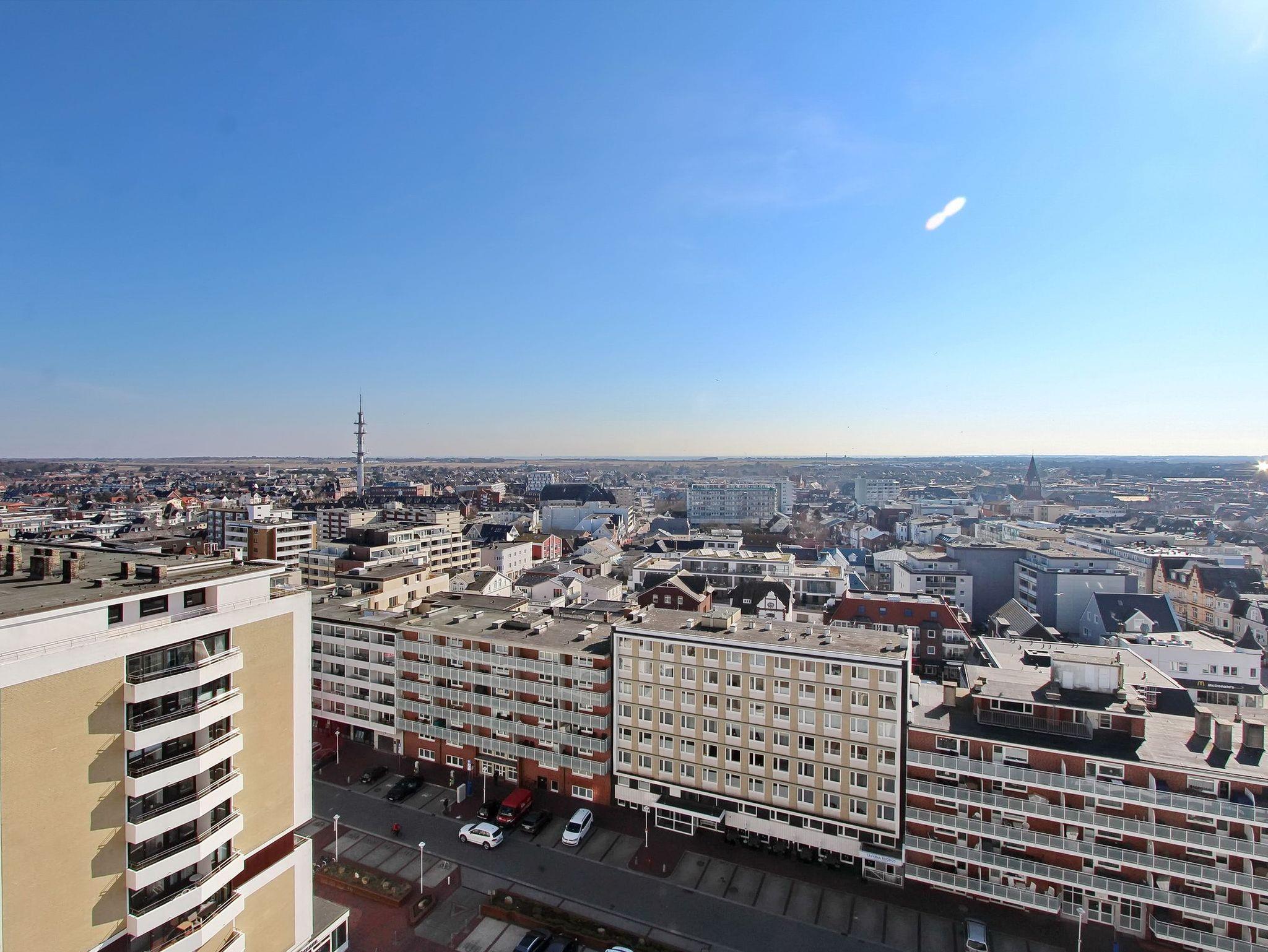 Im Haus Metropol in der 12. Etage befindet sich diese wunderschöne Einzimmerwohnung. Sie hat einen herrlichen Weitblick über die Insel und die Stadt und bei klarem Wetter können Sie bis zum nordfriesischen Wattenmeer und dem Festland schauen. Der Wohn-Schlafraum mit vorgelagertem Balkon zur Ostseite (inkl. Balkonmöbeln) hat bodentiefe Fenster und ist daher lichtdurchflutet. Direkt am Fenster steht der Essplatz mit 2 bequemen Sesseln und des weiteren gibt es eine Couch und eine Schrankwand mit einem Doppelschrankbett. Stauraum für Ihre persönlichen Dinge ist vorhanden. Das Badezimmer hat eine Dusche, Handtuchtrockner und einen Fön. Die Einbauküche mit 2 Cerankochplatten befindet sich im Flur. Zur technischen Ausstattung der Wohnung gehört ein Flachbildfernseher, ein DVD Player, sowie ein Stereo-CD-Radioplayer. Ein freies WLAN Netzwerk (WEG Haus Metropol - Passwortfrei - ohne Gewähr) steht ihnen kostenfrei zur Verfügung. Diese Nichtraucherwohnung hat eine Größe von ca. 30 m².