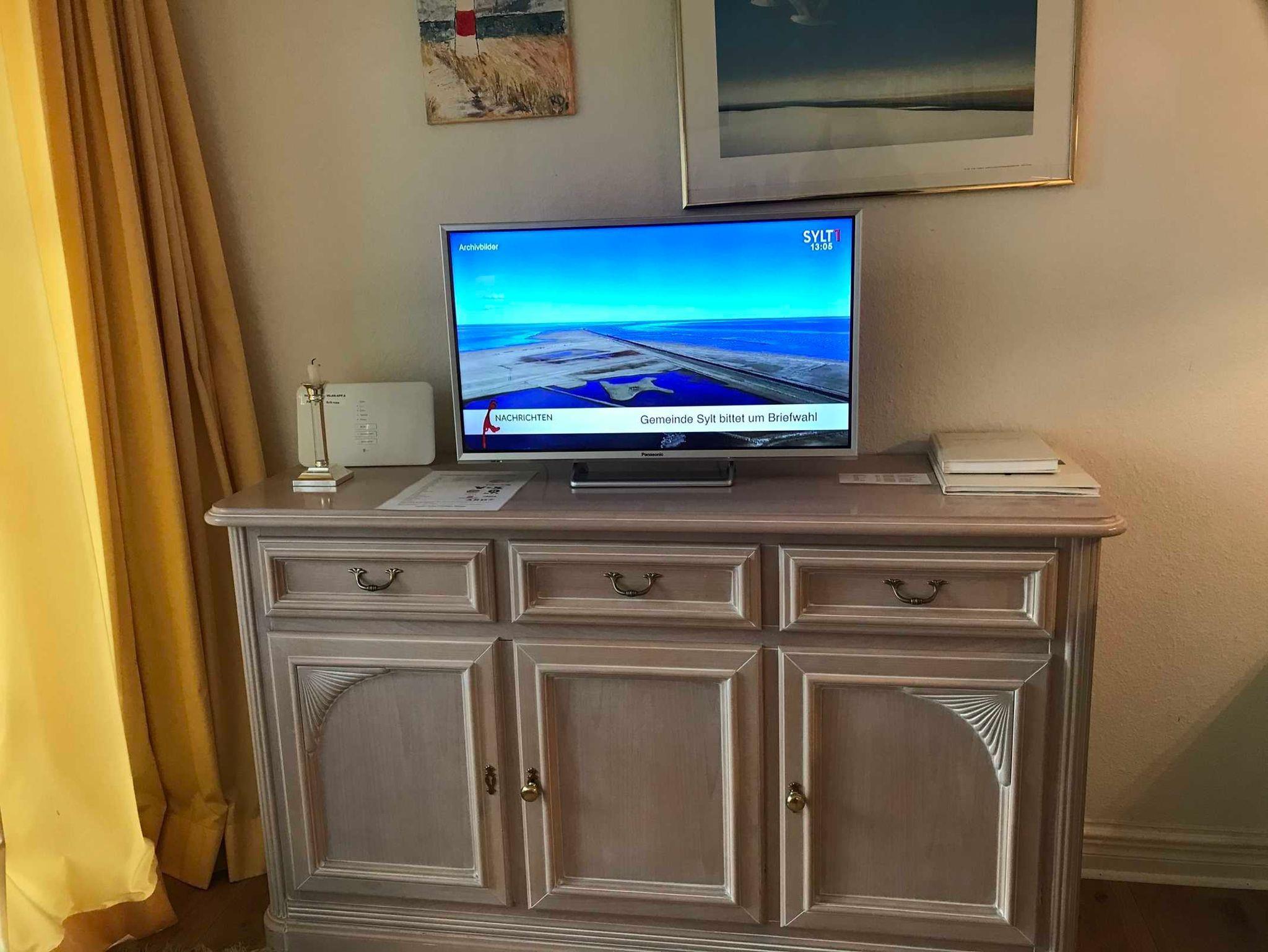Multimedia: Flachbild-TV, Stereoanlage mit CD-Player und Radio.