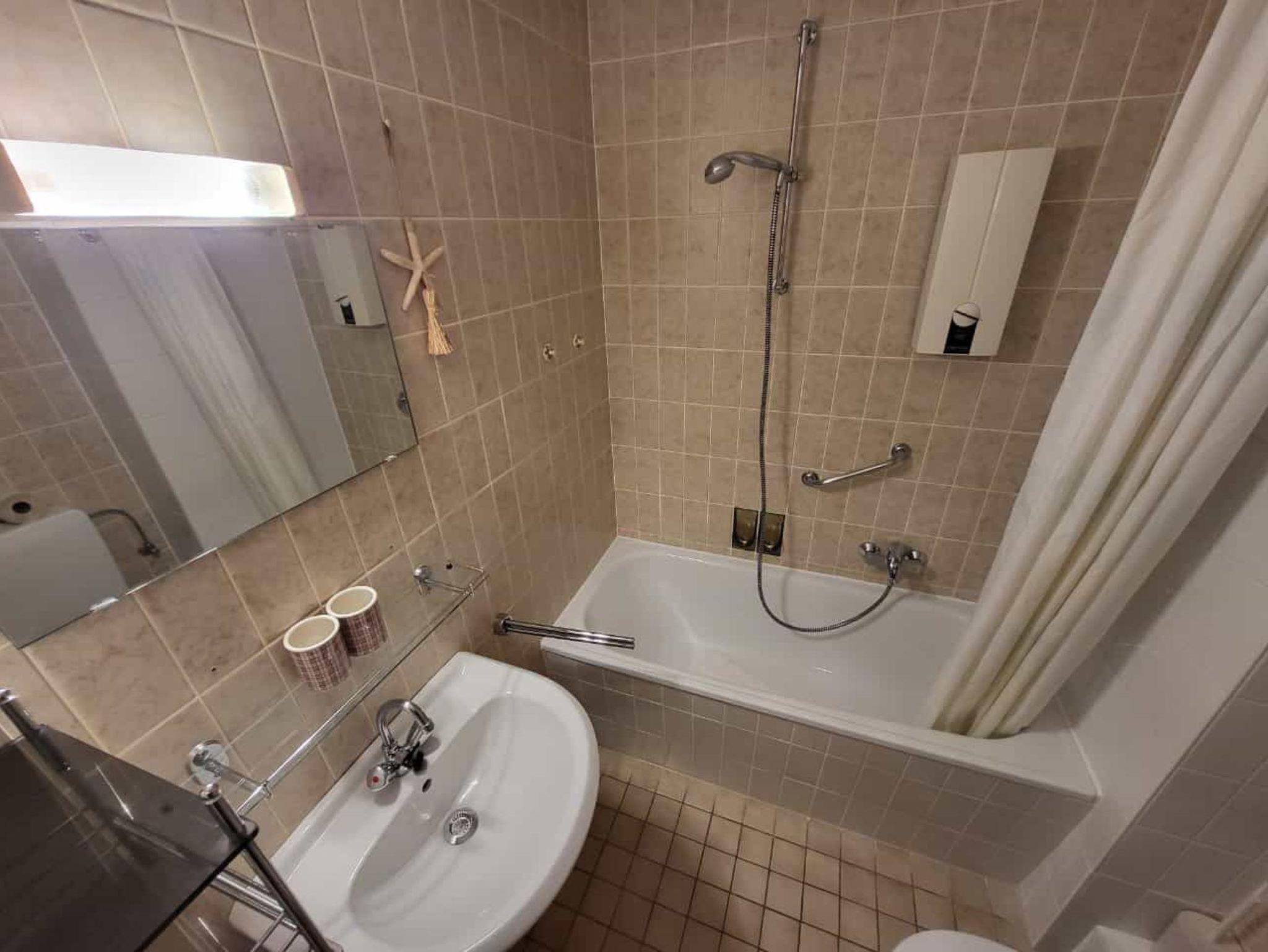 liegt das moderne, 5-geschossige Appartementhaus mit Fahrstuhl. Im Untergeschoss steht ein Gemeinschaftsraum mit Münzwaschmaschine und Münzwäschetrockner zur Verfügung. Eine kostenpflichtige Parkmöglichkeit kann für 5.00€ am Tag hinzugebucht werden. Der Fahrstuhl hält in den Zwischenetagen das Appartement ist über 7 Treppenstufen zu erreichen.
