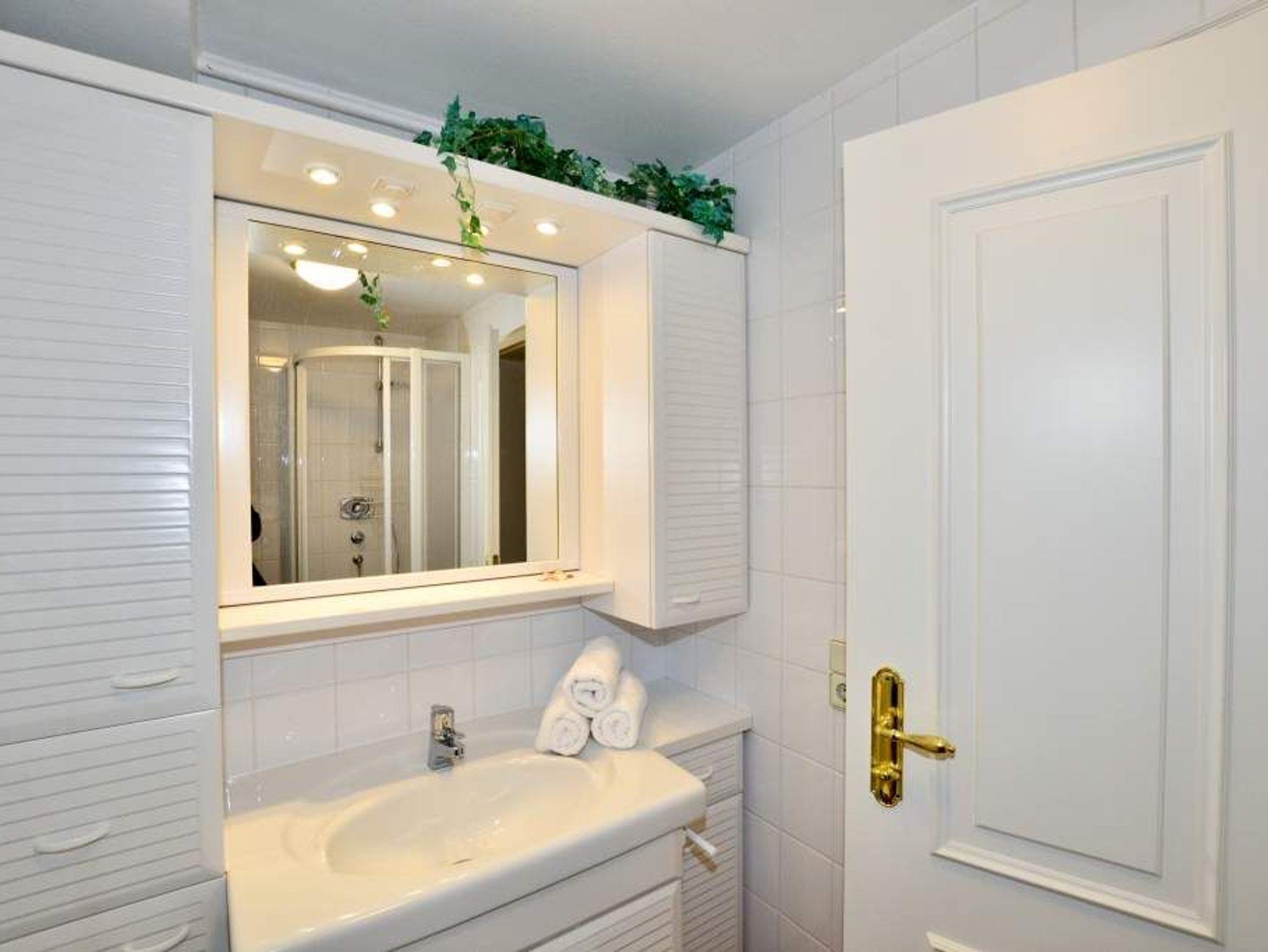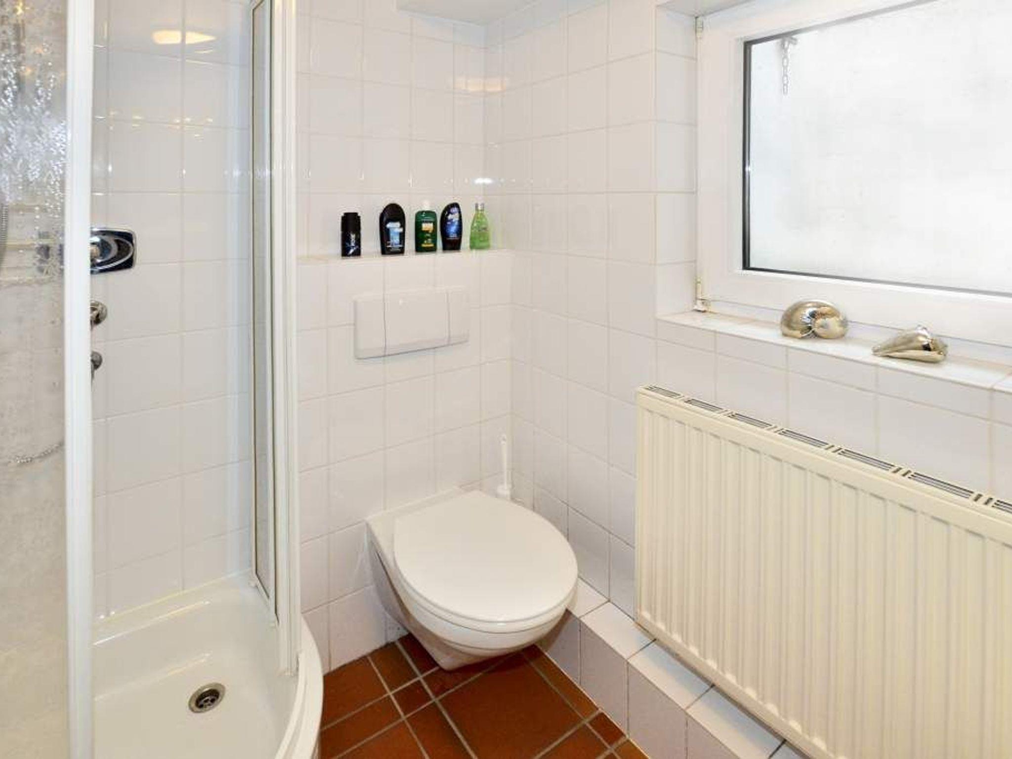 Ein zweite, moderne Badezimmer hat eine Dusche, Waschtisch, Handtuchtrockner und WC. Im separaten Abstellraum steht außerdem ein Wäschetrockner und Bügelbrett zur Verfügung.