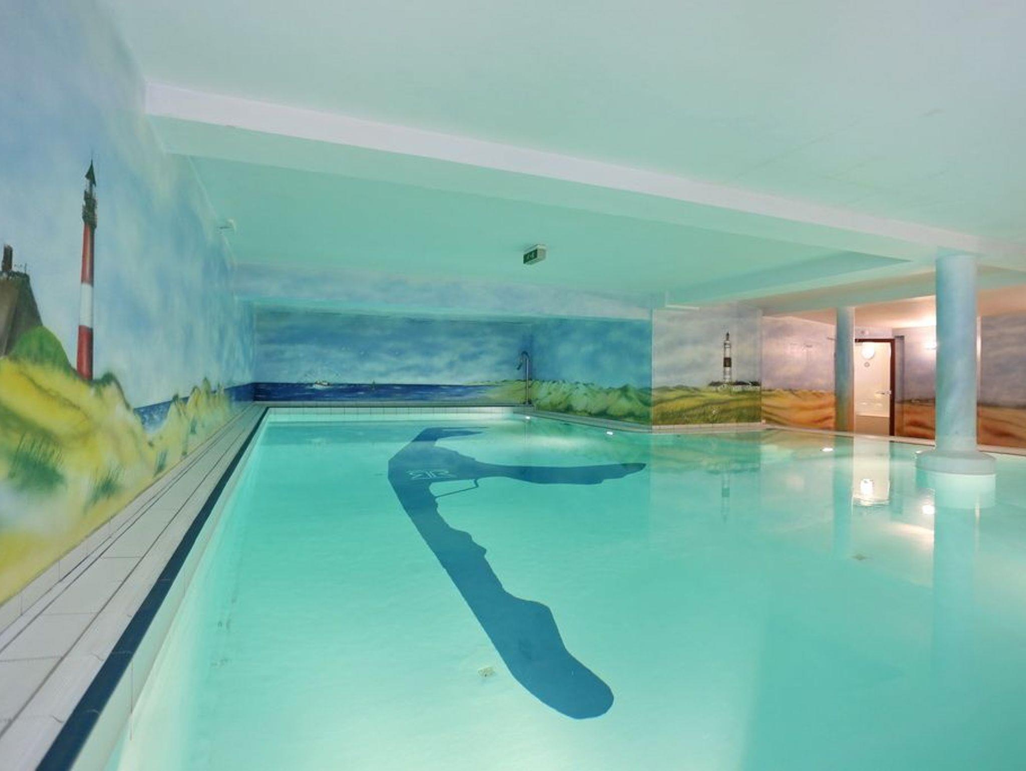 Geschmackvoll eingerichtete 1-Zimmer-Ferienwohnung im Haus Olympia 2. Nichtraucherwohnung. (1.OG). Ca. 30m². Wohn-/Schlafzimmer mit Friesenstilküche, Essplatz, 2-Sitzer-Couch, Doppelbett (160x200), Kleiderschrank, Flat-TV, Radio, W-LAN ohne Gewähr. Duschbad/WC. Südbalkon mit Balkonmöbeln. Tierhaltung nicht gestattet. Im Nebenhaus befinden sich das Schwimmbad, Dampfsauna und Finnische Sauna. Eine Waschküche mit Gemeinschaftswaschmaschine/Trockner ist vorhanden. Garagenstellplatz kann hinzugebucht werden. Bettwäsche und Handtücher sind zur Anreise aufgezogen.