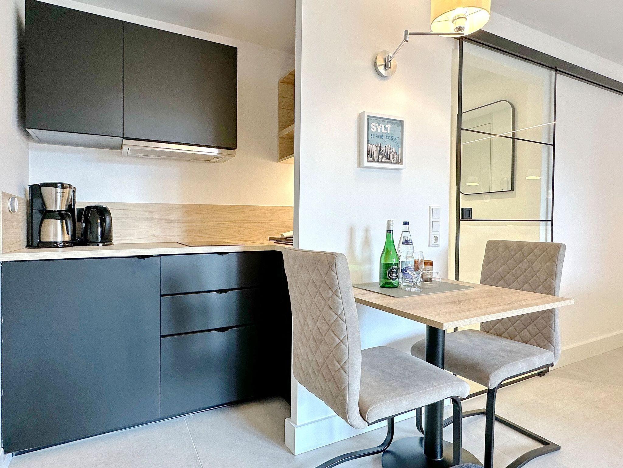 Geschmackvolle 1-Zimmer-Ferienwohnung mit Südbalkon und Zugang zu Schwimmbad und Sauna in Westerland auf Sylt.