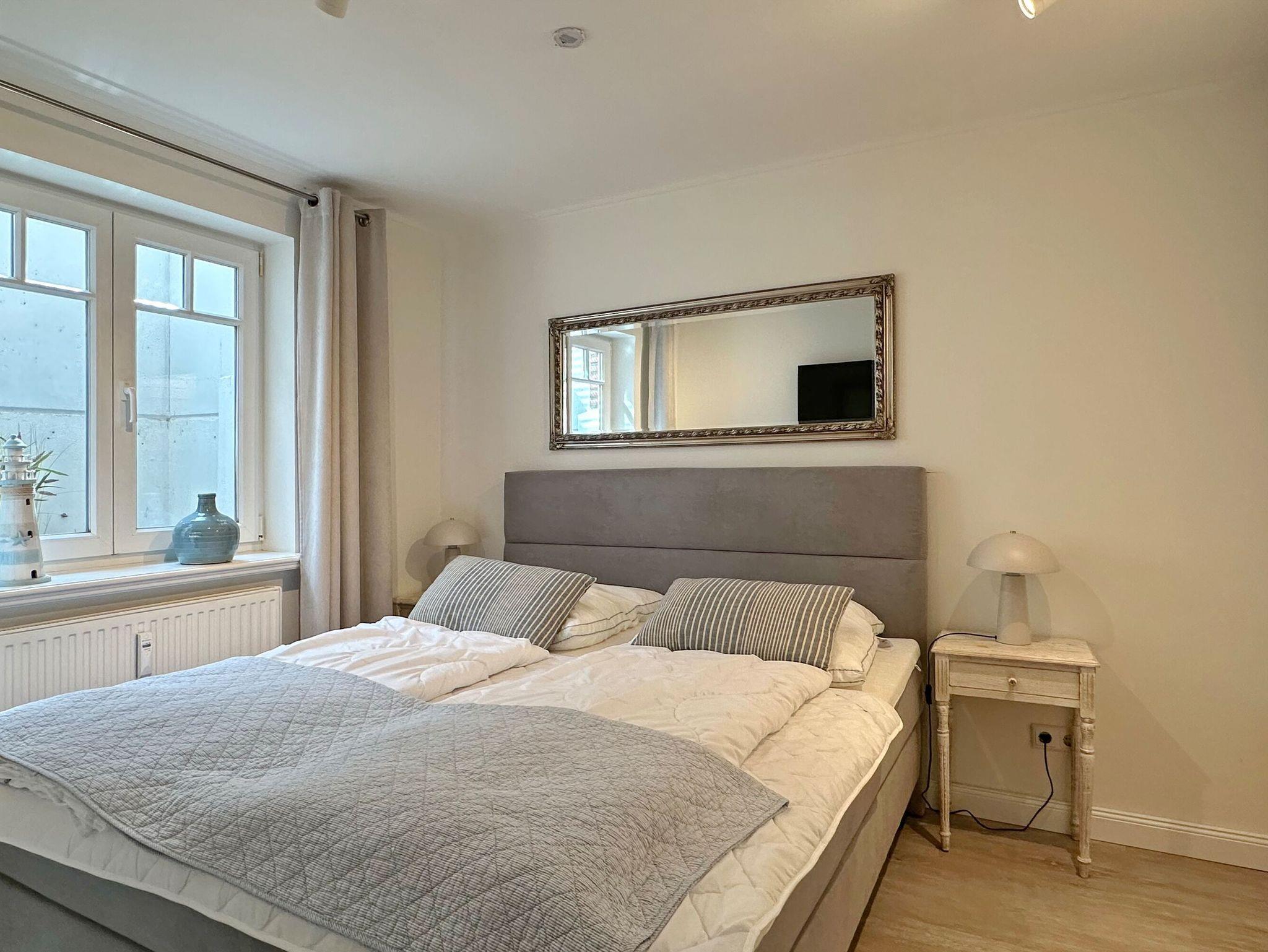 Hübsches 4-Zimmer- Apartment EG/UG im Haus Hopfengarten, ca. 67m², Nichtraucher. Gefliester Wohnraum mit Couch und Sessel, Esstisch, Radio, TV, Ost- und Südterrasse mit Strandkorb (Apr.-Okt.), offene Küche mit Geschirrspüler, Mikrowelle und Backofen, kleiner Esstresen, Duschbad/WC. UG: Schlafzimmer mit Doppelbett (180x200), Schlafzimmer mit Einzelbett (140x200), Schlafzimmer mit Einzelbett (90x200) und TV, Duschbad/WC. PKW-Stellplatz Nr. 7. Tierhaltung ist gestattet, bitte anmelden (Kampfhunde verboten). Bettwäsche und Handtücher sind zur Anreise aufgezogen.