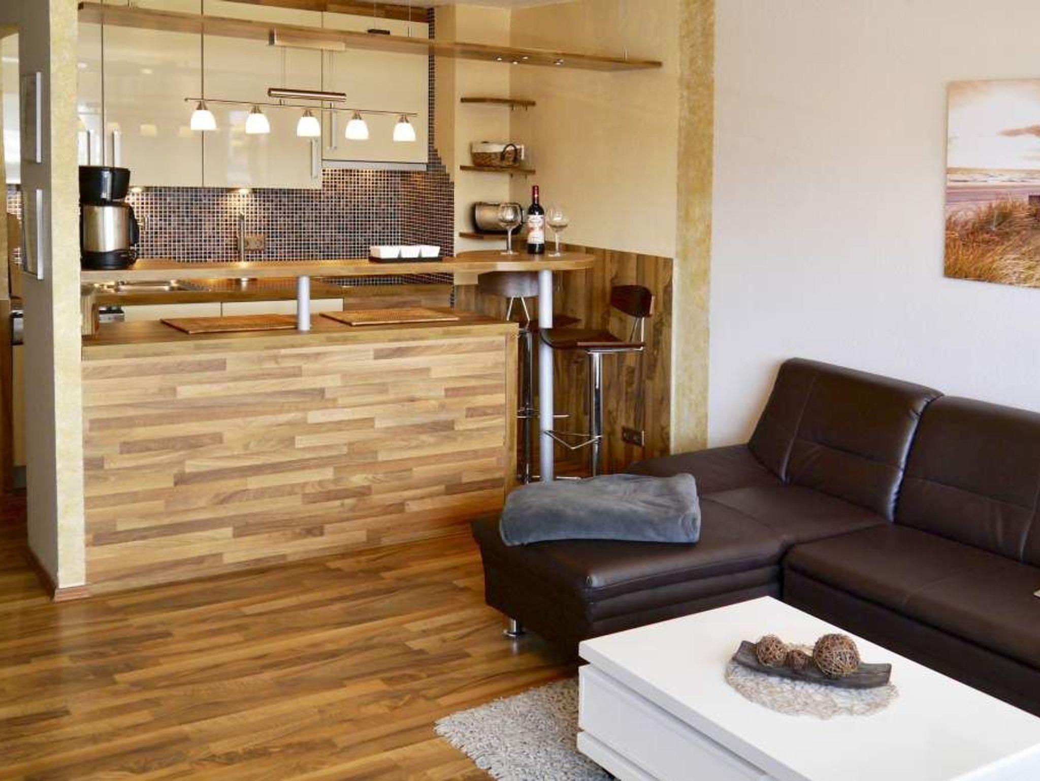 Moderne 1-Zimmer-Ferienwohnung in Westerland auf Sylt mit Westbalkon und kompletter Küchenausstattung.
