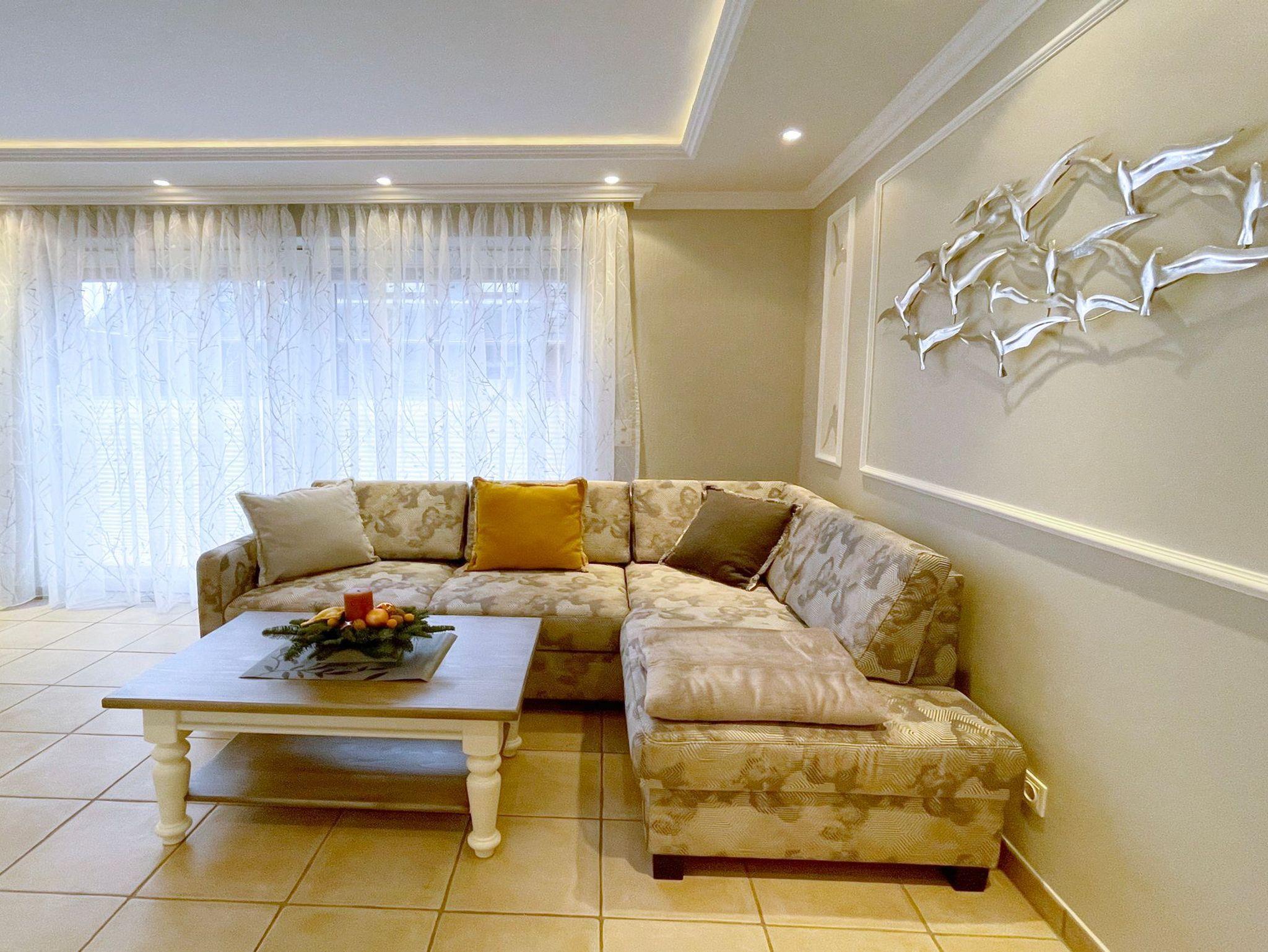 Moderne Ferienwohnung im Erdgeschoss mit Terrasse in südlicher Ausrichtung. Wohnzimmer mit gemütlicher Couch, Essecke für 2 Personen und offener Küchenzeile mit Geschirrspüler und Mikrowelle. Smart-TV und WLAN gehören hier zur Ausstattung. Schlafzimmer mit Doppelbett und zweitem TV. Duschbad mit WC und Waschbecken. Zur Ferienwohnung gehört ein PKW-Stellplatz ( Nr. 2 ) auf dem Grundstück. Im UG befinden sich für die Gäste des Hauses Waschmaschine und Trockner, Nutzung gegen geringe Gebühr. Gerne dürfen Sie hier ein gut erzogenes Haustier mitbringen. Dafür wird dann eine einmalige Haustiergebühr berechnet.