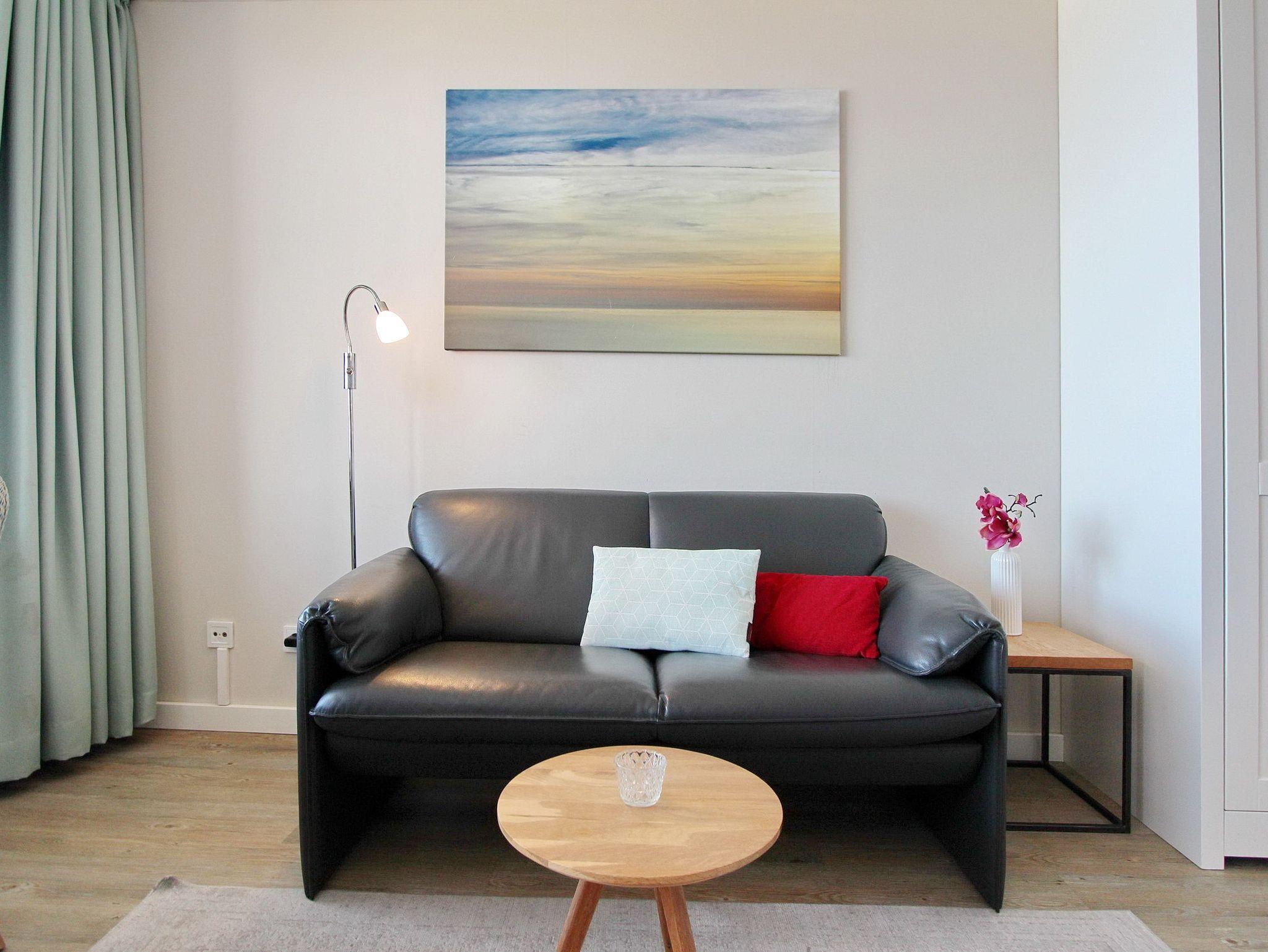 Moderne Einzimmerwohnung in Westerland mit traumhaftem Meerblick und Westbalkon am Strand von Sylt.