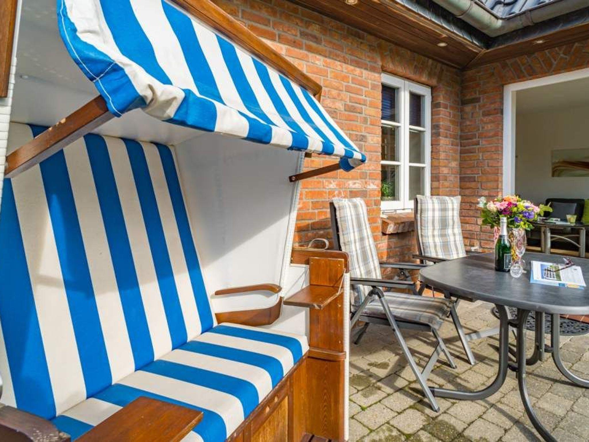 Exklusive und besonders großzügige 2-Zimmer-Nichtraucher-Ferienwohnung (ca. 62 qm) auf einer Ebene im EG für max. 2 Personen und 1 Kleinkind mit Sonnenterrasse (Südausrichtung, mit Gartenmöbeln, Auflagen und Strandkorb)