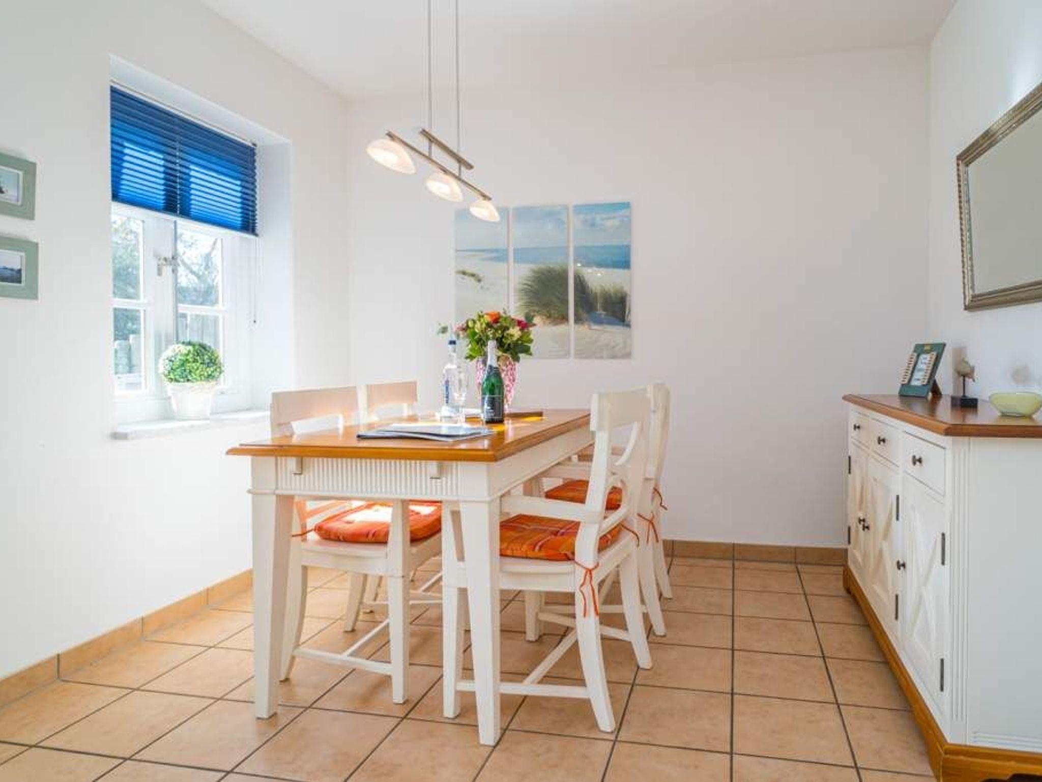 Das Wohnzimmer hat eine komfortable, cremefarbene Ledergarnitur mit zwei Sesseln, einen eigenen Kamin, einen großzügigen Essplatz, Sat-Flachbild-TV, Stereoanlage, Telefon (kostenfrei ins deutsche Festnetz), kostenfreies WLAN