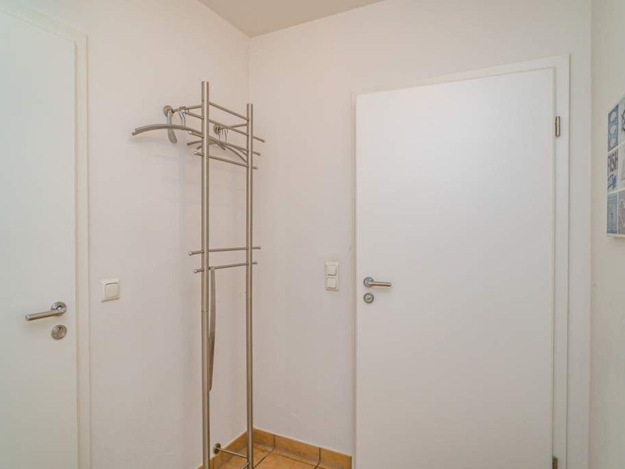 Von der Diele mit Garderobe gelangt man in das Wohnzimmer, in das Schlafzimmer und in das neue Duschbad/WC.
