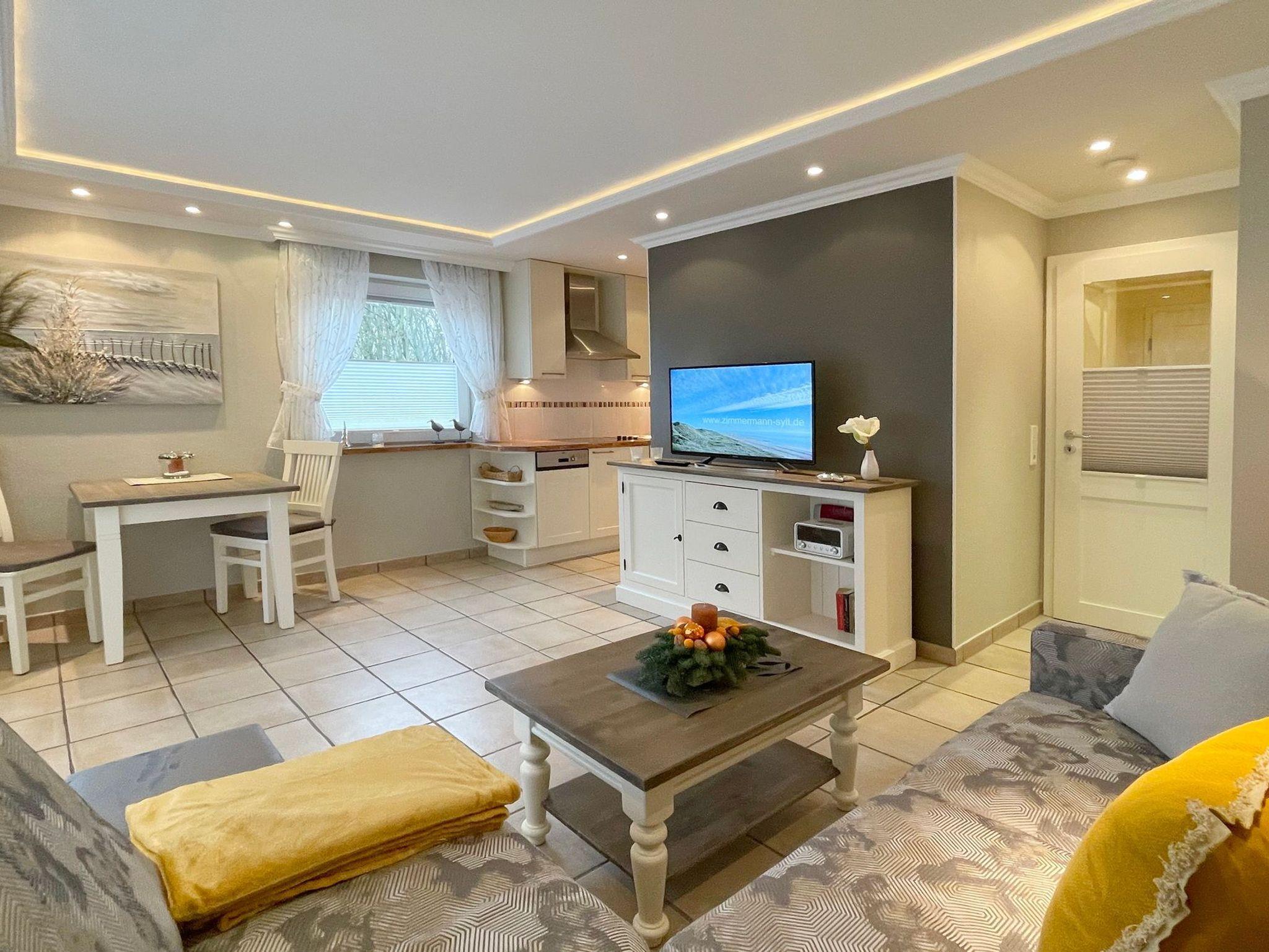 Moderne Ferienwohnung mit Terrasse, offener Küche, Smart-TV und WLAN in Westerland auf Sylt.