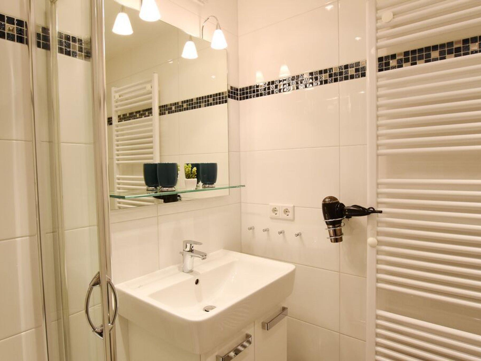 Moderne Ferienwohnung im Erdgeschoss mit Terrasse in südlicher Ausrichtung. Wohnzimmer mit gemütlicher Couch, Essecke für 2 Personen und offener Küchenzeile mit Geschirrspüler und Mikrowelle. Smart-TV und WLAN gehören hier zur Ausstattung. Schlafzimmer mit Doppelbett und zweitem TV. Duschbad mit WC und Waschbecken. Zur Ferienwohnung gehört ein PKW-Stellplatz ( Nr. 1 ) auf dem Grundstück. Im UG befinden sich für die Gäste des Hauses Waschmaschine und Trockner, Nutzung gegen geringe Gebühr. Gerne dürfen Sie hier ein gut erzogenes Haustier mitbringen.