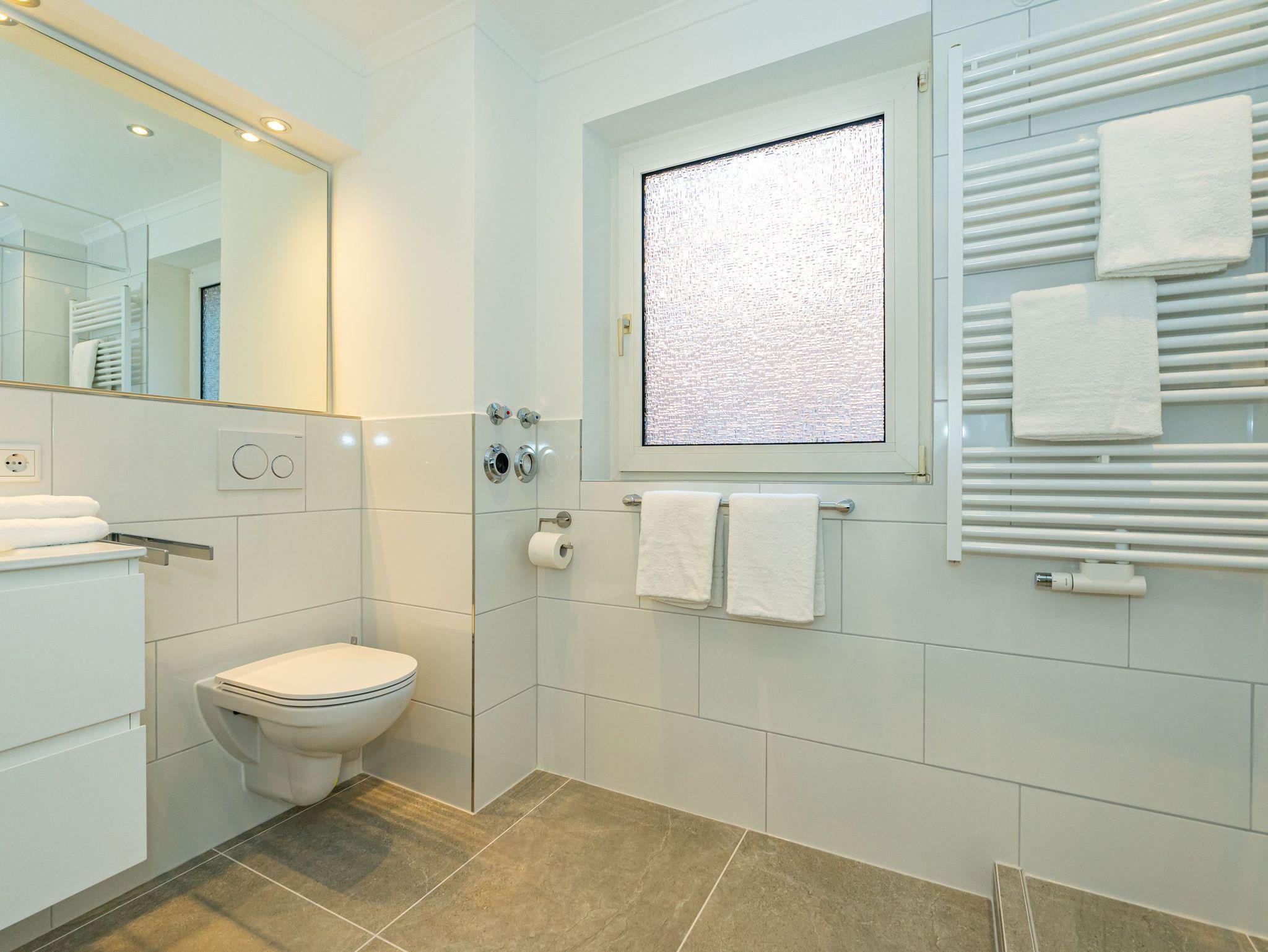 Ein Highlight ist das neue, geräumige Badezimmer, dass Sie mit großzügiger Dusche mit extraflachem Einstieg, Handtuchtrockner, Waschtisch, Haarfön, Kosmetikspiegel, WC und Fenster gut in den Tag starten lässt.
