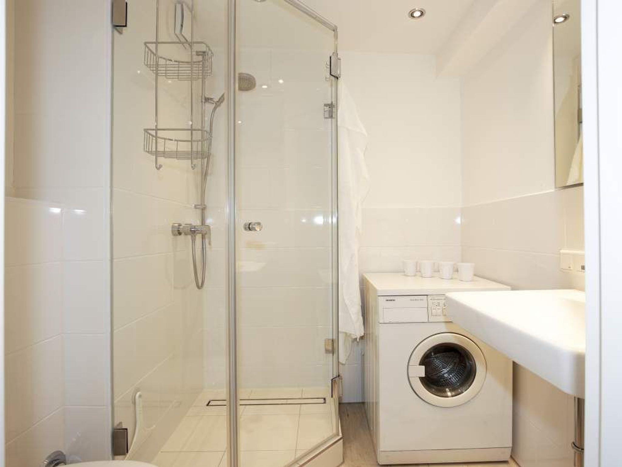 Im neuen Bad befindet sich eine Dusche, ein WC, ein Waschtisch und eine Waschmaschine.