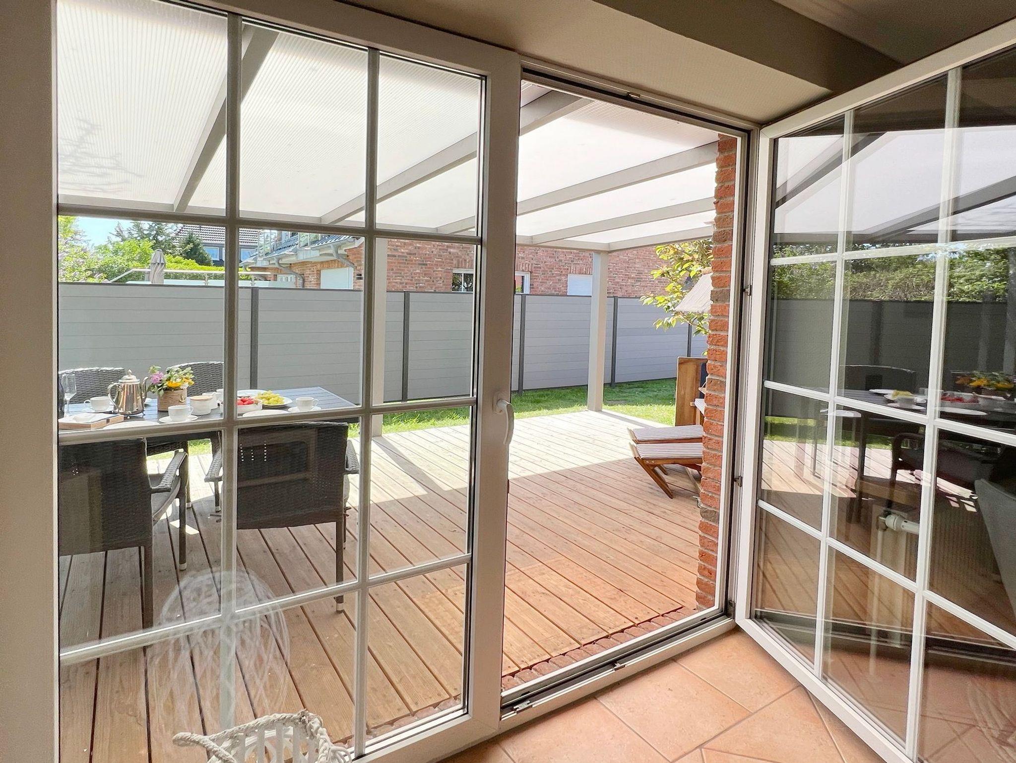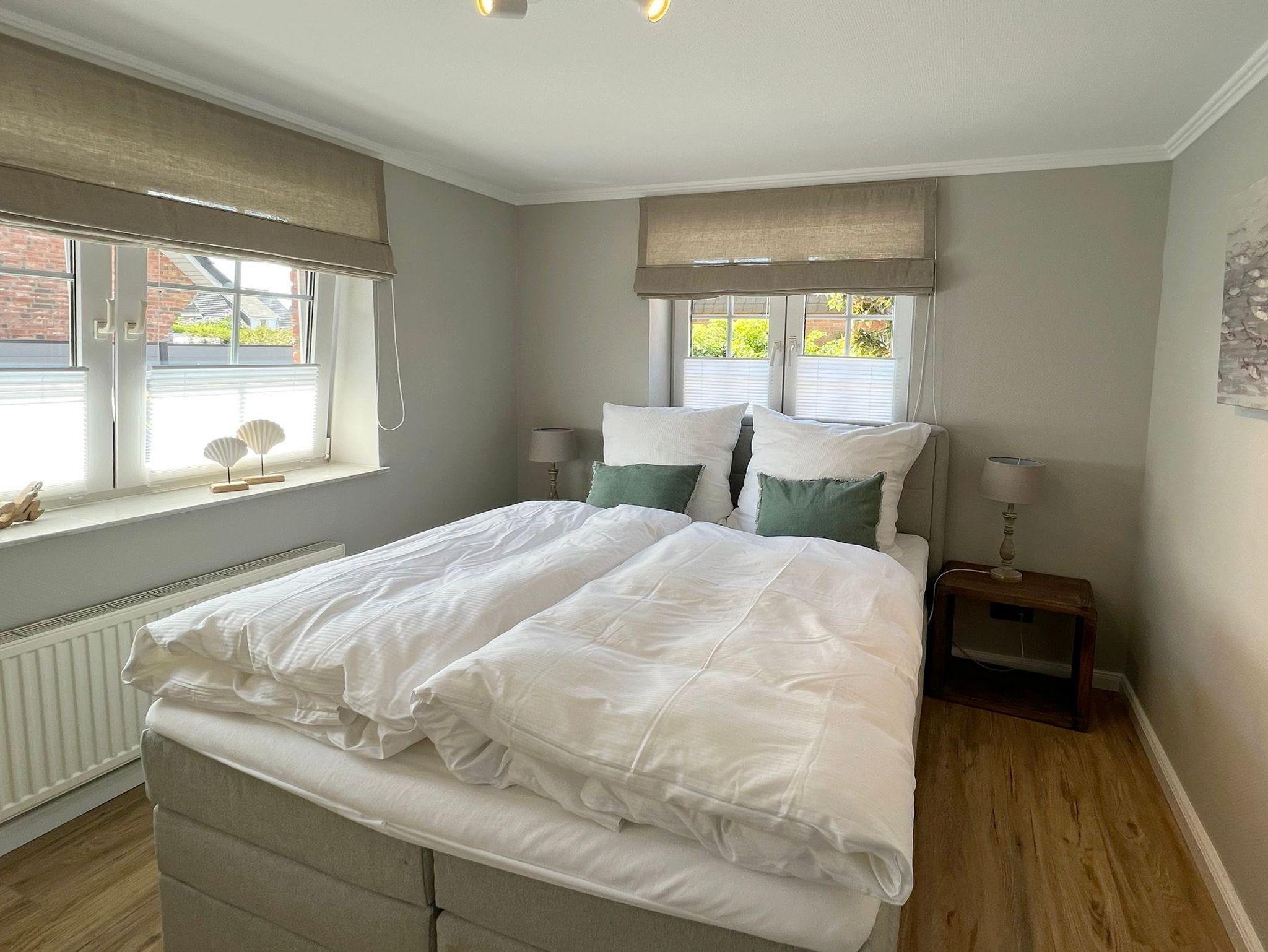 Die ebenerdige Ferienwohnung Kampen hat eine Größe von etwa 75 m² und befindet sich in einer ruhigen Lage auf dem hinteren Teil eines Grundstücks am Ortsrand im Norden von Westerland. Das Wohnzimmer ist modern eingerichtet und verfügt über eine offene Küche. Von dort aus gelangt man auf die überdachte Terrasse, die nach Süden ausgerichtet ist und mit einem Strandkorb, Gartenmöbeln und Sonnenliegen ausgestattet ist. Die Wohnung verfügt über zwei Schlafzimmer mit jeweils einem Doppelbett sowie ein großes Badezimmer mit Dusche, WC und Waschbecken. Auf dem Grundstück befindet sich ein PKW-Stellplatz. Während der Sommerferien beträgt die Mindestmietdauer 14 Übernachtungen, bei kürzeren Aufenthalten kann dies auf Anfrage ermöglicht werden. Gerne dürfen Sie hier ein gut erzogenes Haustier mitbringen. Dafür wird dann eine einmalige Haustiergebühr berechnet.