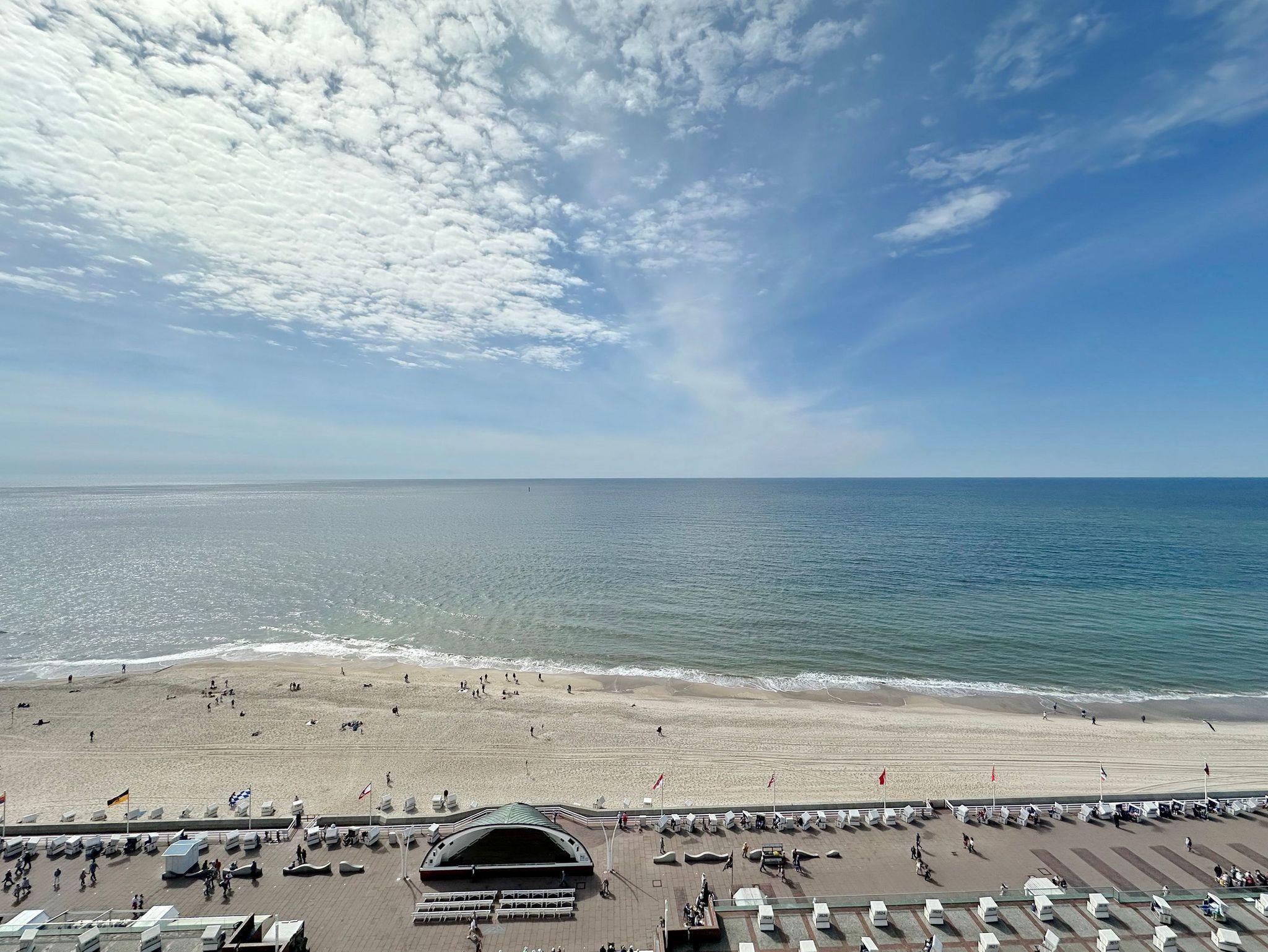 1-Zimmer-Apartment im 13. OG im Haus Metropol mit freiem Meeresblick, ca. 34 m², Nichtraucher. Großer Westbalkon mit Balkonmöbeln. Die Wohnung ist komplett gefliest. Wohn- und Schlafzimmer mit Podestdoppelbett (2x80x200), Essplatz am Fenster und 2-Sitzercouch und Sessel, Beistelltisch, TV, Radio. W-Lan (ohne Gewähr). Küchenzeile im Flurbereich mit Mikrowelle, Geschirrspüler und Cerankochfeld. Duschbad/WC. Tierhaltung ist nicht gestattet. Bettwäsche, Handtücher und ein PKW-Stellplatz können kostenpflichtig gebucht werden.