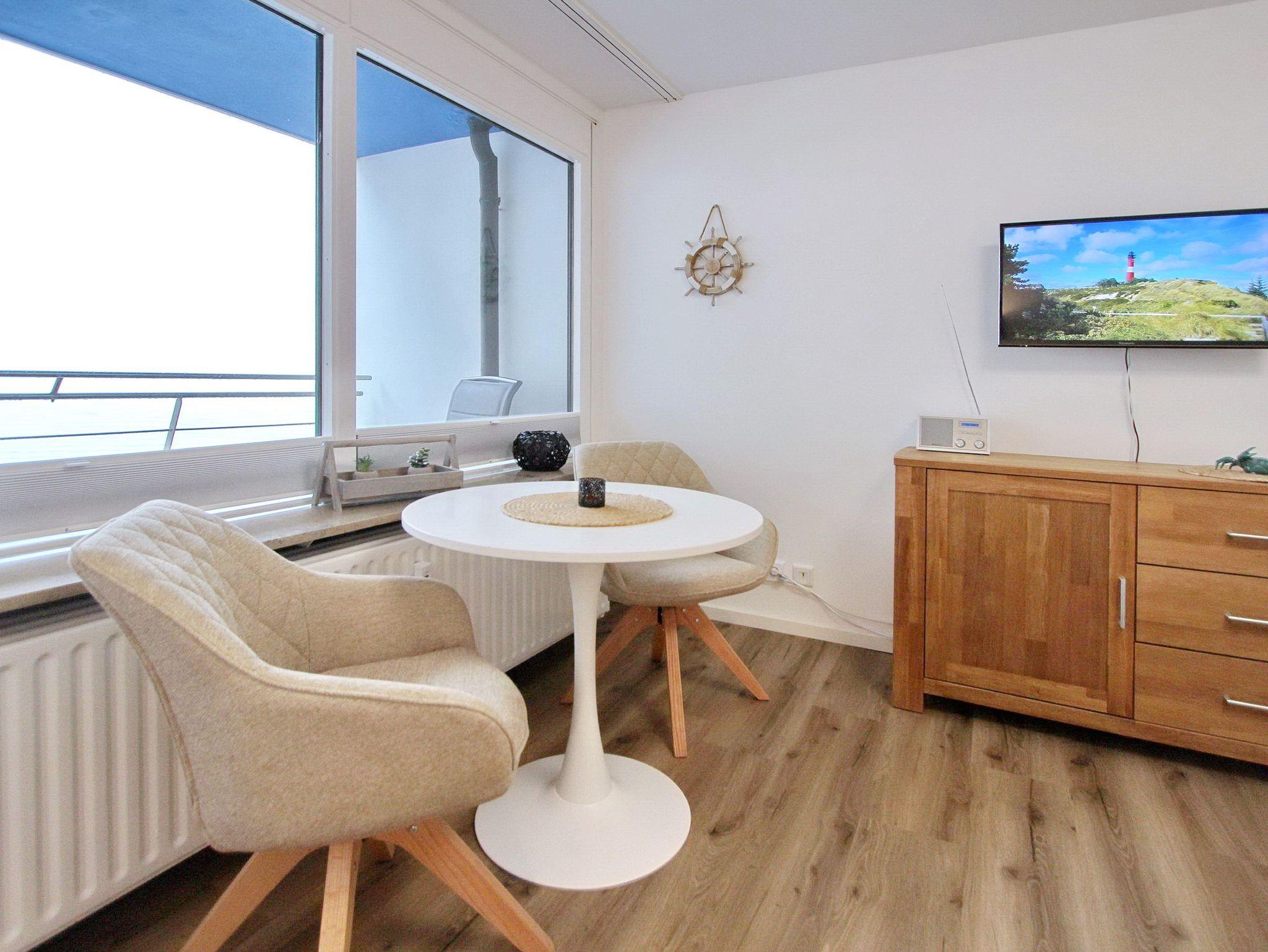 Moderne Einzimmerwohnung mit Meerblick und Balkon im Haus Sylter Welle auf Sylt.