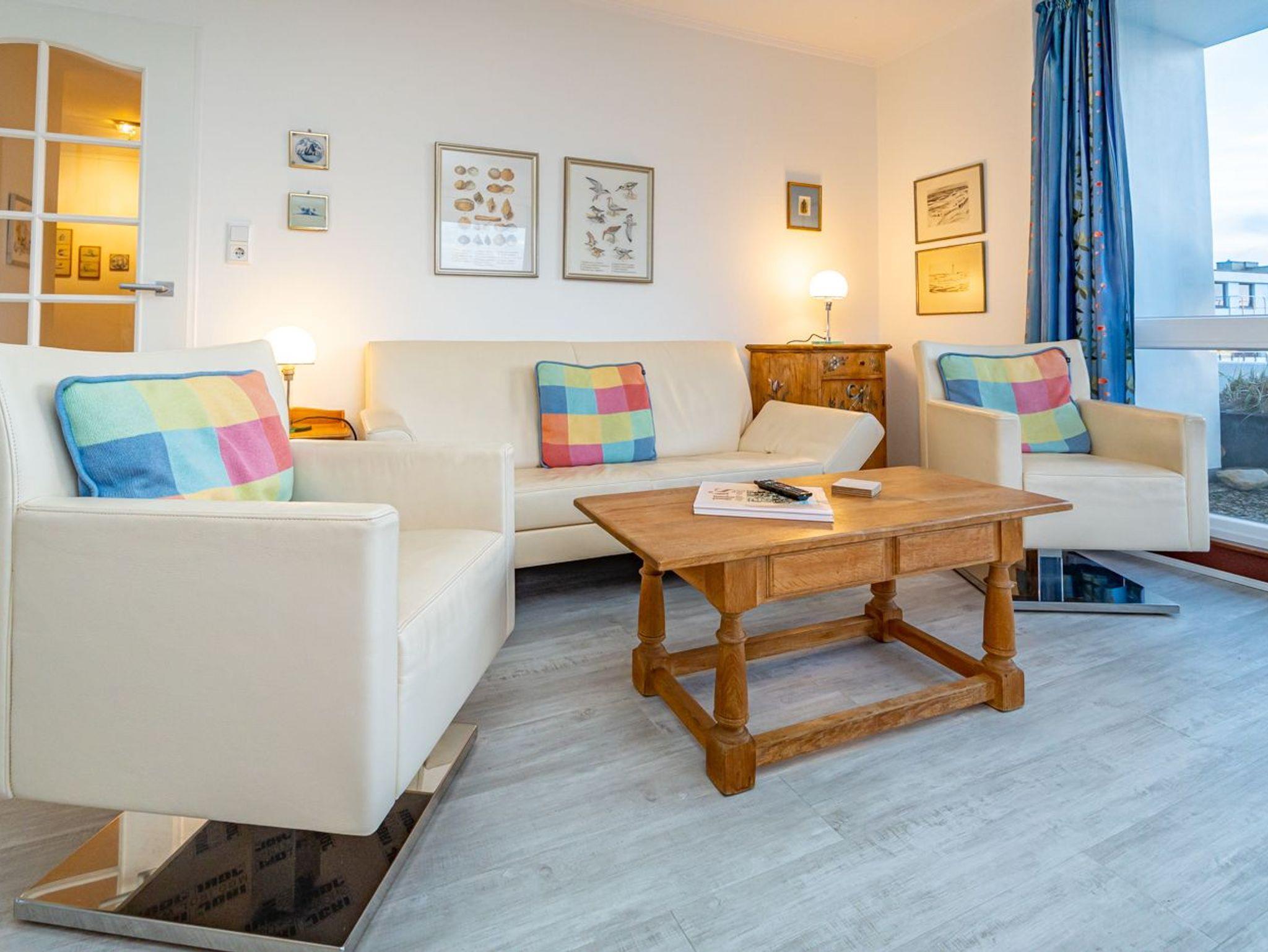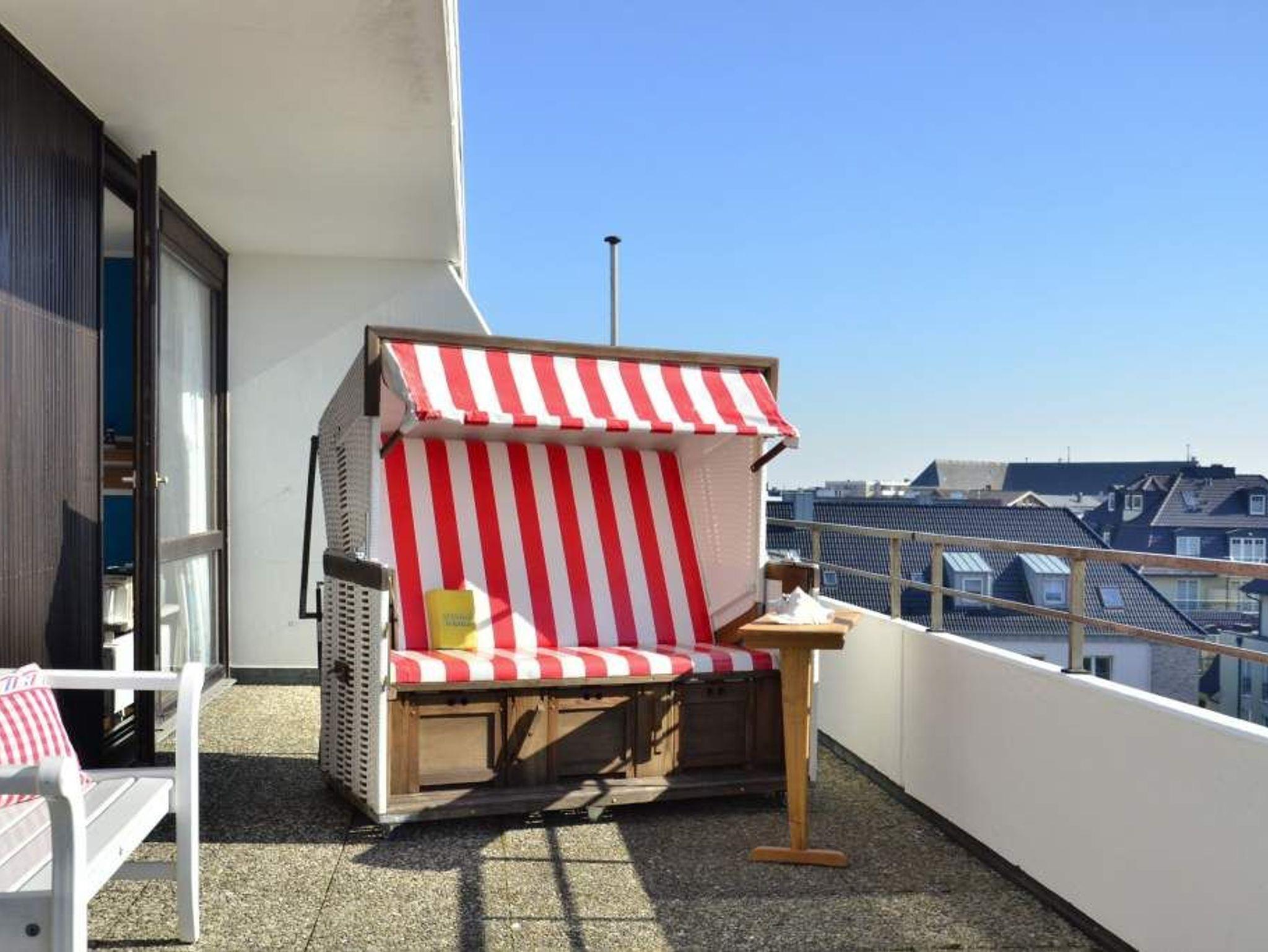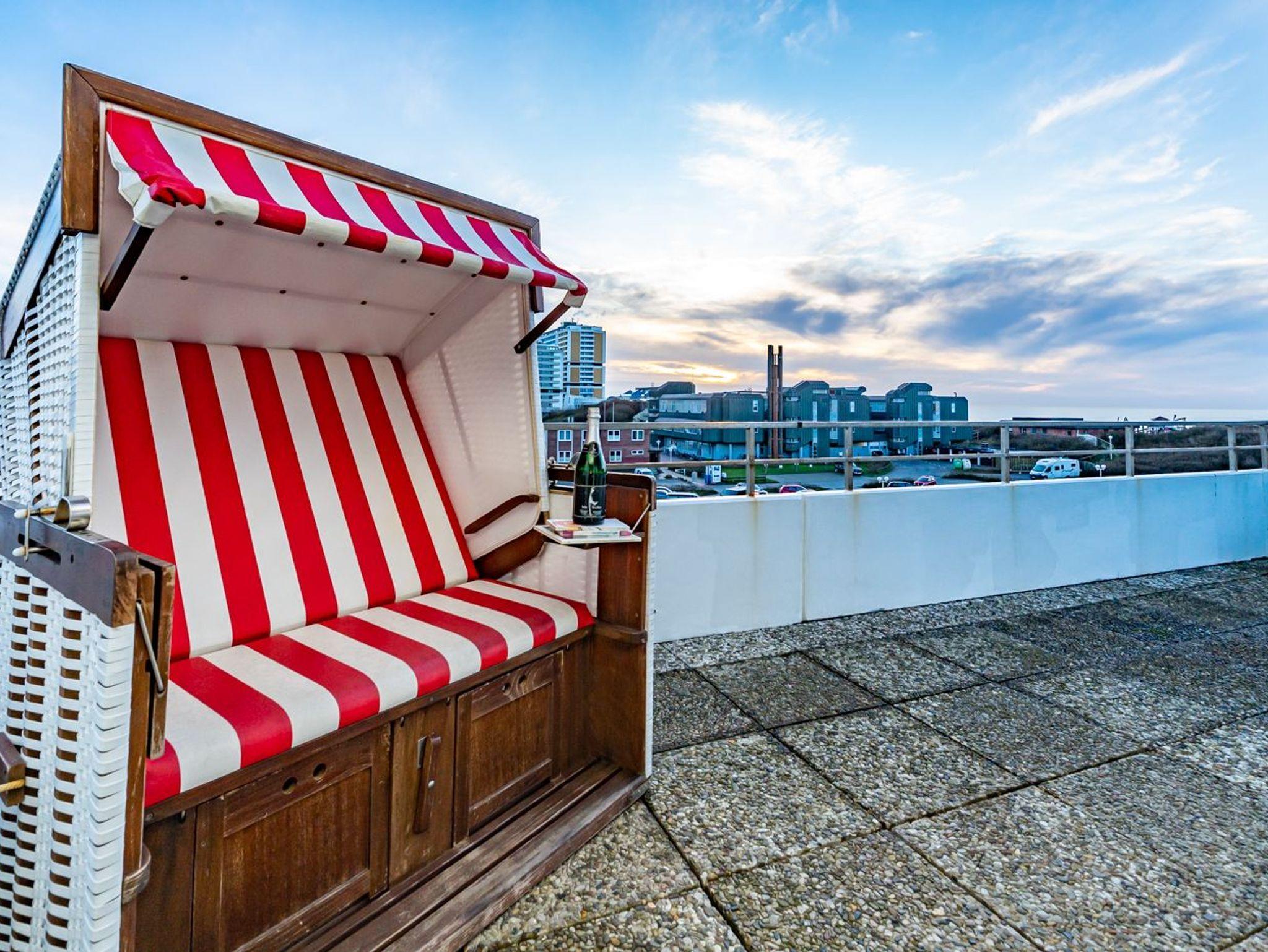 Es besteht aus 3 Zimmern für max. 3-4 Personen und hat eine Wohnfläche von ca. 75 m² im Staffelgeschoss des Hauses (wie 4. Etage). Die großzügige, umlaufende Dachterrasse mit Strandkorb (für 2 Personen) und Terrassenmöbeln bietet nahezu aus jeder Perspektive einen herrlichen Blick auf die Nordsee und die Dünen.