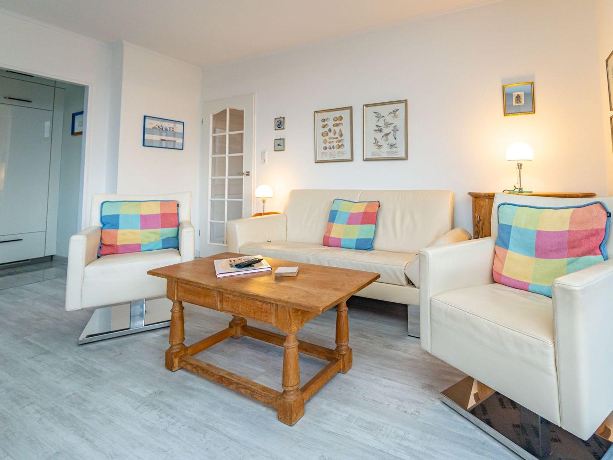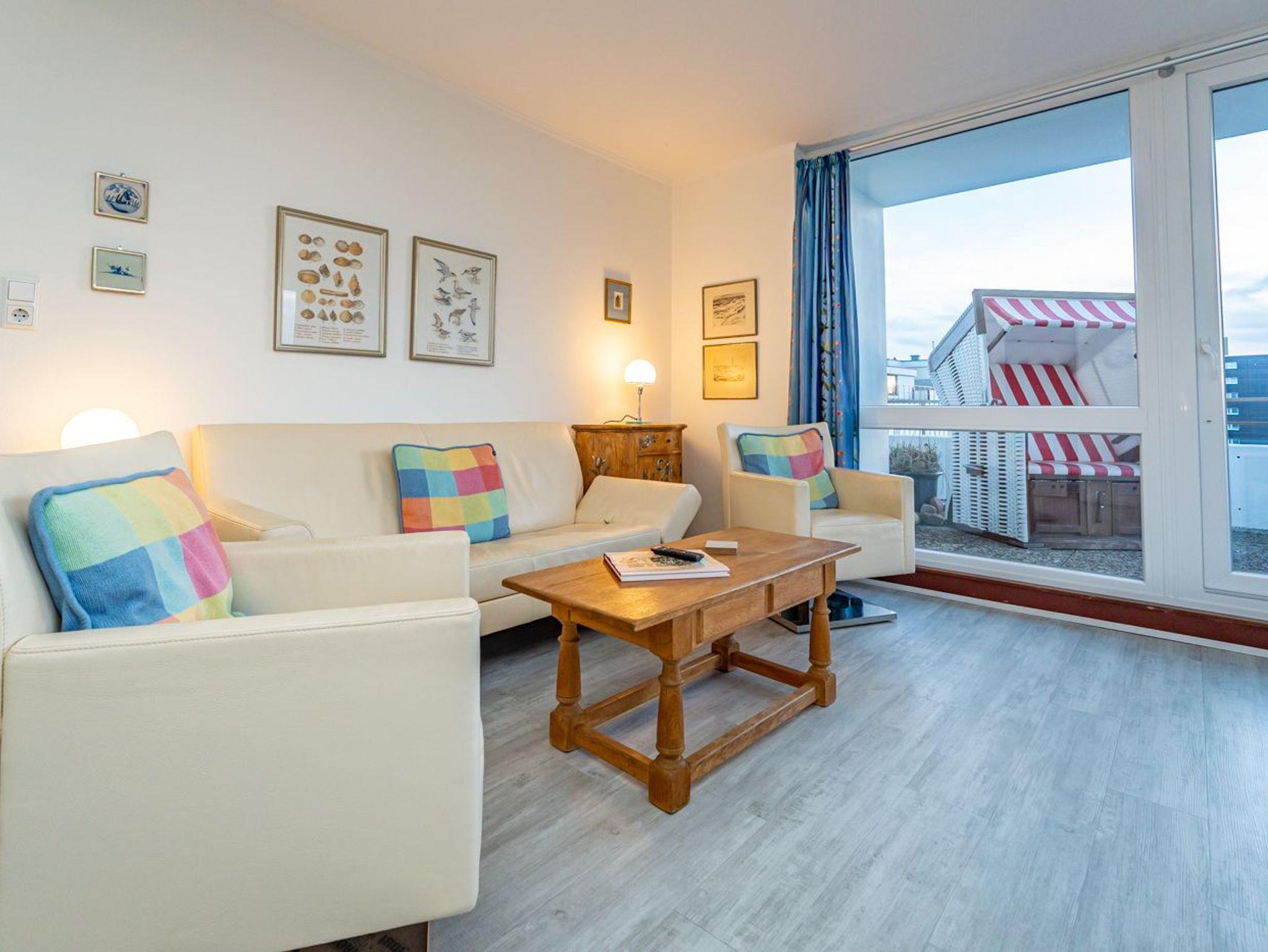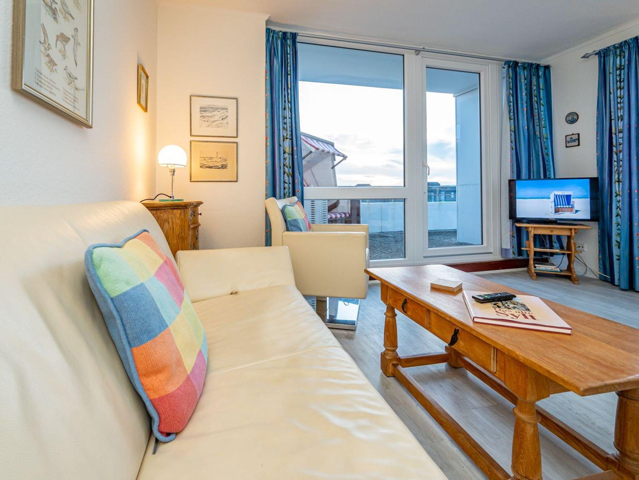 Es besteht aus 3 Zimmern für max. 3-4 Personen und hat eine Wohnfläche von ca. 75 m² im Staffelgeschoss des Hauses (wie 4. Etage). Die großzügige, umlaufende Dachterrasse mit Strandkorb (für 2 Personen) und Terrassenmöbeln bietet nahezu aus jeder Perspektive einen herrlichen Blick auf die Nordsee und die Dünen.