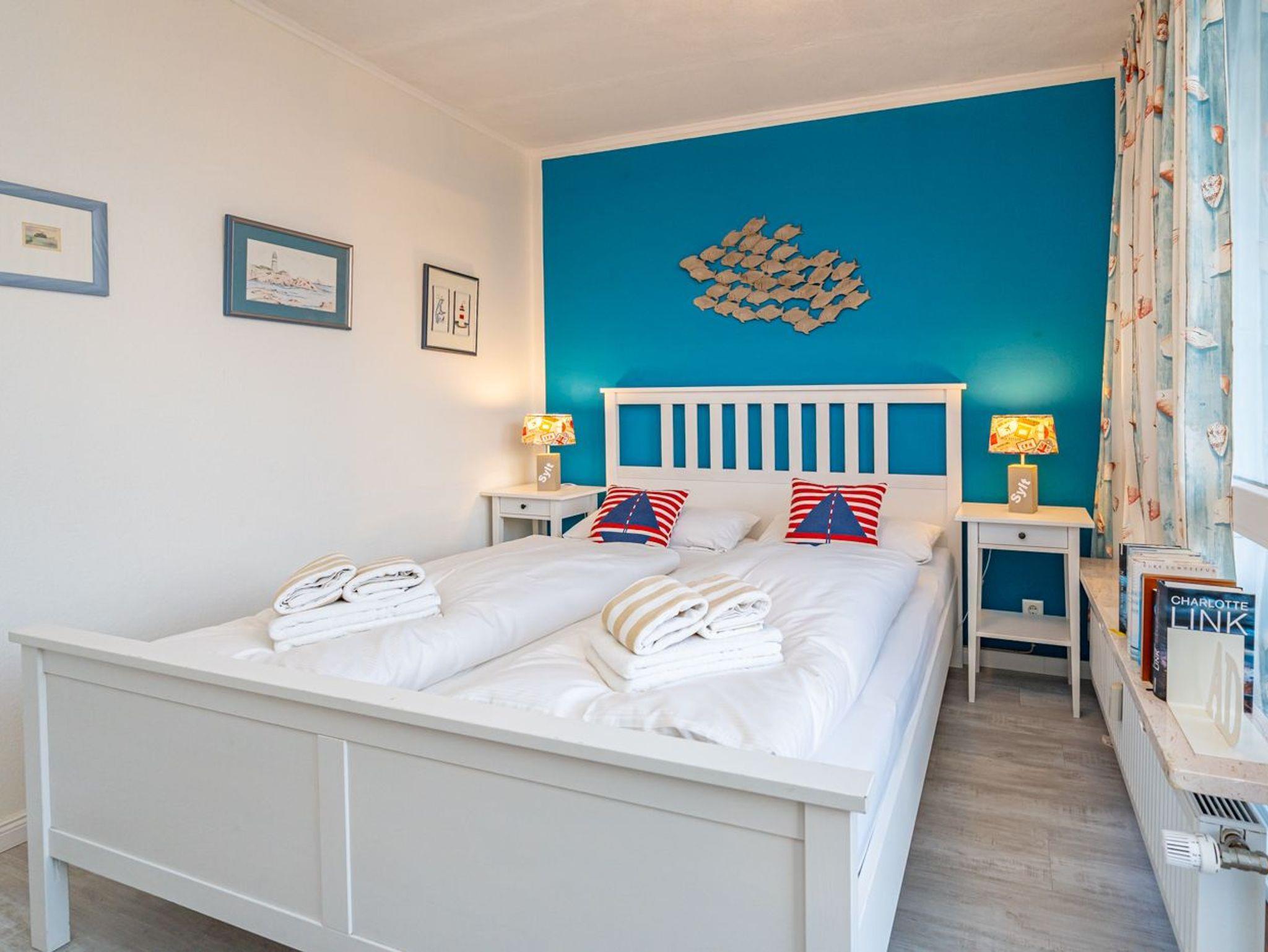Das große Schlafzimmer ist mit einem Doppelbett (1,60 x 2,00 m) mit guten Einzelmatratzen und Zugang zur Dachterrasse ausgestattet. Das