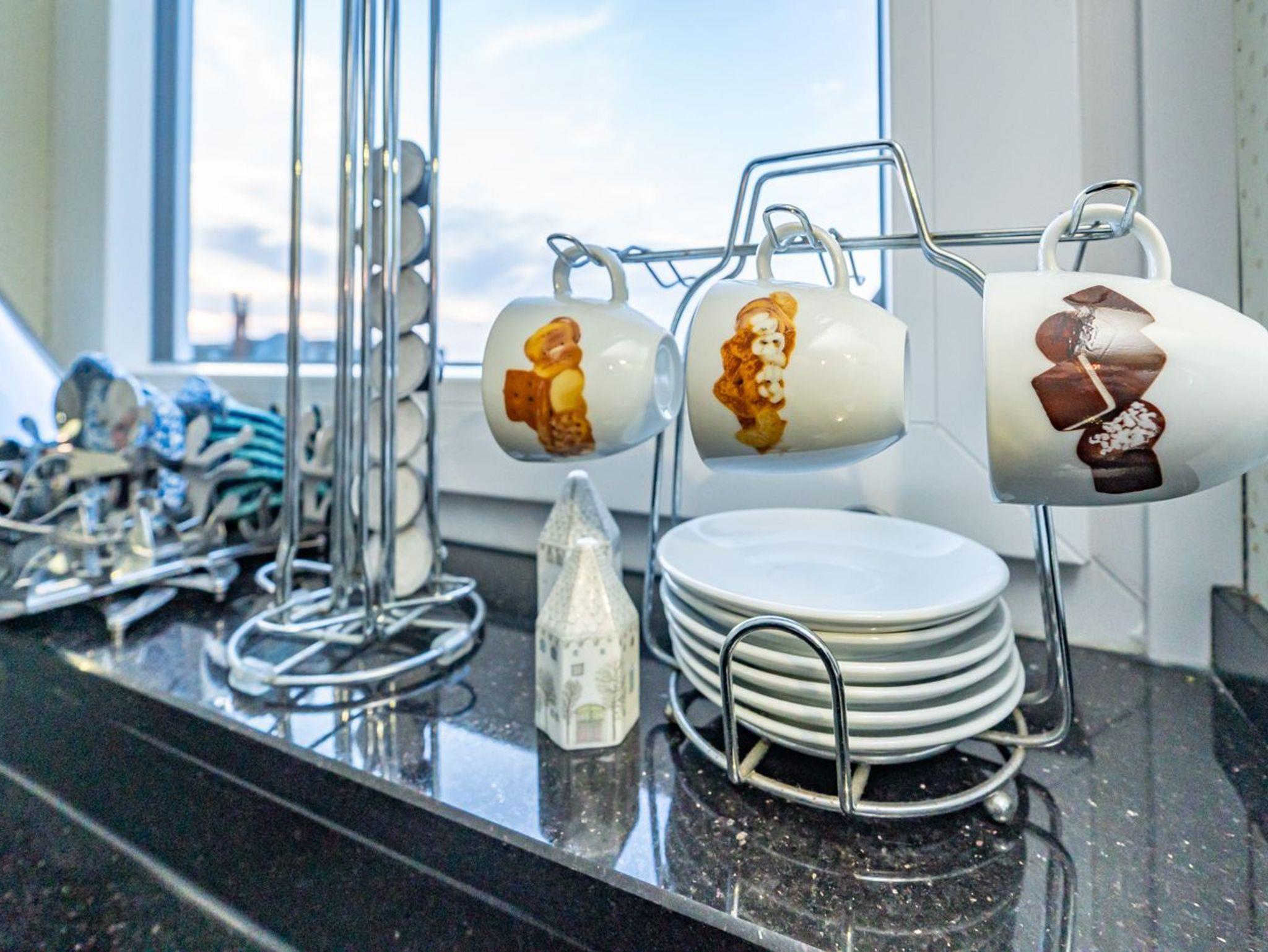 Die vom Wohnraum begehbare exklusive, neue Küche mit zwei Fenstern und Granitarbeitsplatte besteht aus Geschirrspüler, Induktionskochfeld (4 Kochfelder), Backofen mit Mikrowellenfunktion und einem Kühlschrank mit 4-Sterne-Gefrierfach.