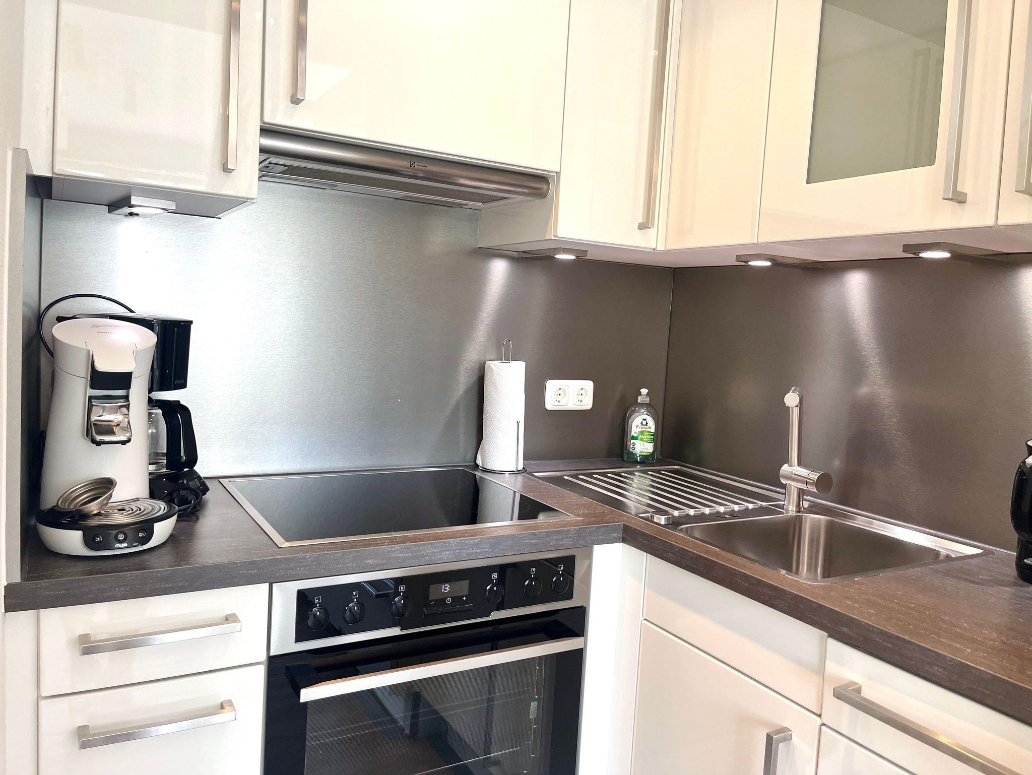 Die Küche ist sehr gut ausgestattet und verfügt unter anderem über eine Kaffee-PAD Maschine, eine Filterkaffeemaschine, einen Toaster und einen Wasserkocher.