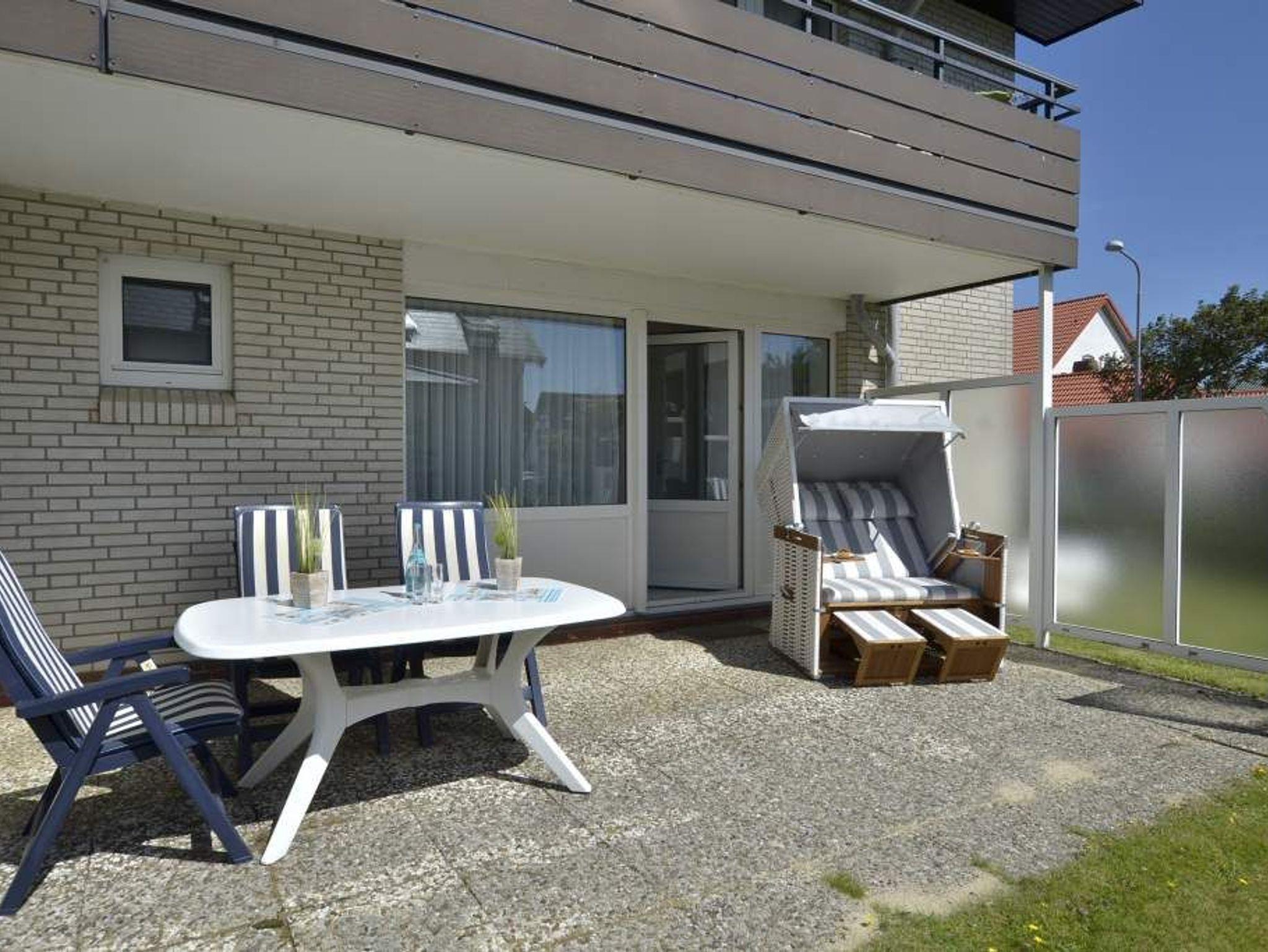 Schickes Nichtraucher-Appartement in Westerland mit Südterrasse, Strandkorb und eigenem Tiefgaragenstellplatz für erholsame Urlaubstage.