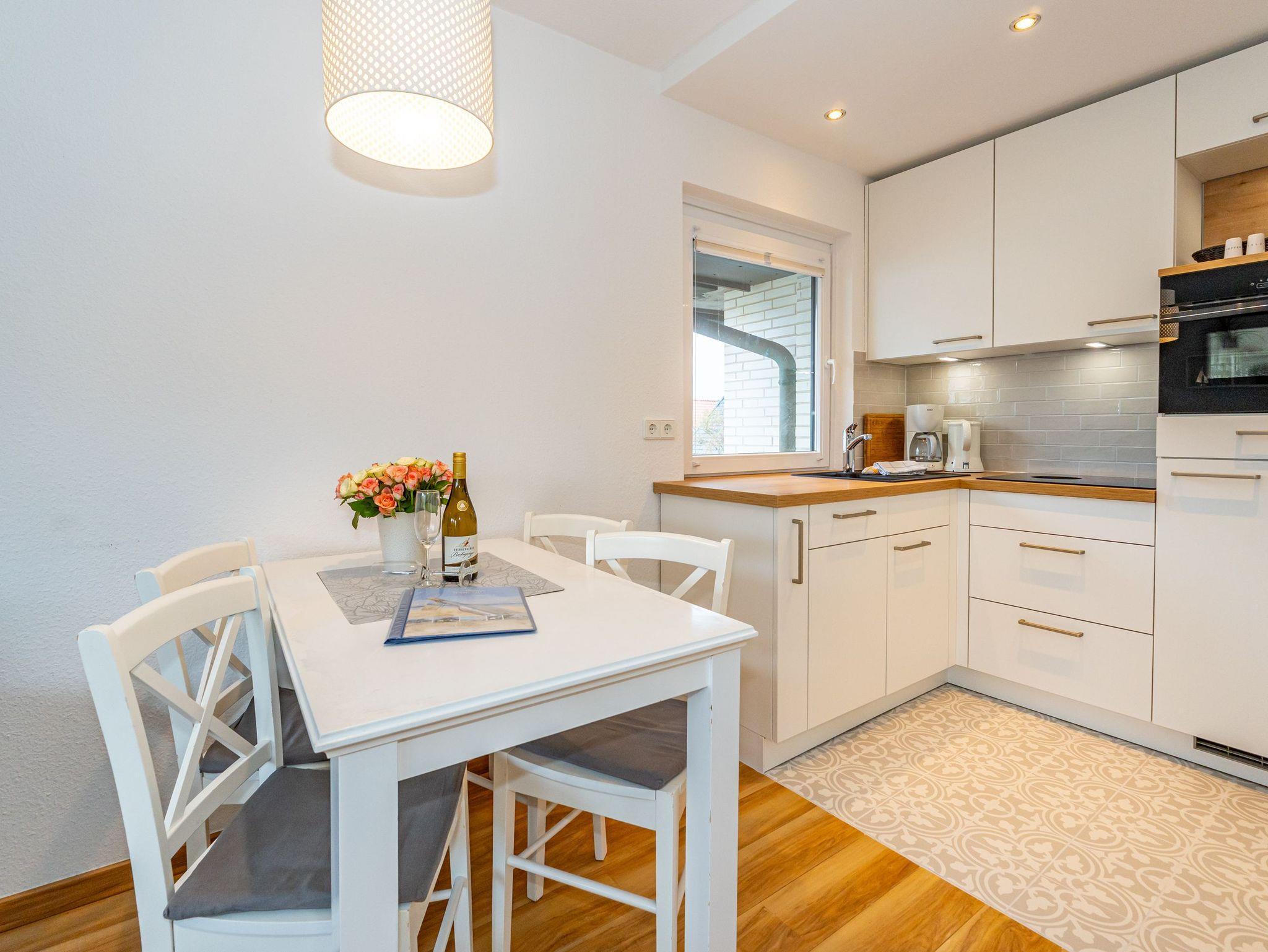 Diese moderne Nichtraucher-Ferienwohnung in der 2. Etage bietet auf ca. 40 m² alles, was Sie für einen entspannten Aufenthalt benötigen. Der hochwertige Designerboden in Holzoptik und die geschmackvolle Einrichtung schaffen eine gemütliche Atmosphäre ideal für bis zu zwei Personen.
