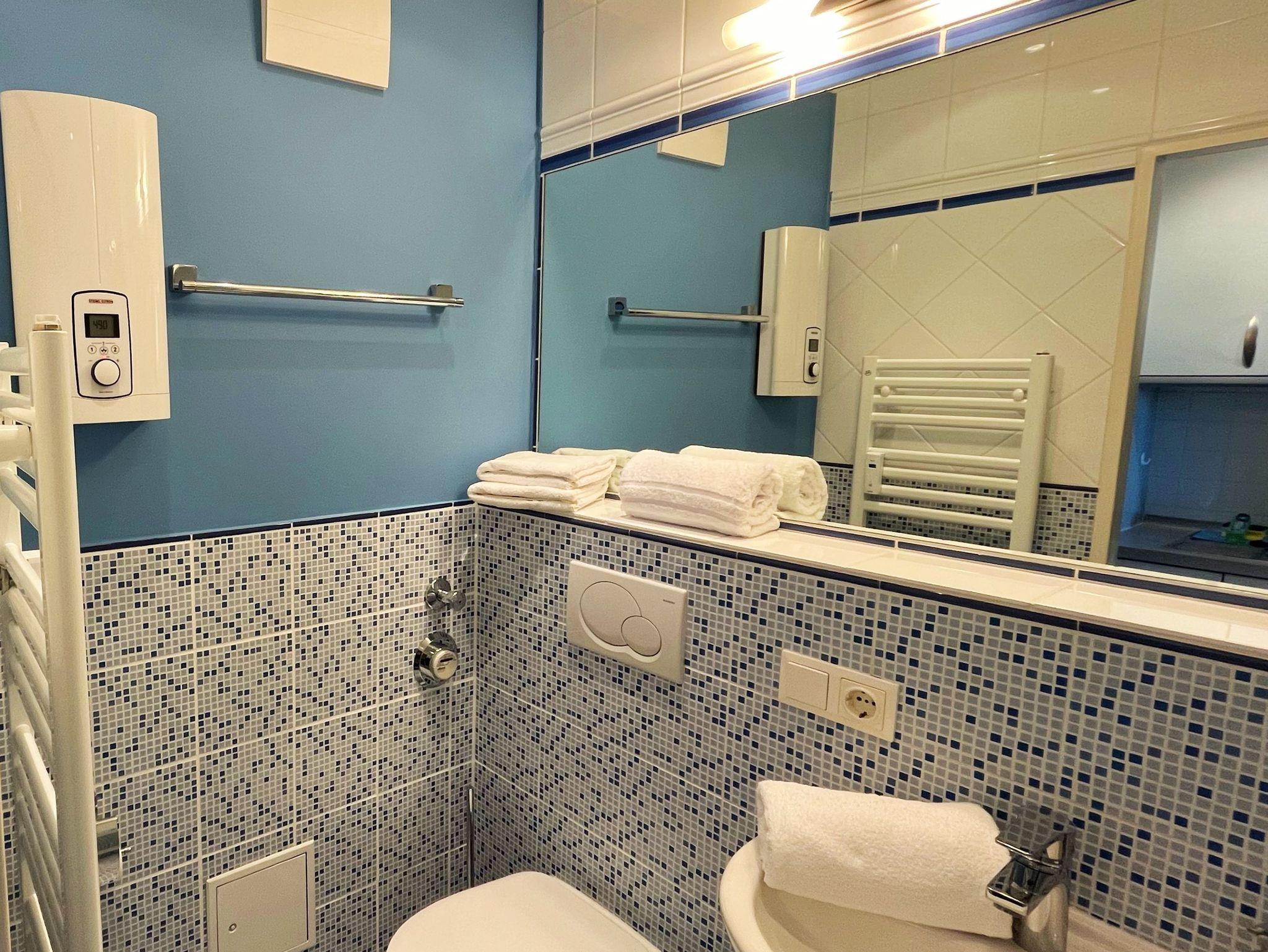 Die Küchenzeile ist funktional ausgestattet mit einem Cerankochfeld, Mikrowelle mit Grillfunktion sowie einem Kühlschrank mit 3*-Gefrierfach. Kaffeemaschine, Wasserkocher und Toaster gehören selbstverständlich zur Grundausstattung. Das neue, helle Badezimmer verfügt über eine Dusche, ein WC, einen Waschtisch sowie einen Fön ? modern, gepflegt und gut durchdacht.