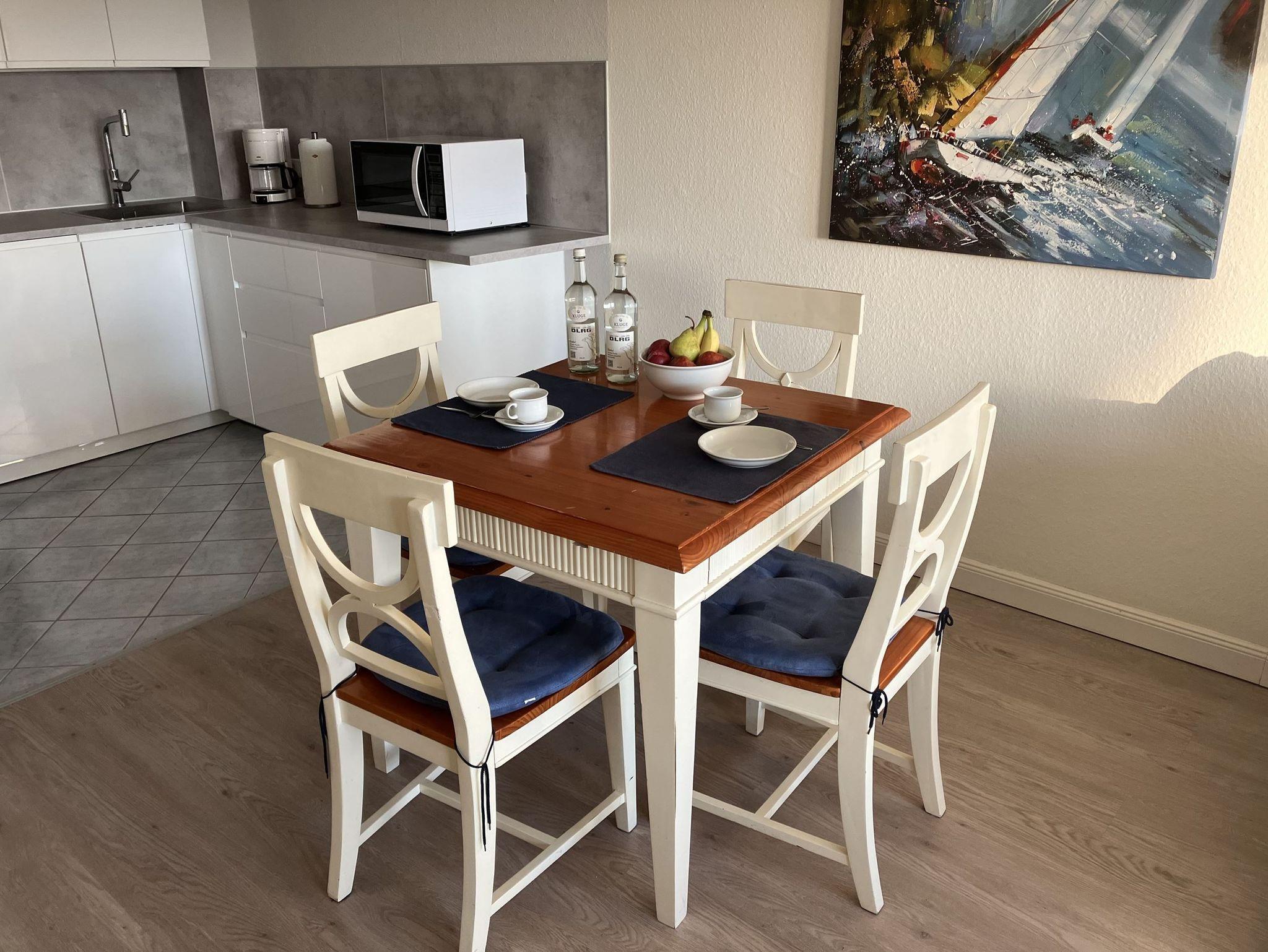 Dank der bequemen, neuen Schlafcouch im Wohnzimmer können in der Wohnung bis zu 4 Personen übernachten. Die Küche ist modern und voll ausgestattet (Kaffeemaschine, Toaster, Wasserkocher, Geschirrspüler, Herd mit Cerankochfeld, Backofen und Mikrowelle).