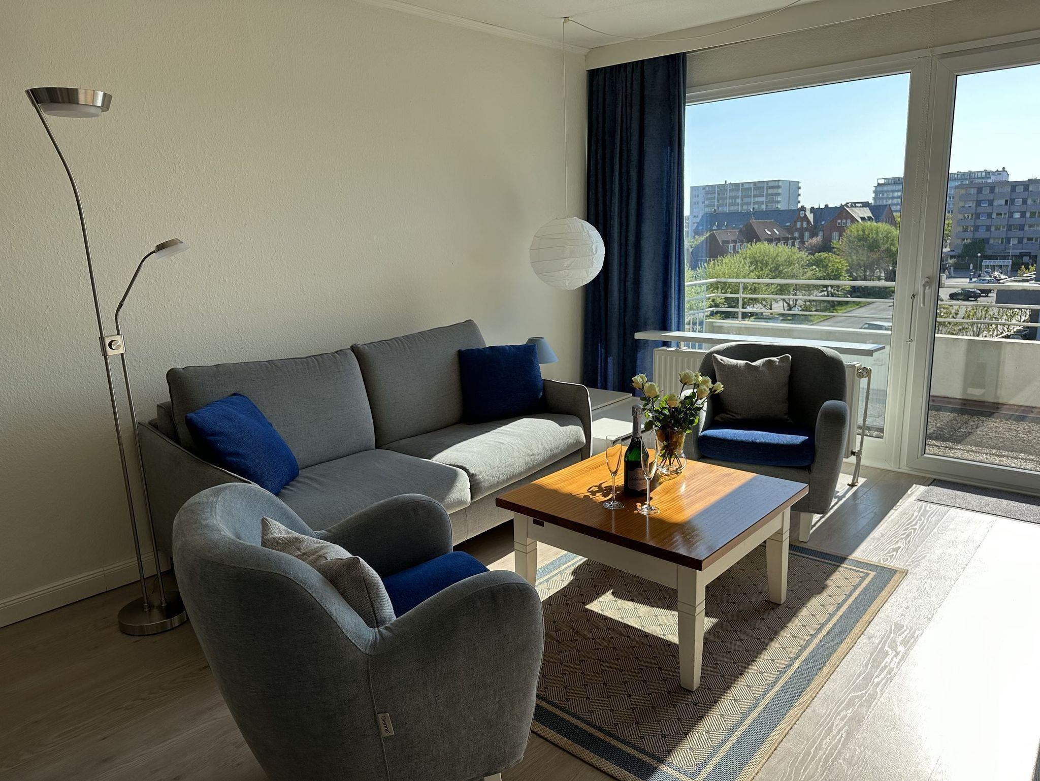 Helles 2-Zimmer-Apartment im Zentrum von Westerland mit Balkon, Sauna und Schwimmbad, nur 900 m vom Strand entfernt.